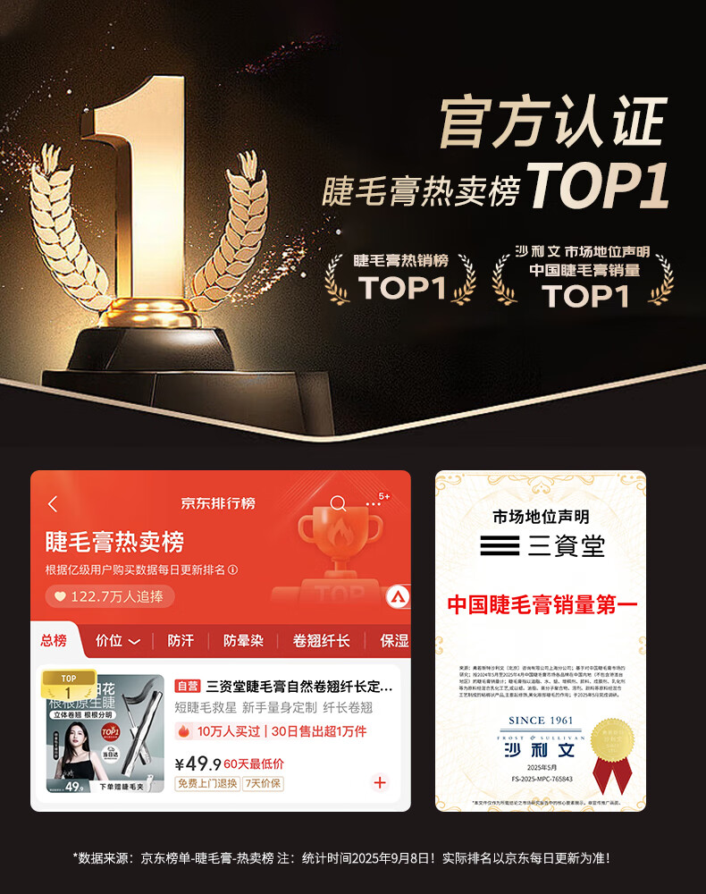 三资堂睫毛膏自然卷翘纤长定型钢管睫毛打底膏小蛮腰持妆防汗防水不晕染