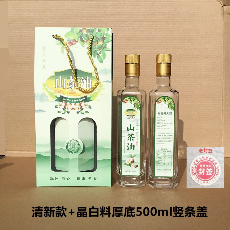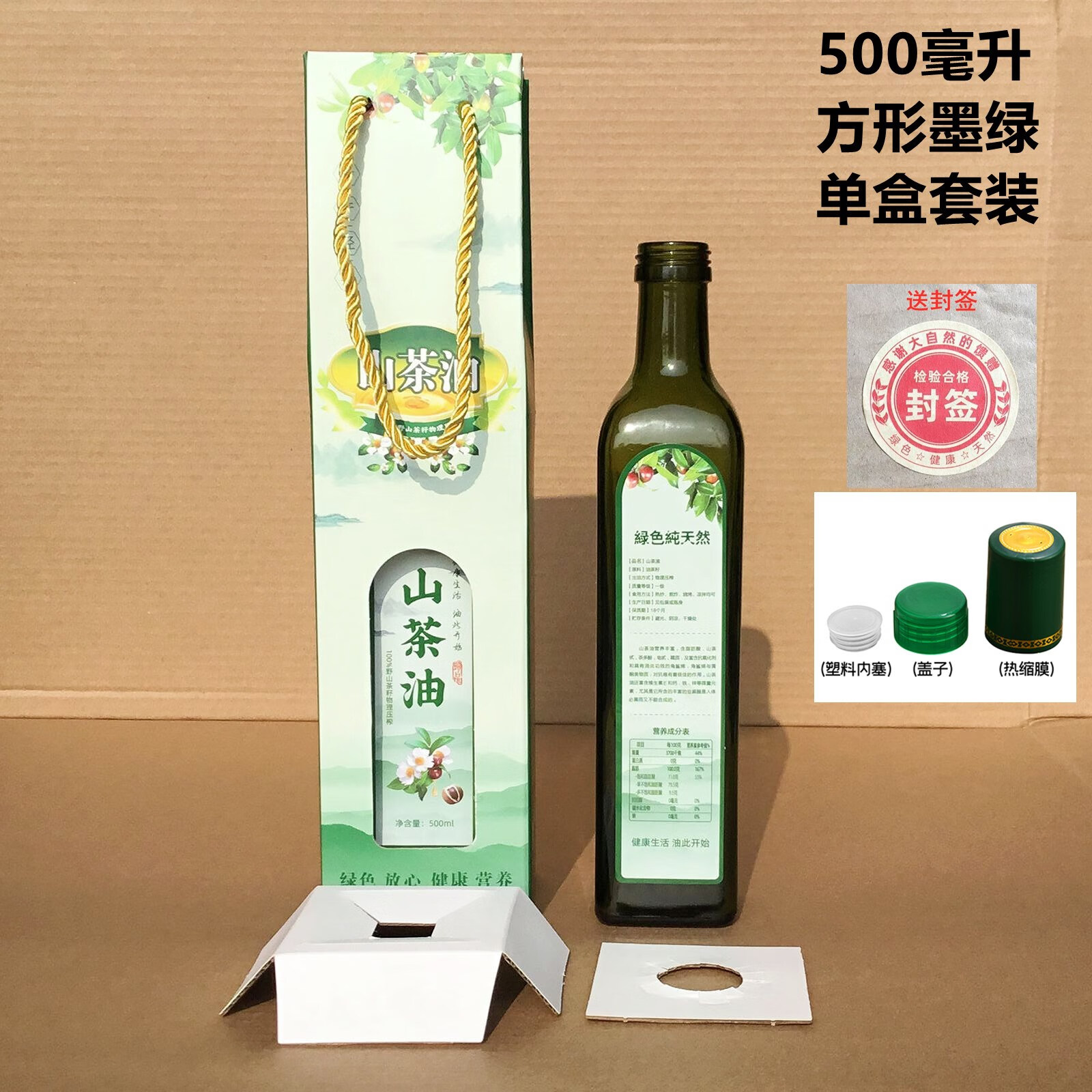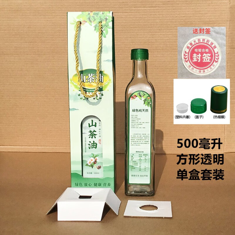 RSRDDY茶瓶子空瓶1斤装山茶玻璃瓶包装盒茶籽空礼盒套装手提 茶单盒+250-m-方厚底竖-的