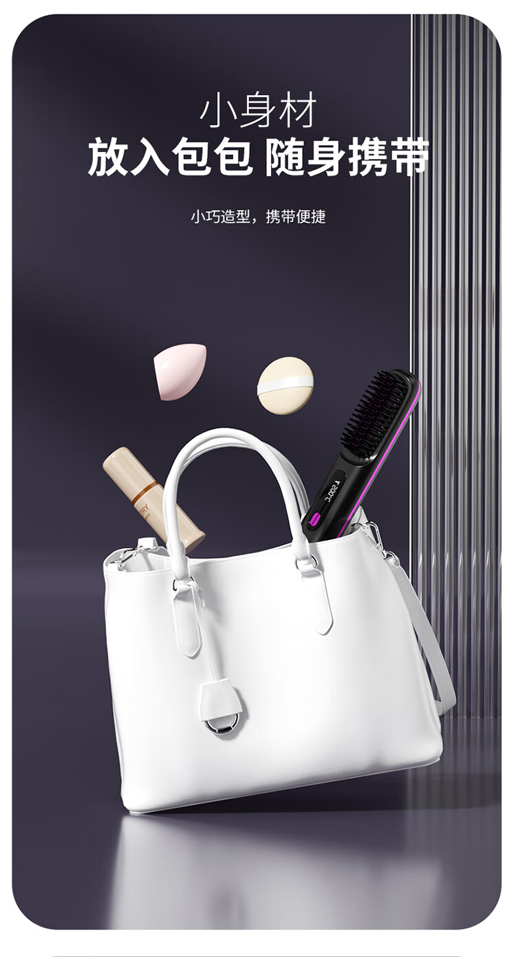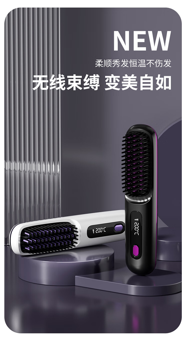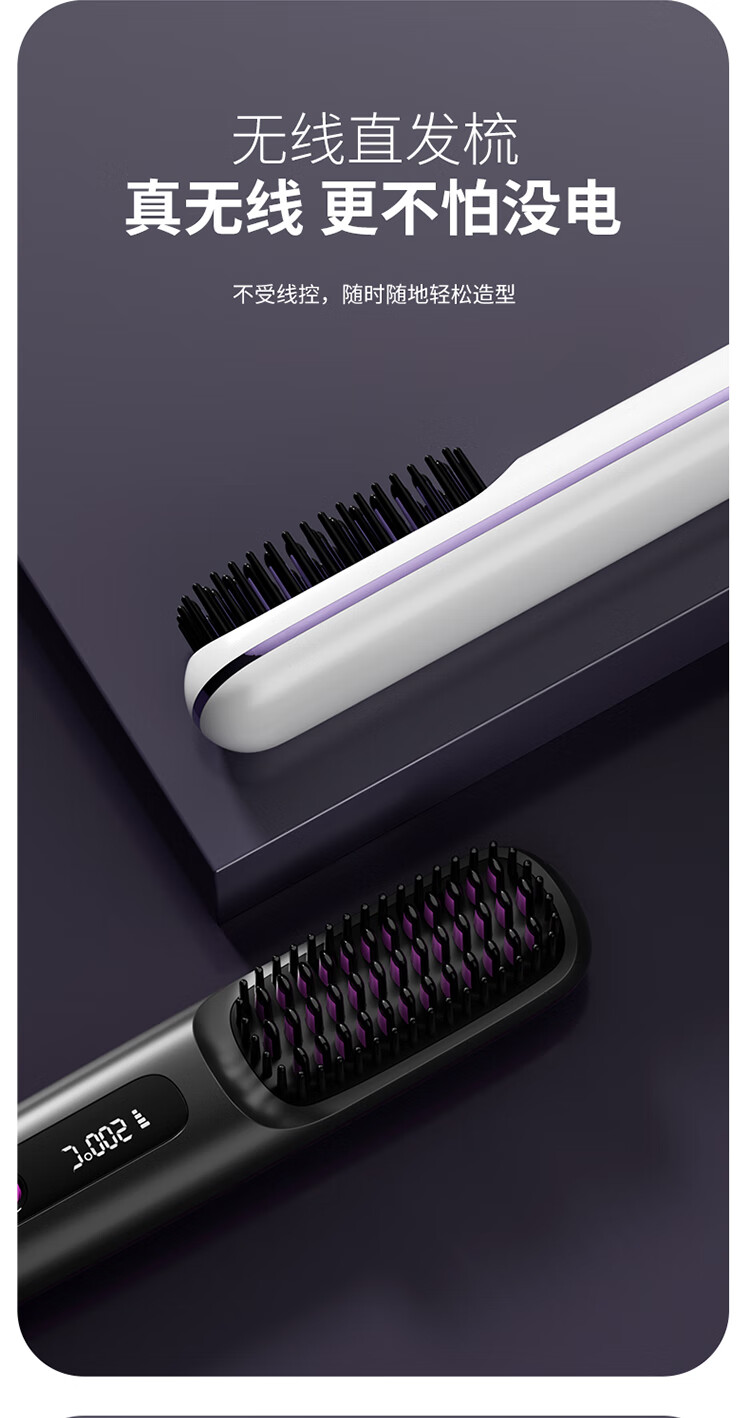 【金稻同款】无线负离子直发梳迷你便卷发梳电梳子卷发棒夹板两用迷你蓬松烫发梳七夕情人节礼物女 白色【负离子+3档液晶控温+精油涂层+柔顺护发】