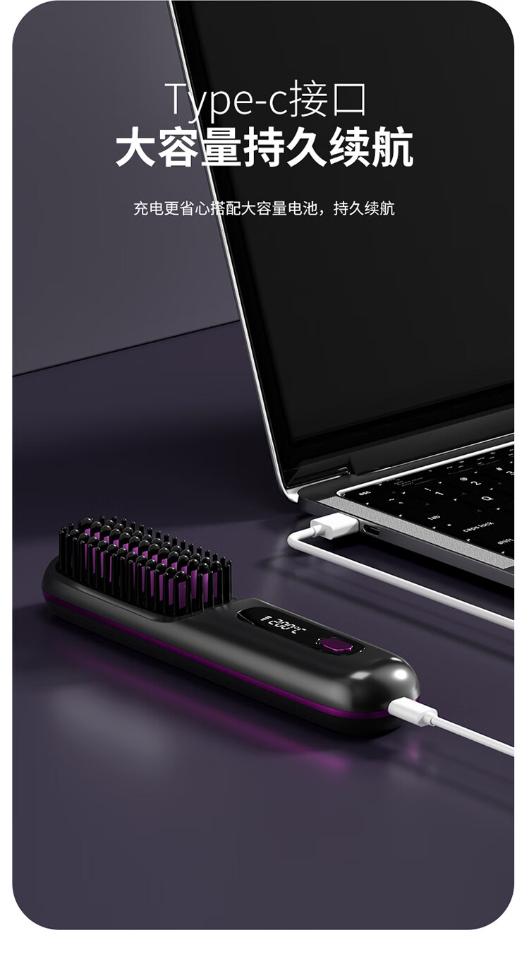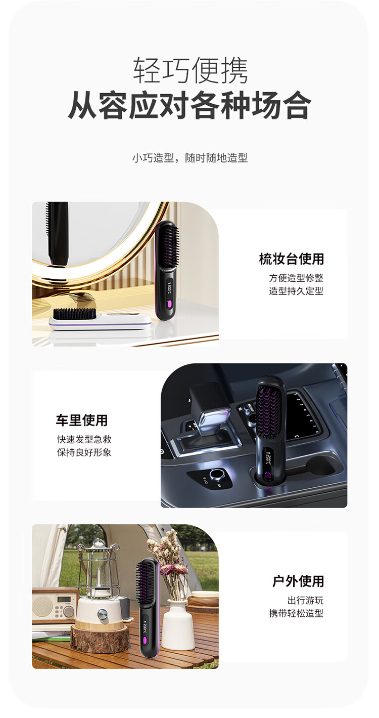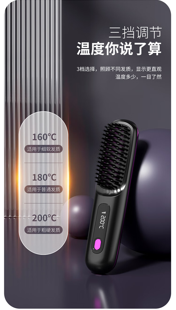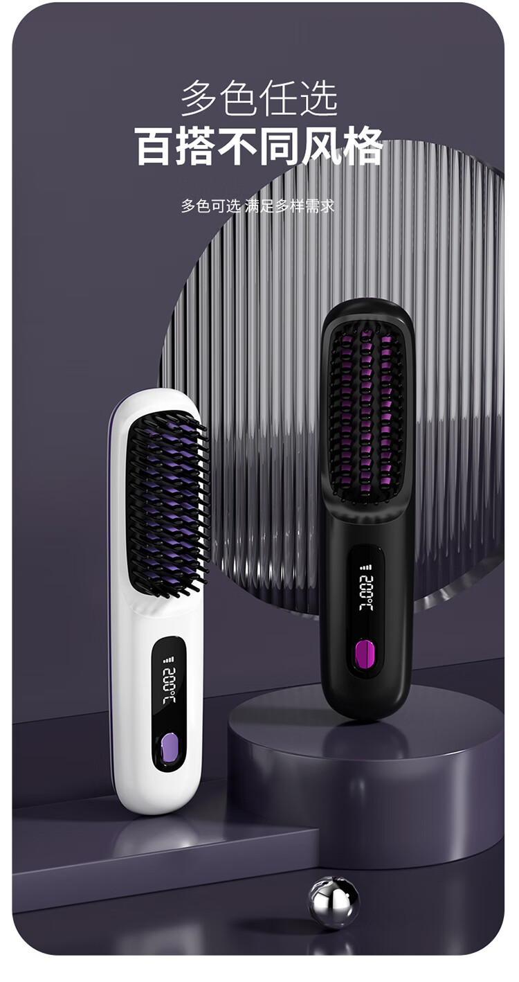 【金稻同款】无线负离子直发梳迷你便卷发梳电梳子卷发棒夹板两用迷你蓬松烫发梳七夕情人节礼物女 白色【负离子+3档液晶控温+精油涂层+柔顺护发】
