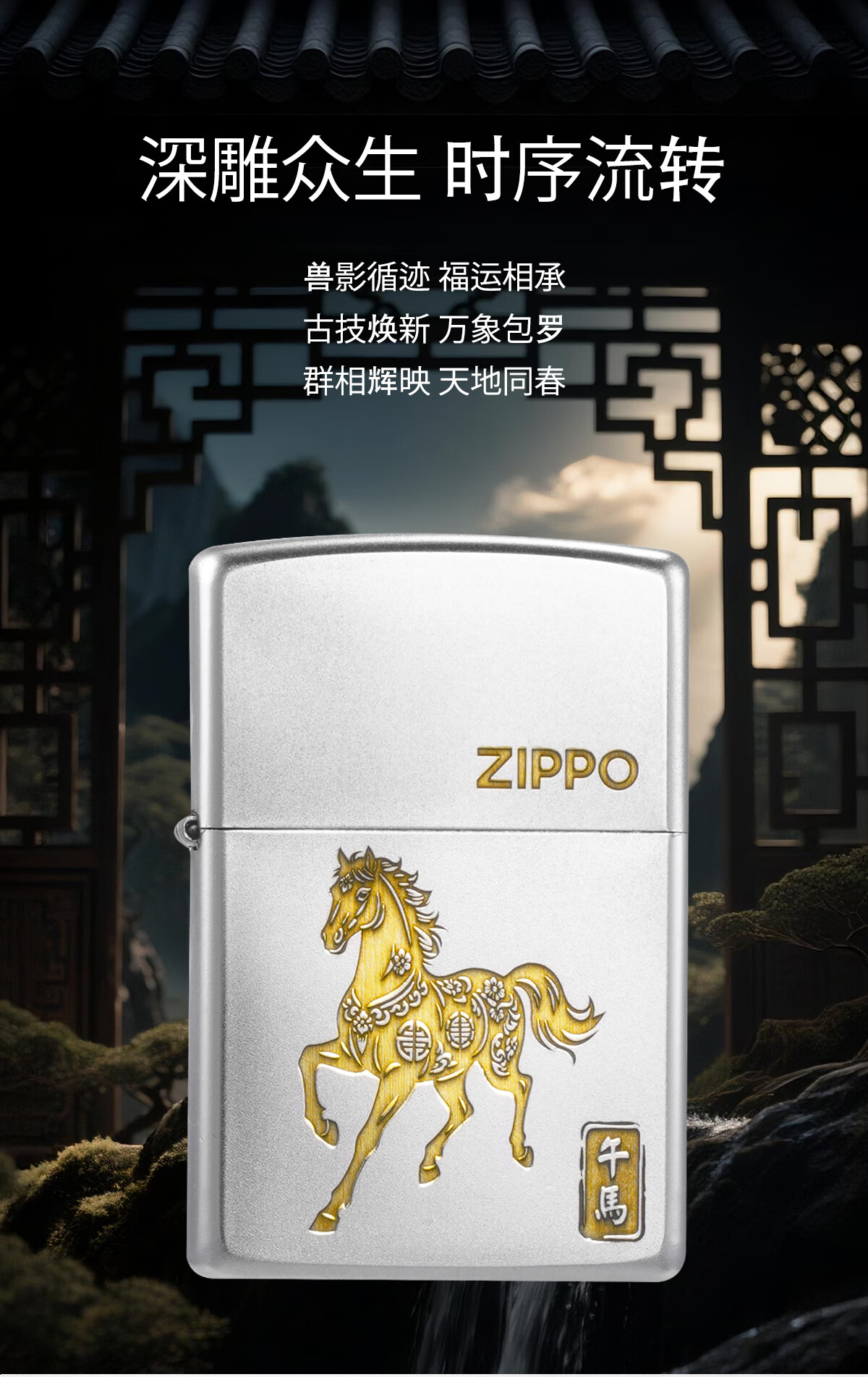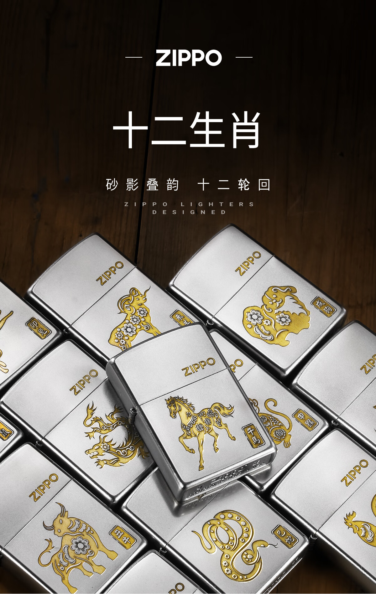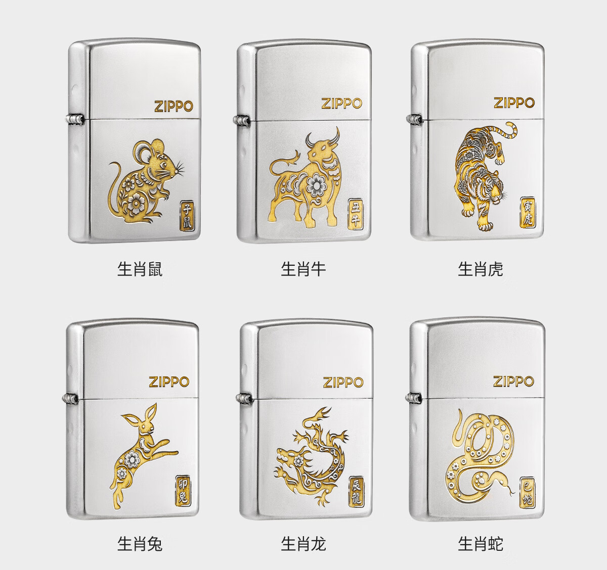 ZIPPO打火机镀铬磨砂十二生肖官方正品煤油防风男士收藏生日礼物送男友 寅虎【礼盒套装】