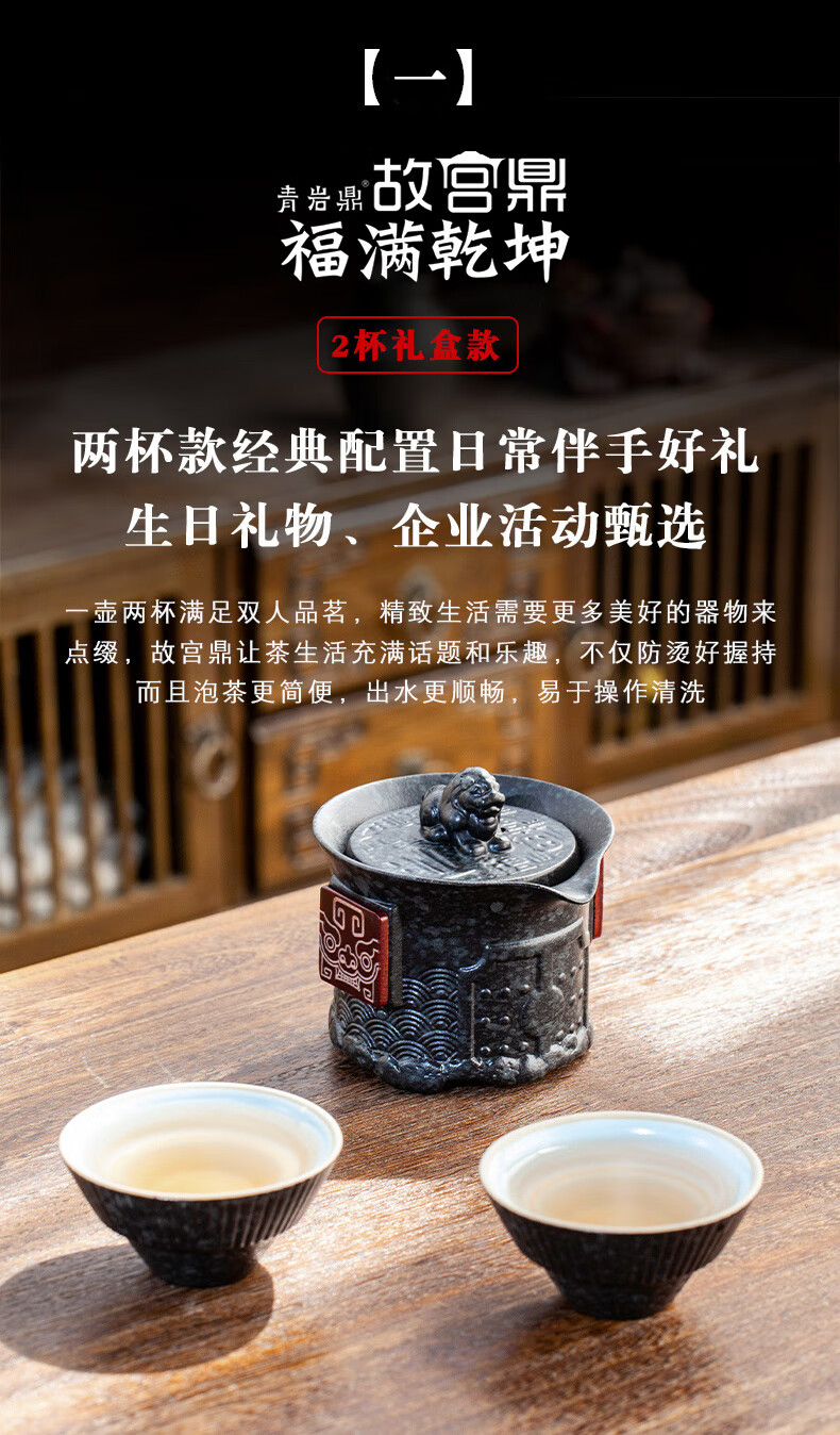 青岩鼎故宫文创旅行茶具套装生日礼物送男士长辈老公爸爸同事退休伴手礼 故宫鼎之福满乾坤·2杯礼盒款 1件