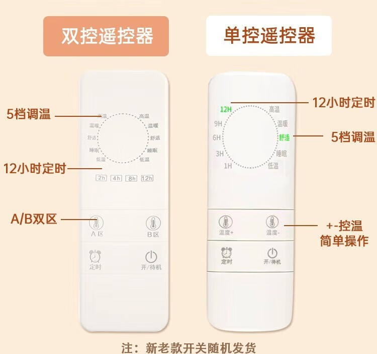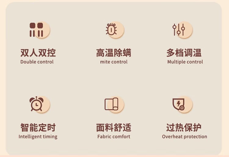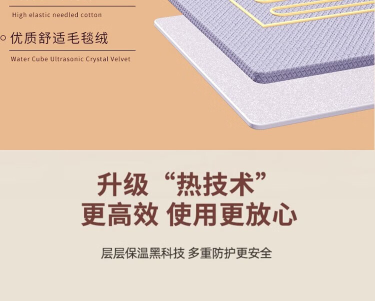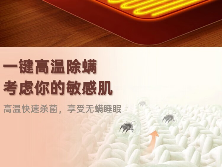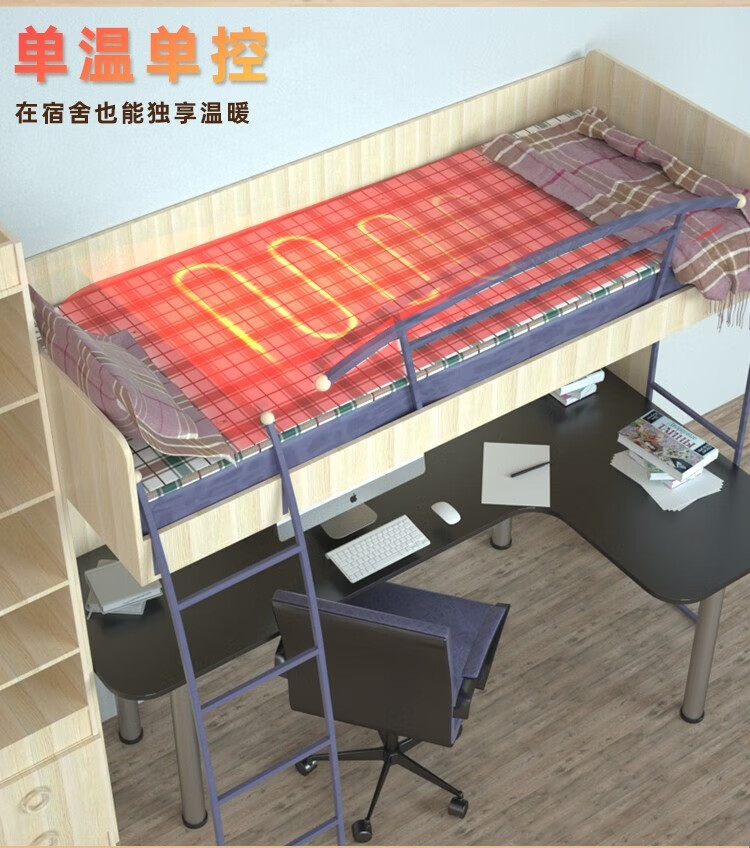 红豆HongDou电热毯智能除螨定时双温双控学生宿舍电褥子加厚加大家用 蓝格子150×120cm