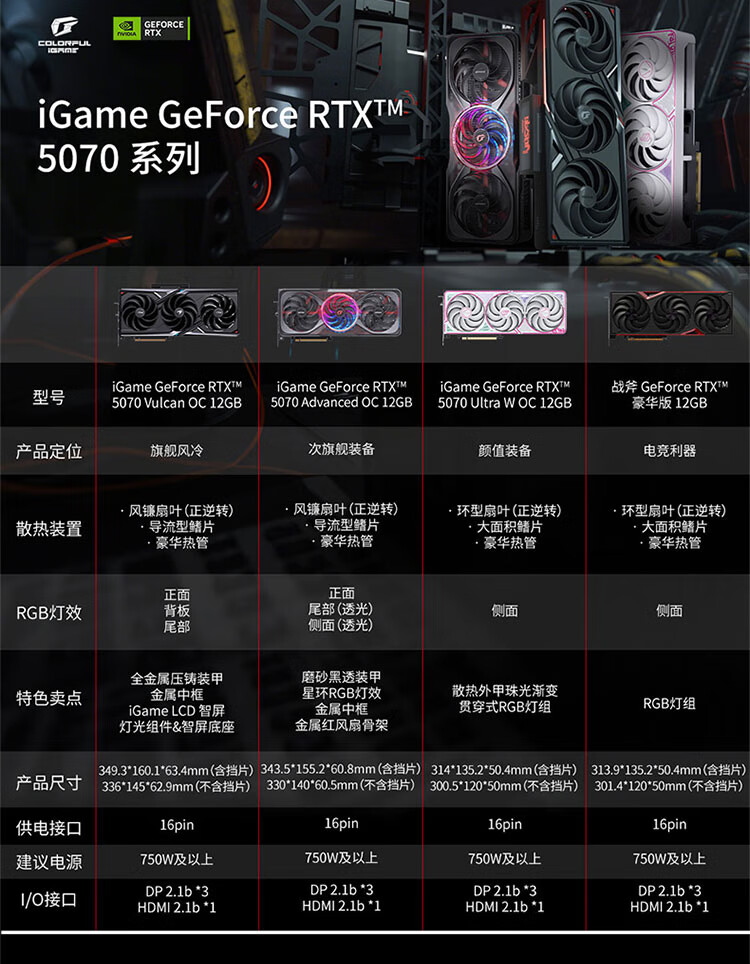 七彩虹RTX 5070 战斧 Ultra Advanced银鲨 火神 OC 12GB GDDR7 DLSS 4 电竞光追游戏设计电脑显卡 RTX 5070 战斧豪华