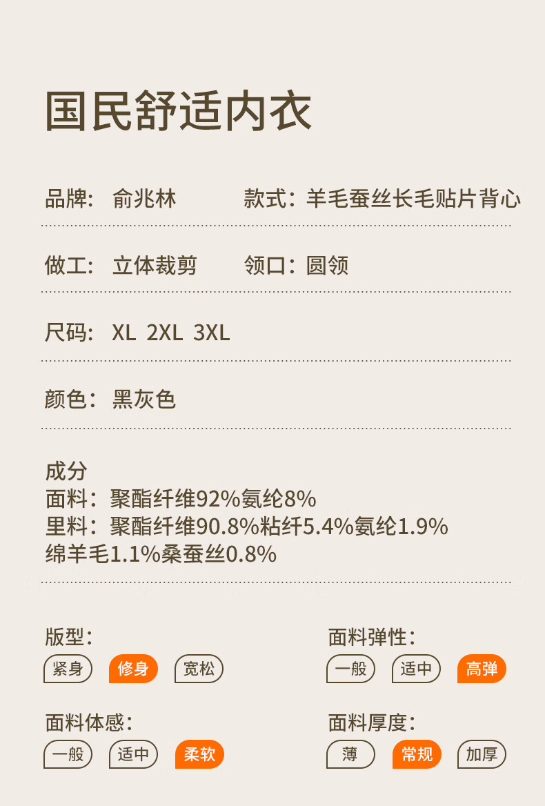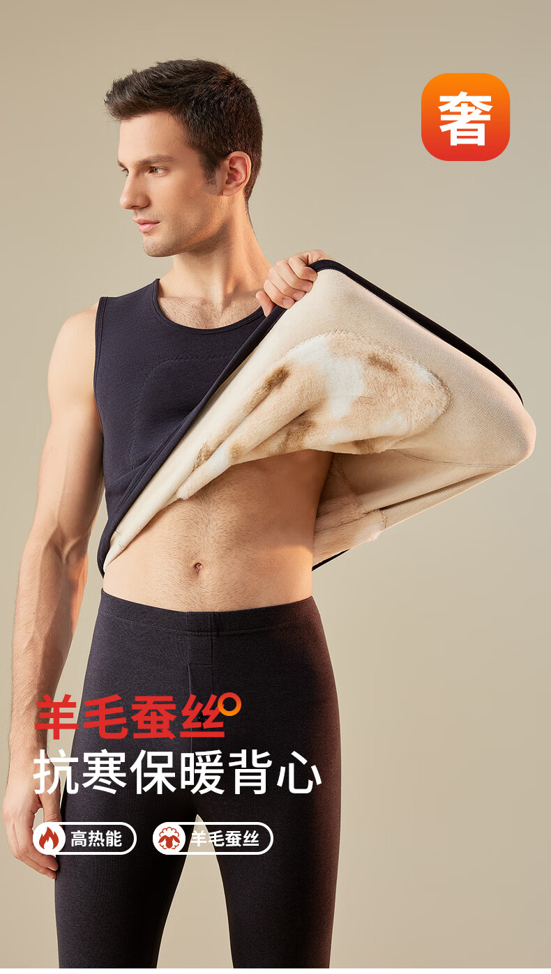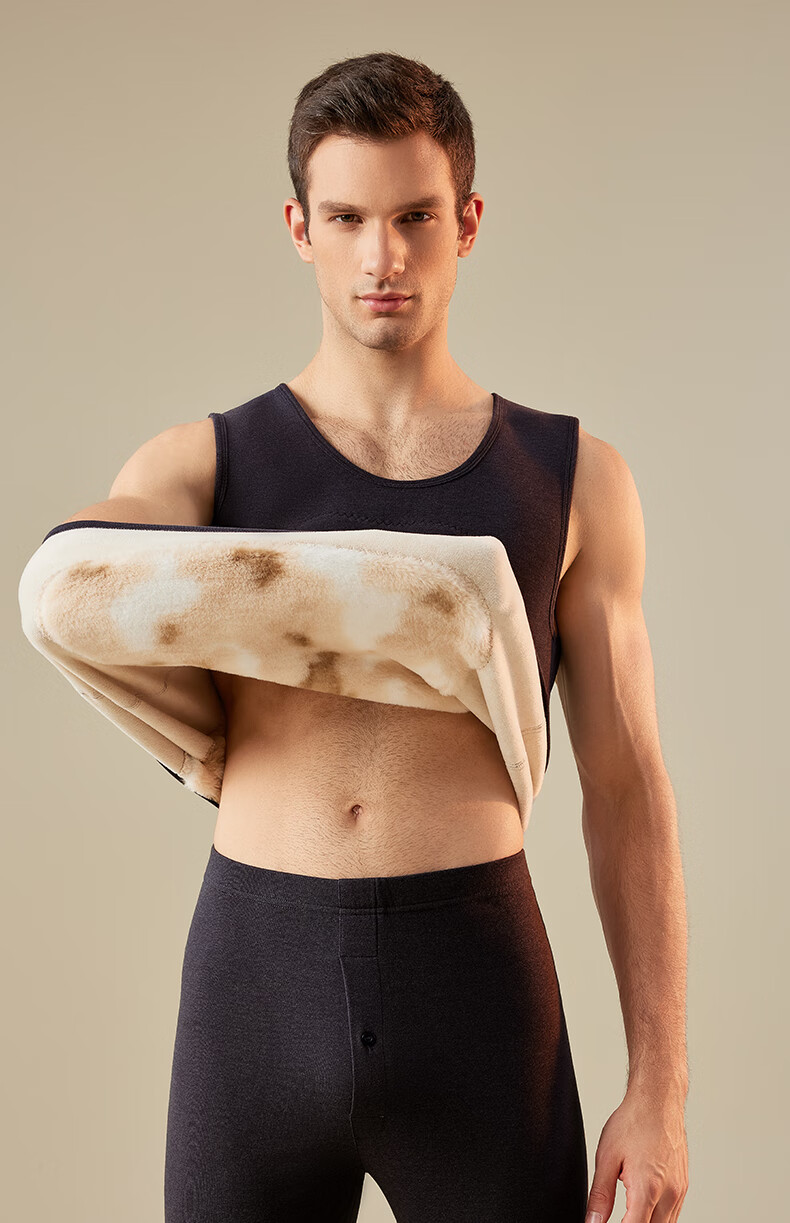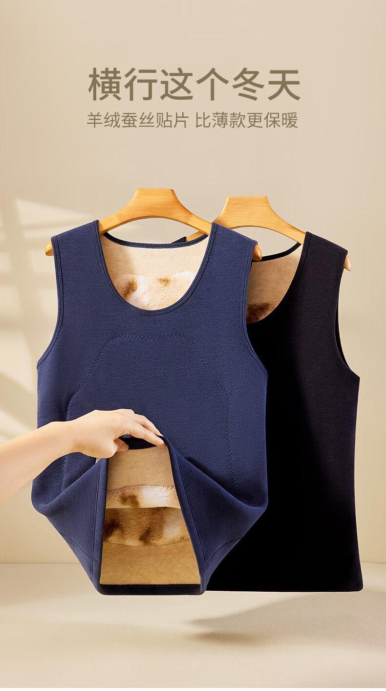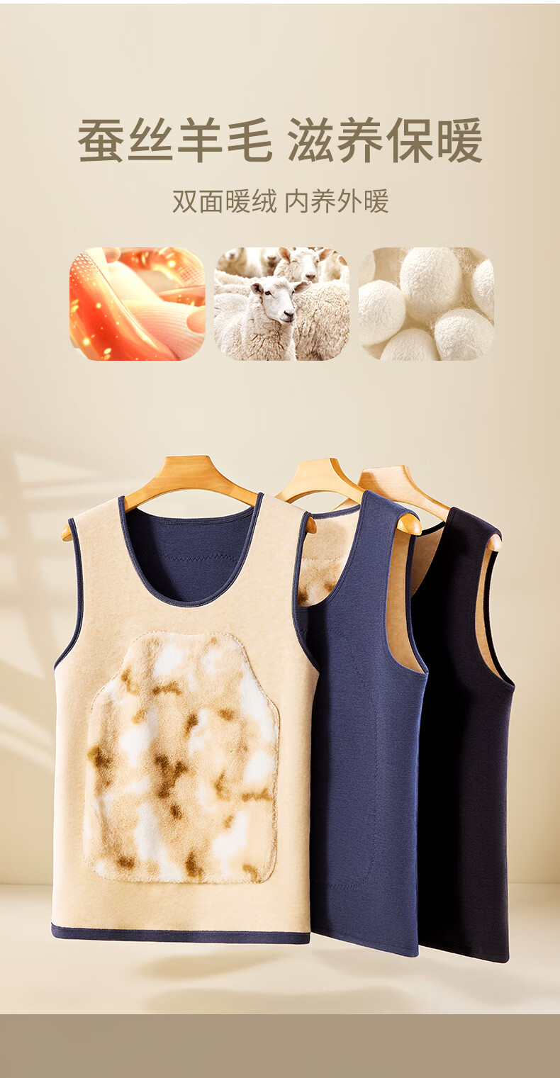俞兆林保暖背心男士秋冬无痕羊毛蚕丝加绒加厚德绒坎肩无袖马甲打底内衣