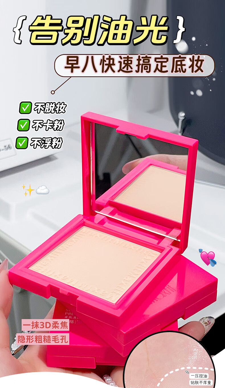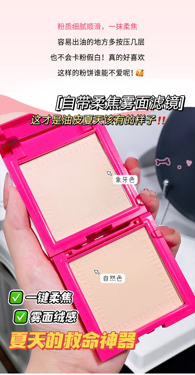 媚诗霏粉饼蜜粉散粉-粉色定妆补妆遮瑕控油柔焦雾面不卡粉不脱妆 02#自然色(粉盒)
