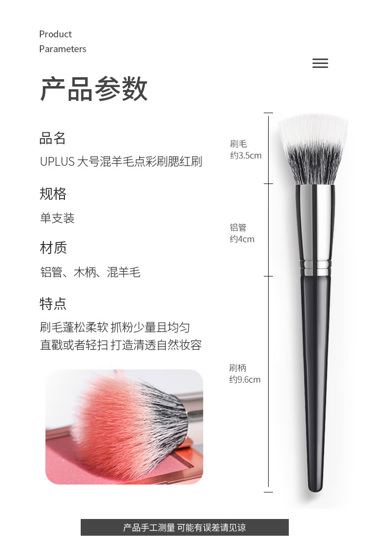 优家(UPLUS)大号混羊毛点彩刷腮红刷 平头动物毛晕染化妆刷高光刷散粉刷