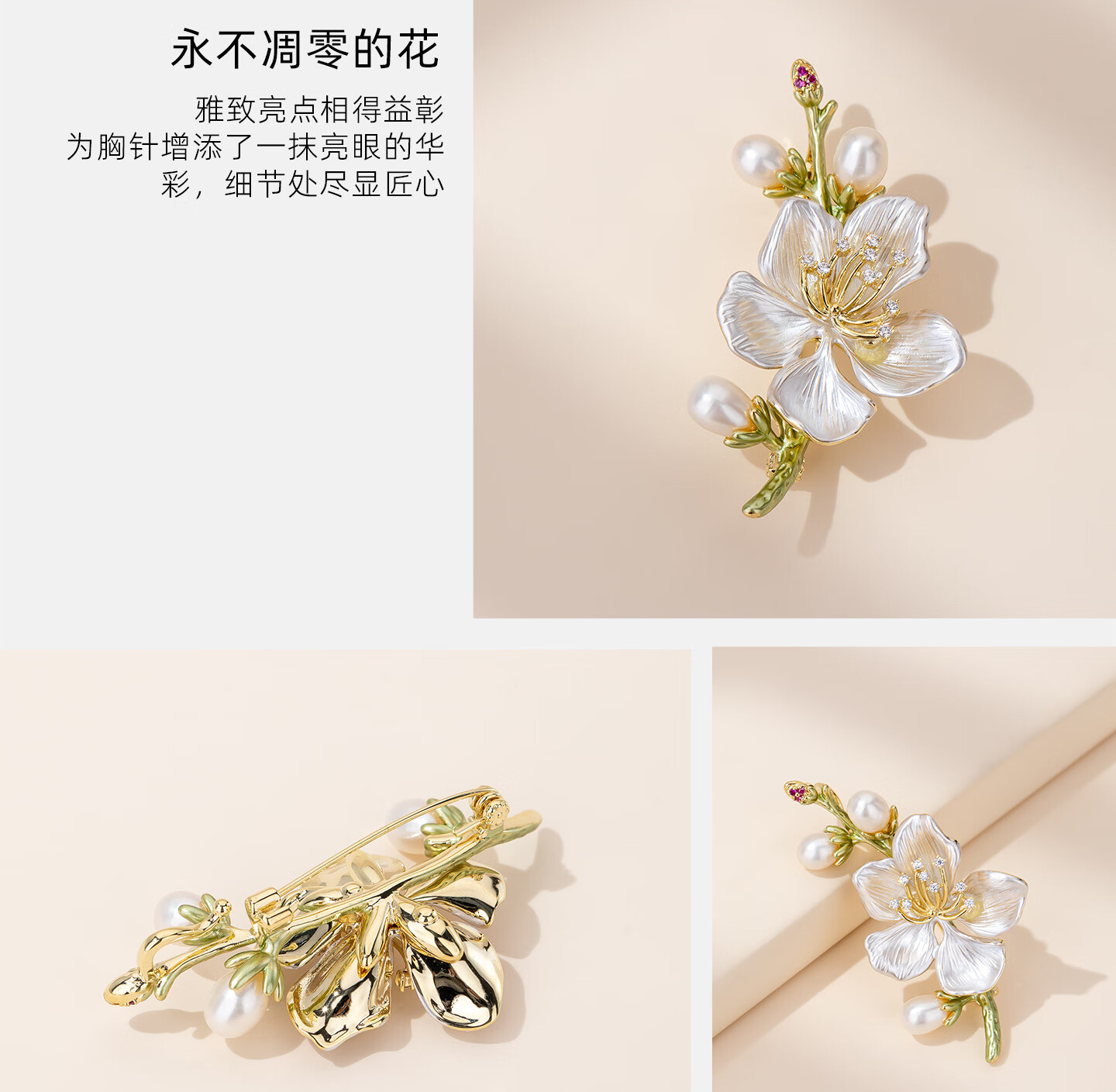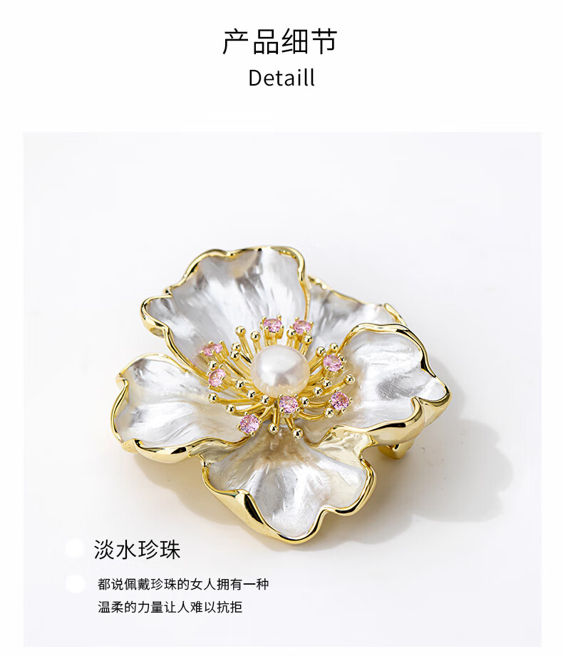 Qlady玉兰花淡水珍珠胸花胸针高级轻奢别针固定衣服高档女生日新年礼物