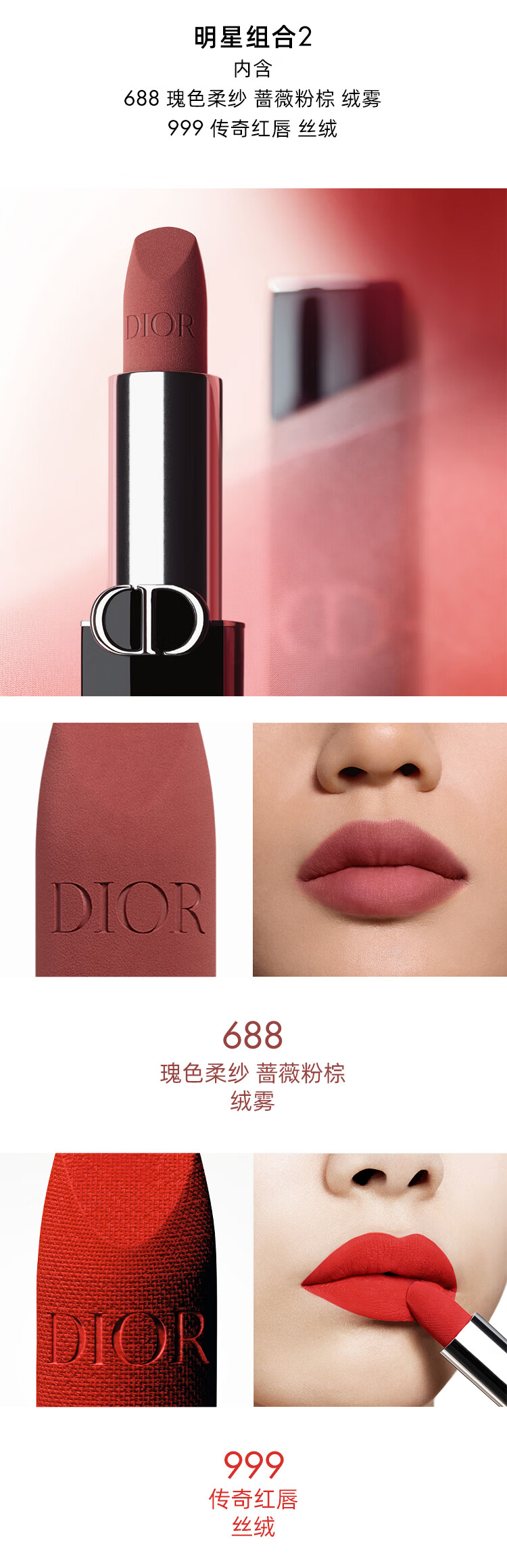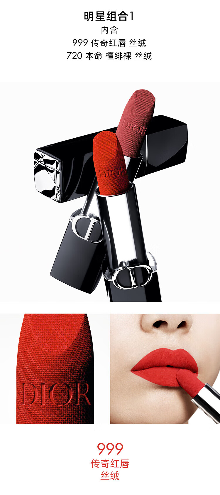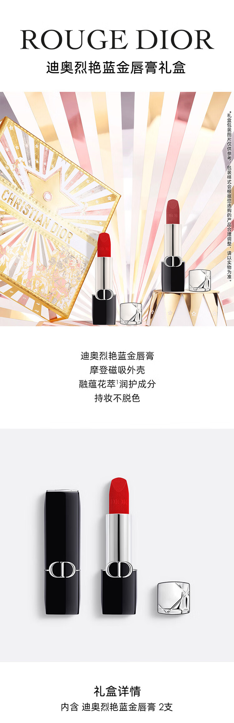 迪奥DIOR烈艳蓝金口红双支礼盒丝绒(999+720)唇膏套装 新年礼物女生