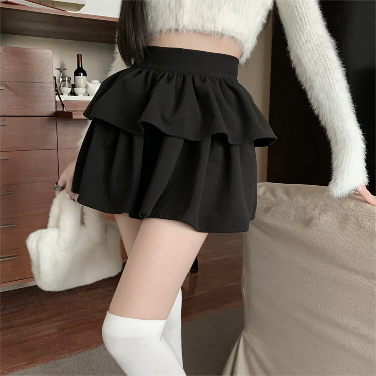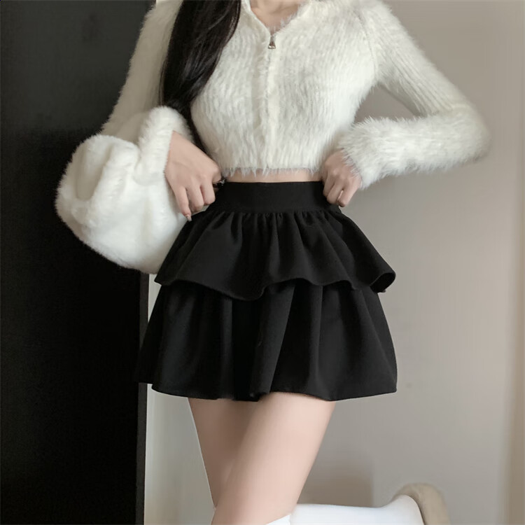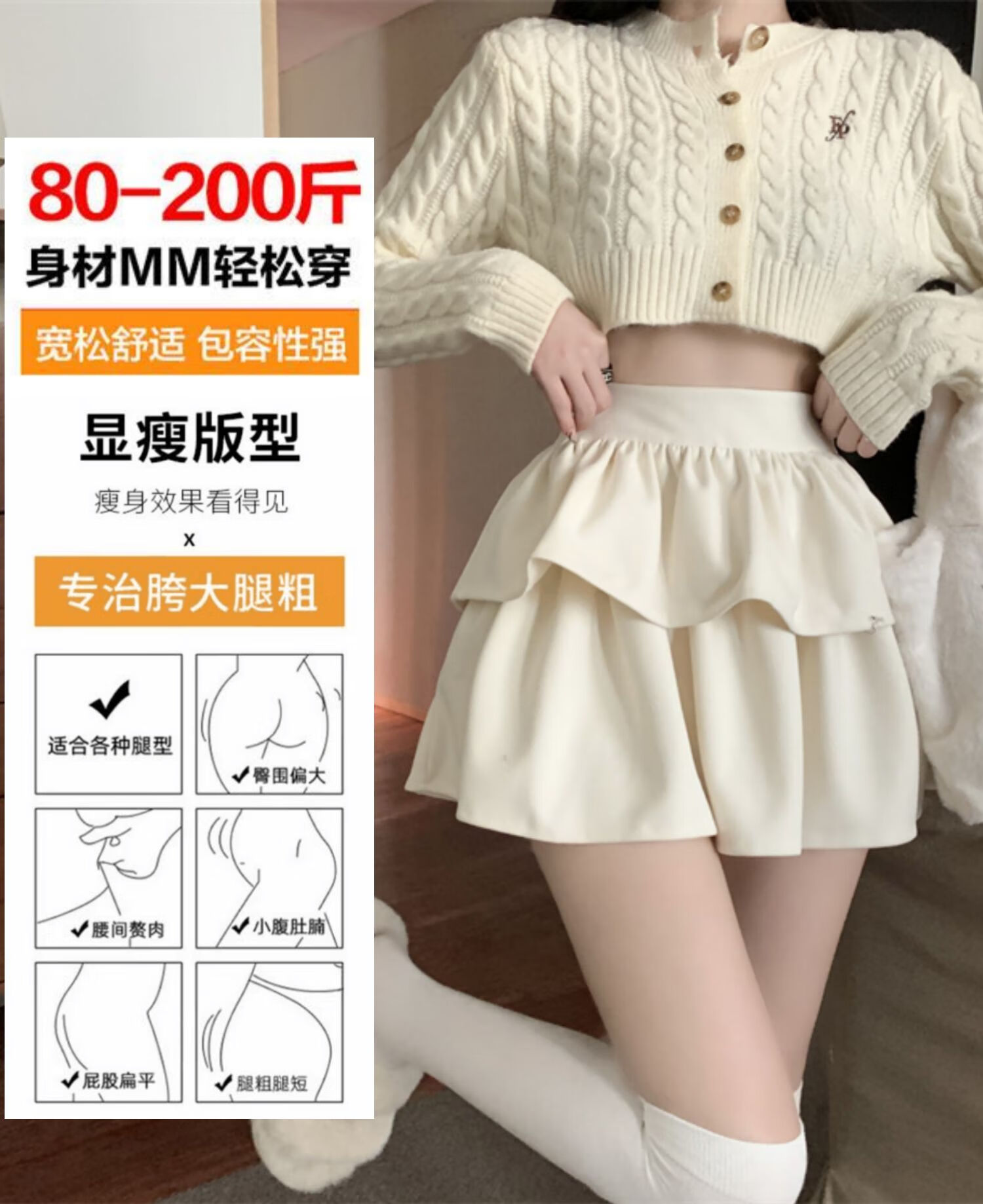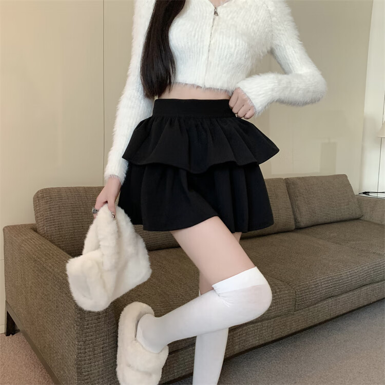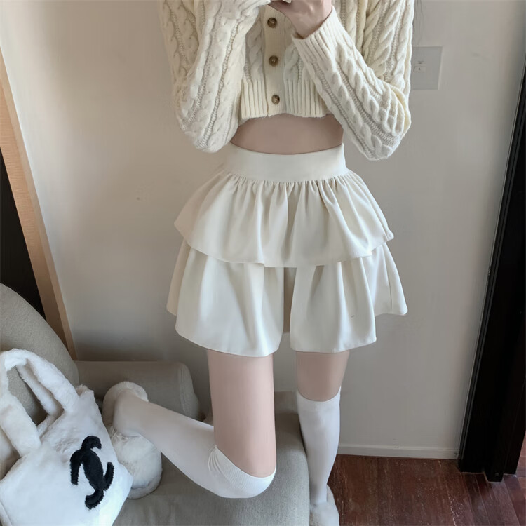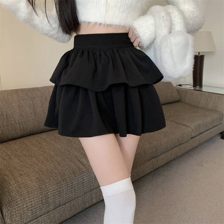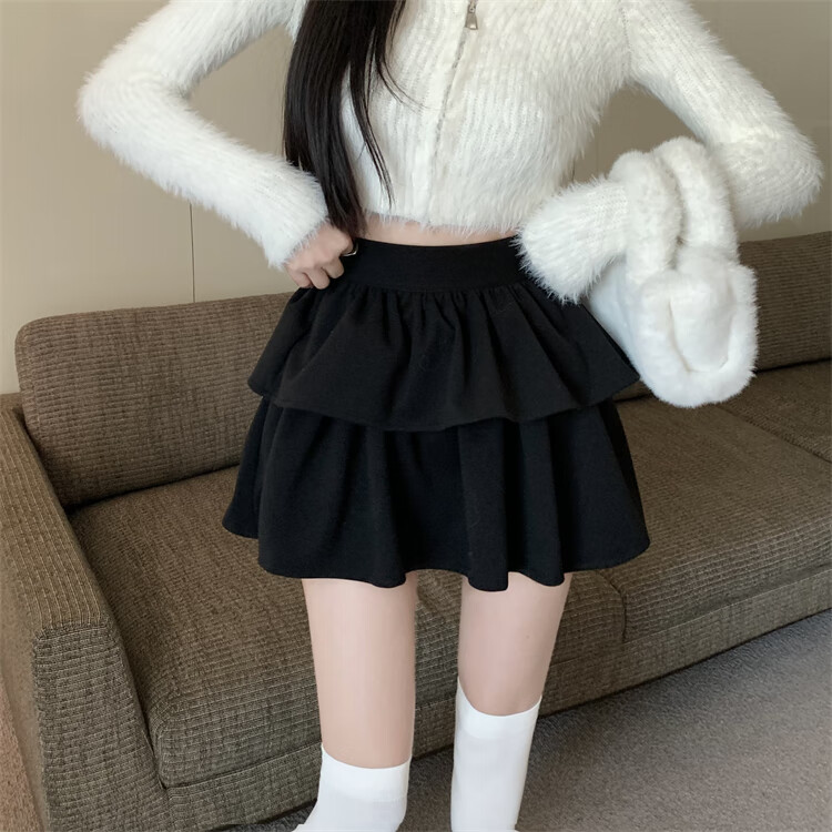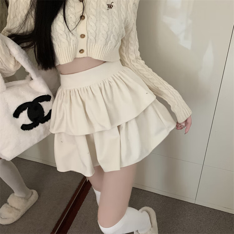 毛呢杏色短裙女秋季半身裙显瘦a字裙蛋糕裙蓬蓬裙小个子高腰裙子 杏色 L