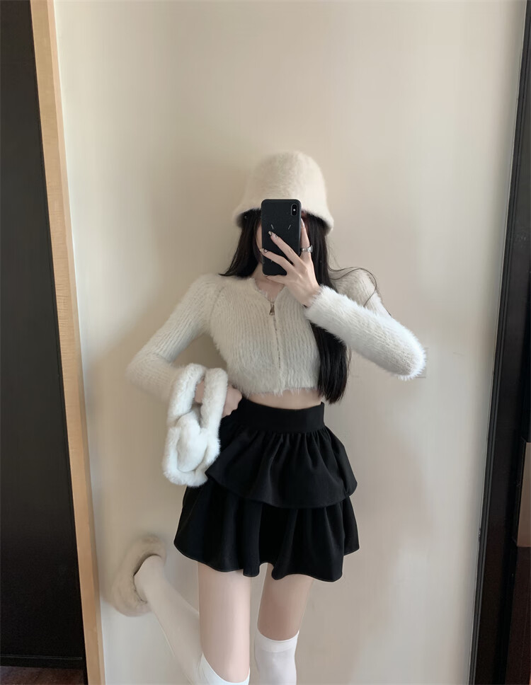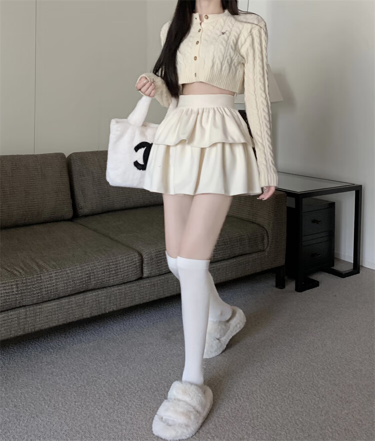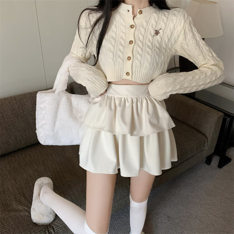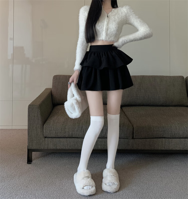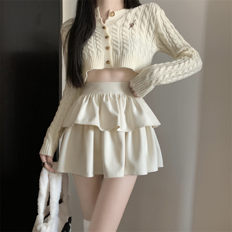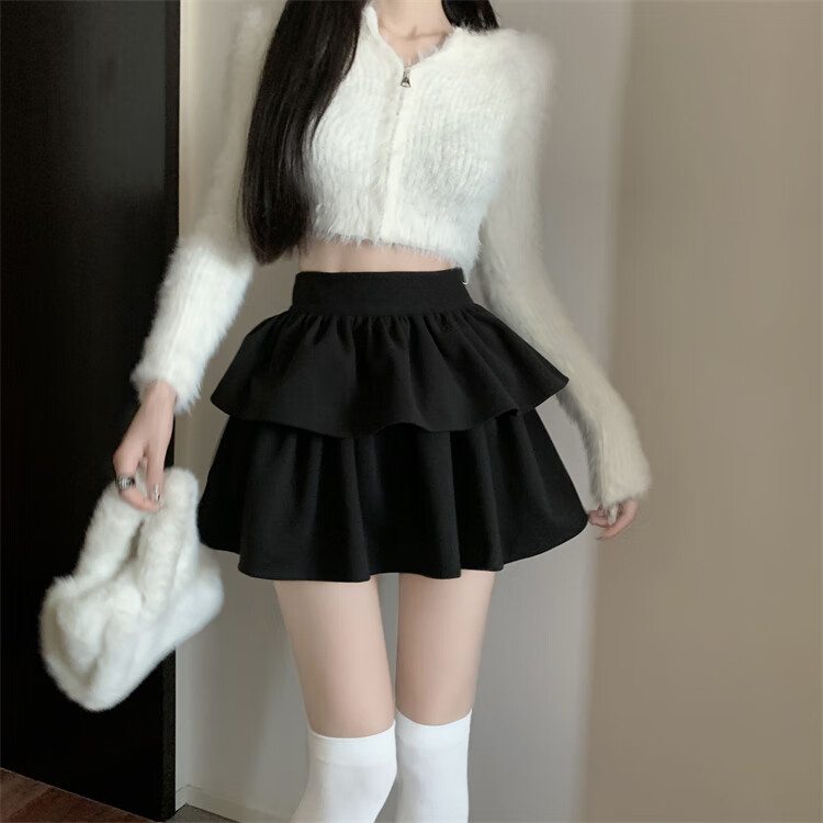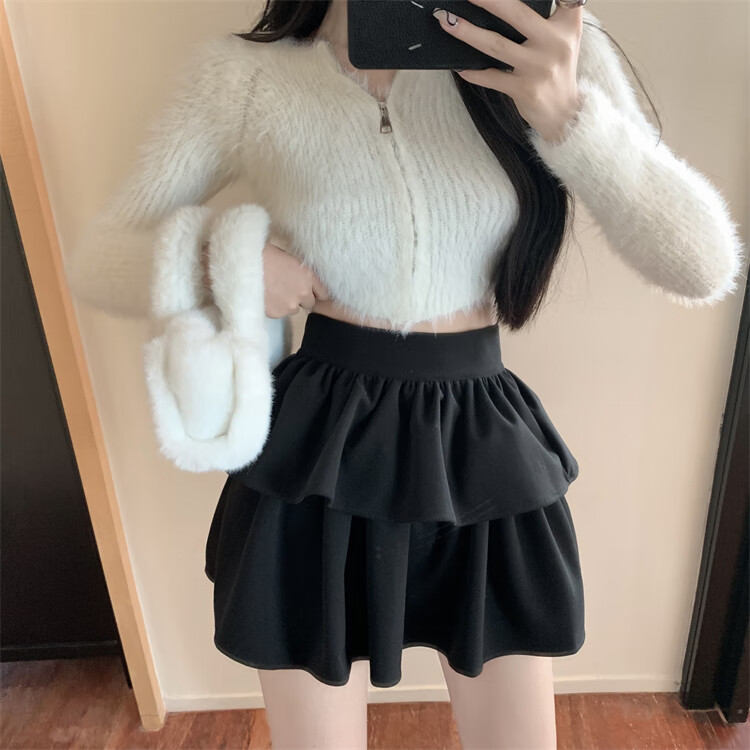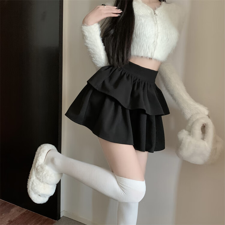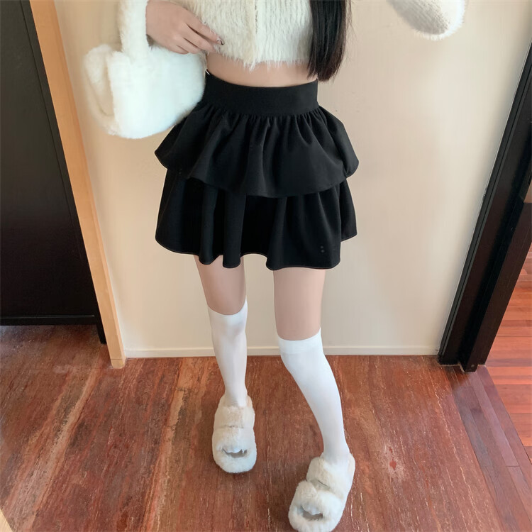 毛呢杏色短裙女秋季半身裙显瘦a字裙蛋糕裙蓬蓬裙小个子高腰裙子 杏色 L