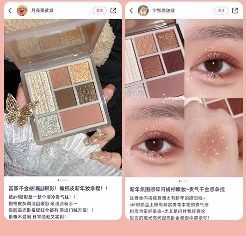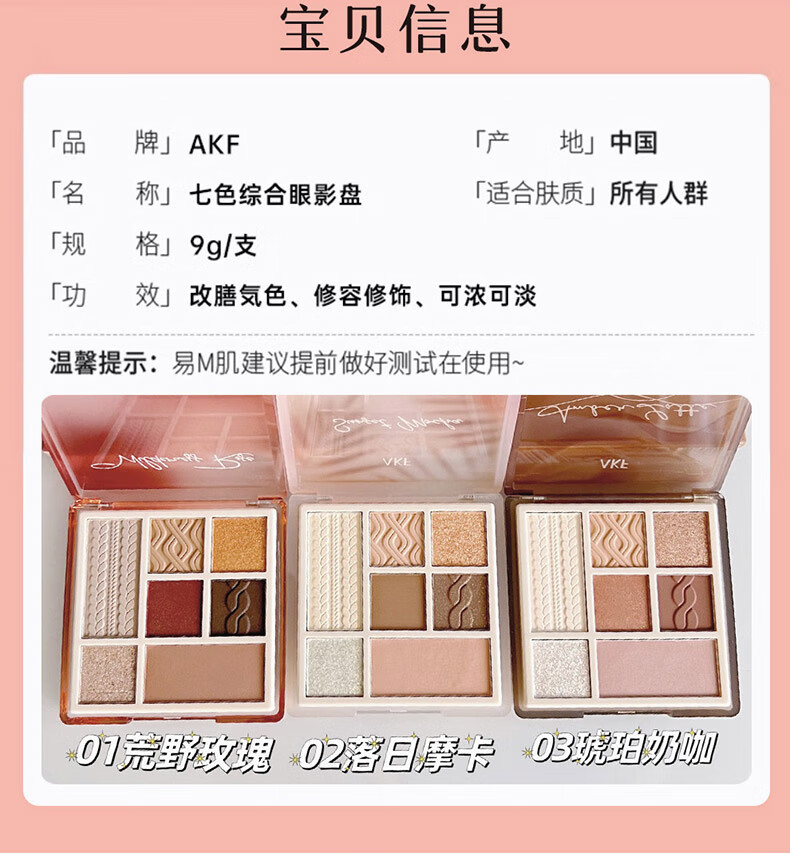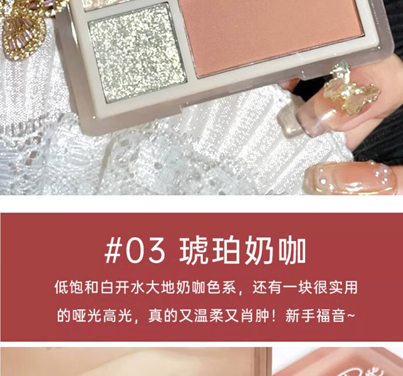 AKF眼影盘腮红高光提亮修容卧蚕全妆一体正品大牌懒人综合盘大地色系 #03琥珀奶咖【百搭-奶咖橘棕盘】