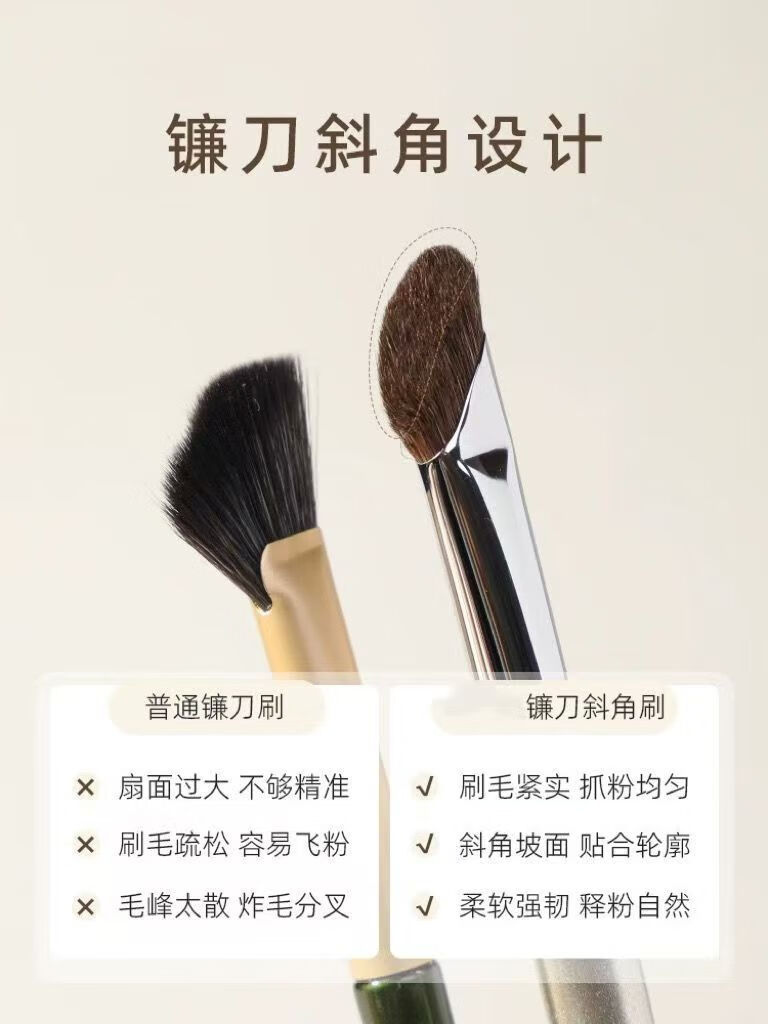 瑰金326镰刀斜头鼻影刷修容刷动物毛山根斜角阴影化妆刷 326小号鼻影刷+325大号鼻影刷