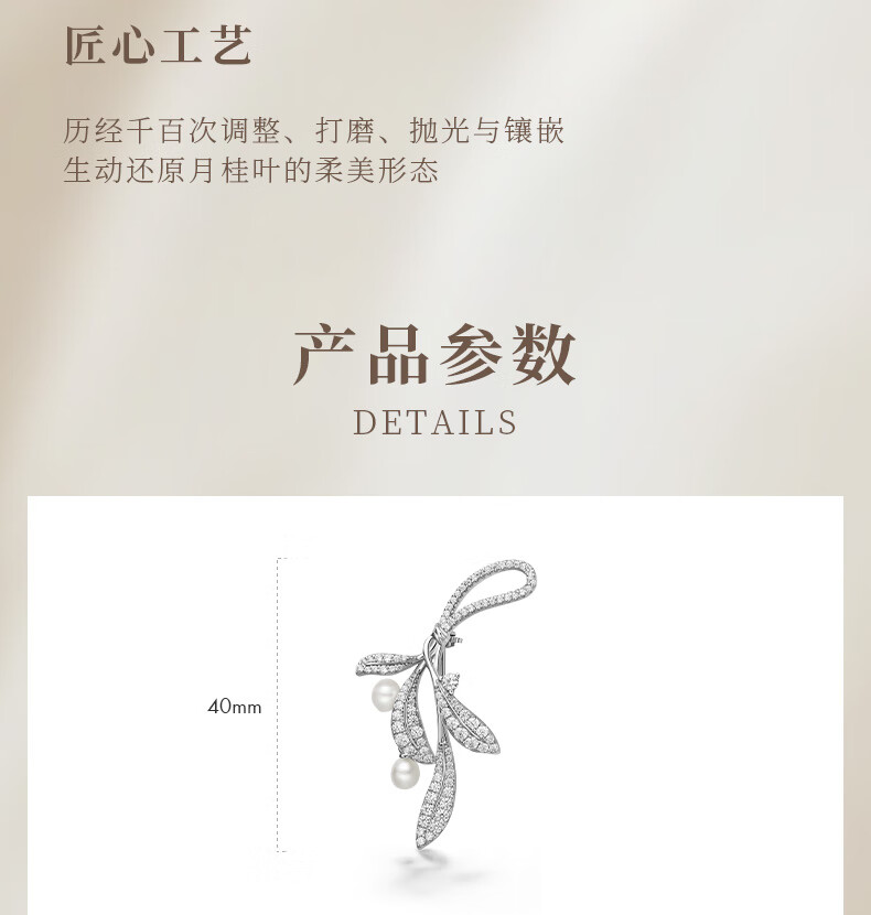 HEFANGHEFANG何方珠宝月桂叶珍珠胸针优雅别针轻奢高级感生日新年礼物送女友