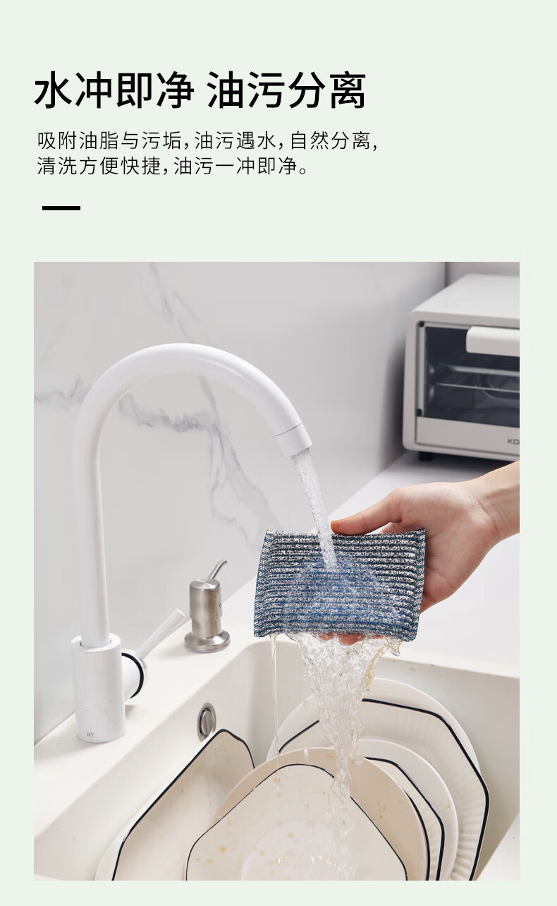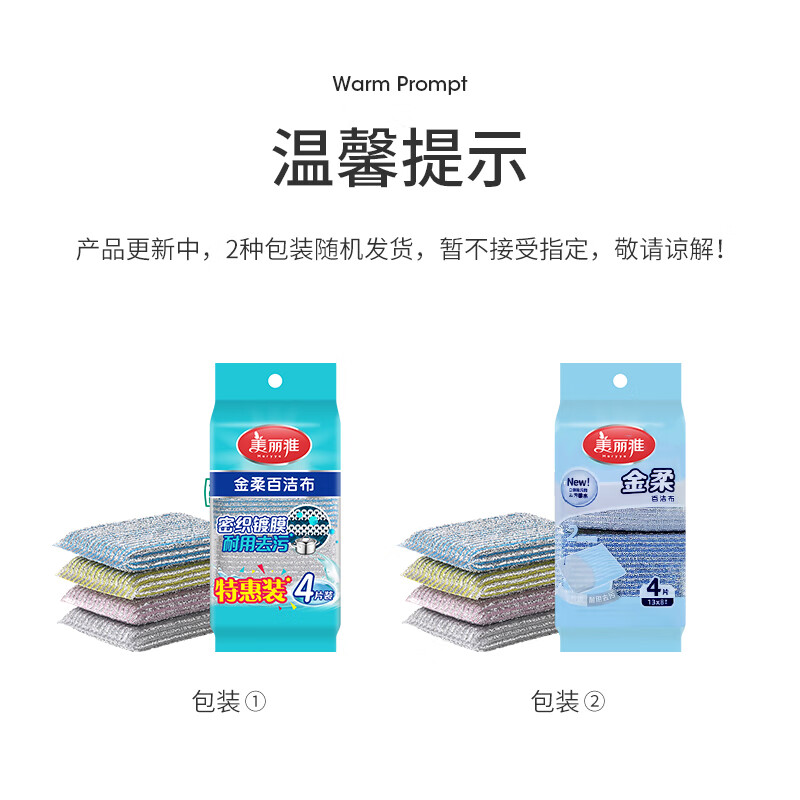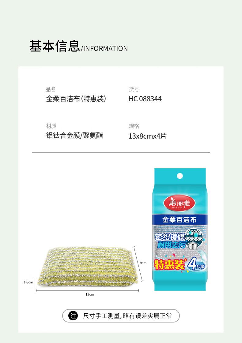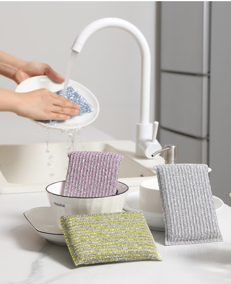 美丽雅洗碗海绵百洁布4块钢丝抹布洗碗不掉丝去油污刷厨具厨房家用神器
