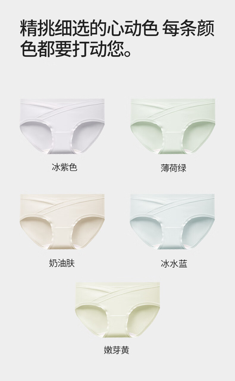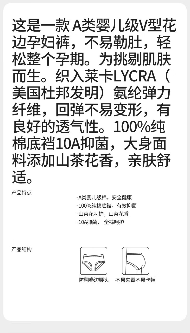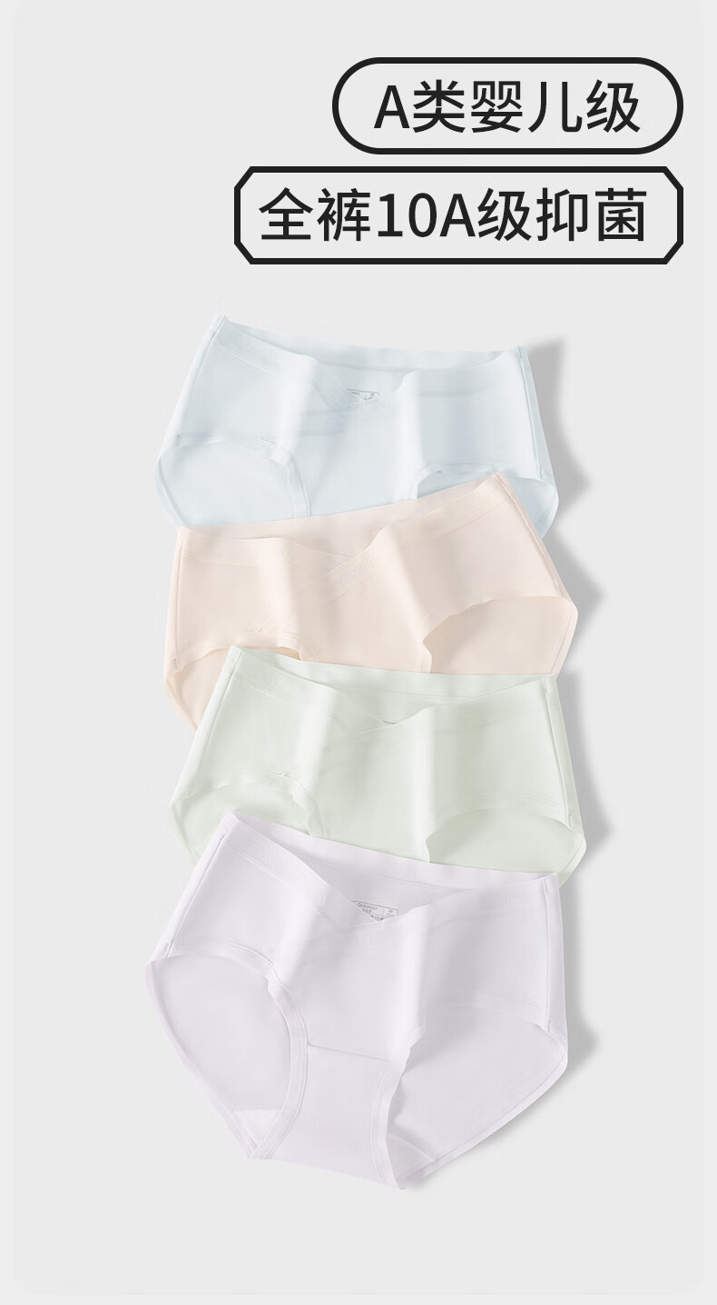 朵朵棉A类棉孕期女士内裤女低腰V型托腹10A抑菌100%棉裆部3条装