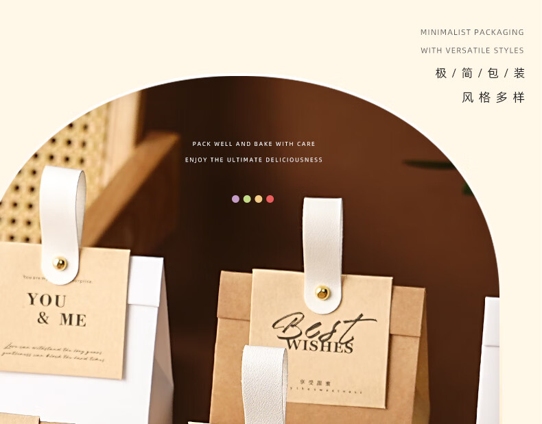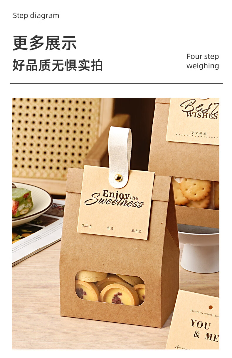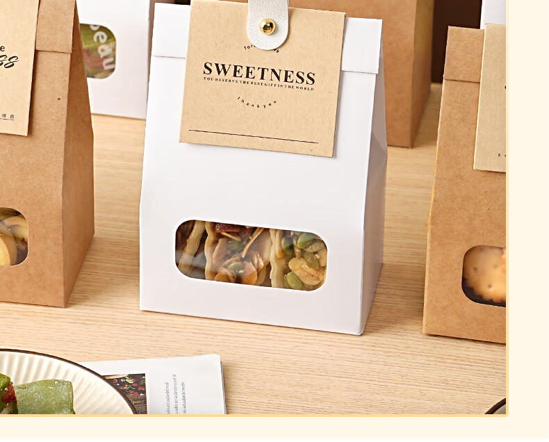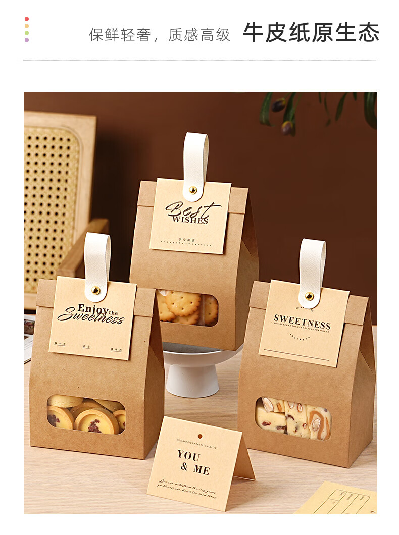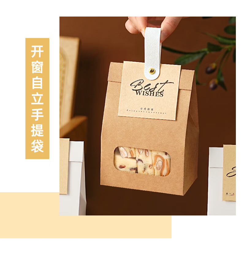 十色生活雪花酥包装袋曲奇饼干牛皮纸袋子太妃糖零食糕点手提打包礼盒白色