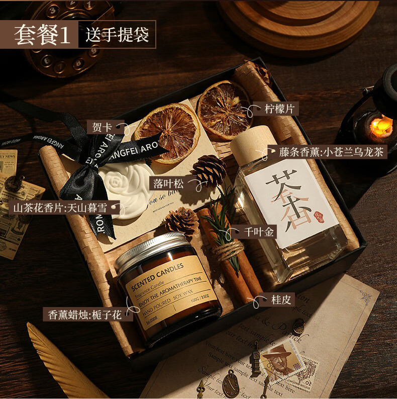 AMOR HOUR新年礼物无火香薰套装茶香扩香石精油高级年会送人蜡烛扩香礼盒