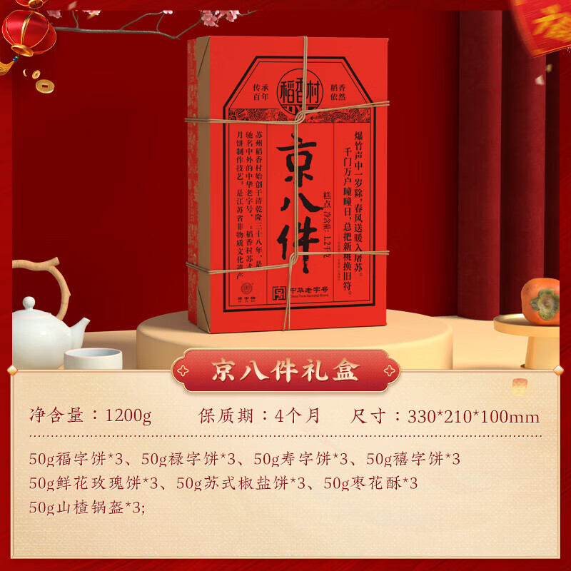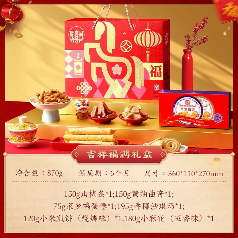稻香村糕点礼盒中式糕点曲奇饼干鸡蛋卷桃酥凤梨饼果酥京八件年货大礼包 蛋酥沙琪玛800g