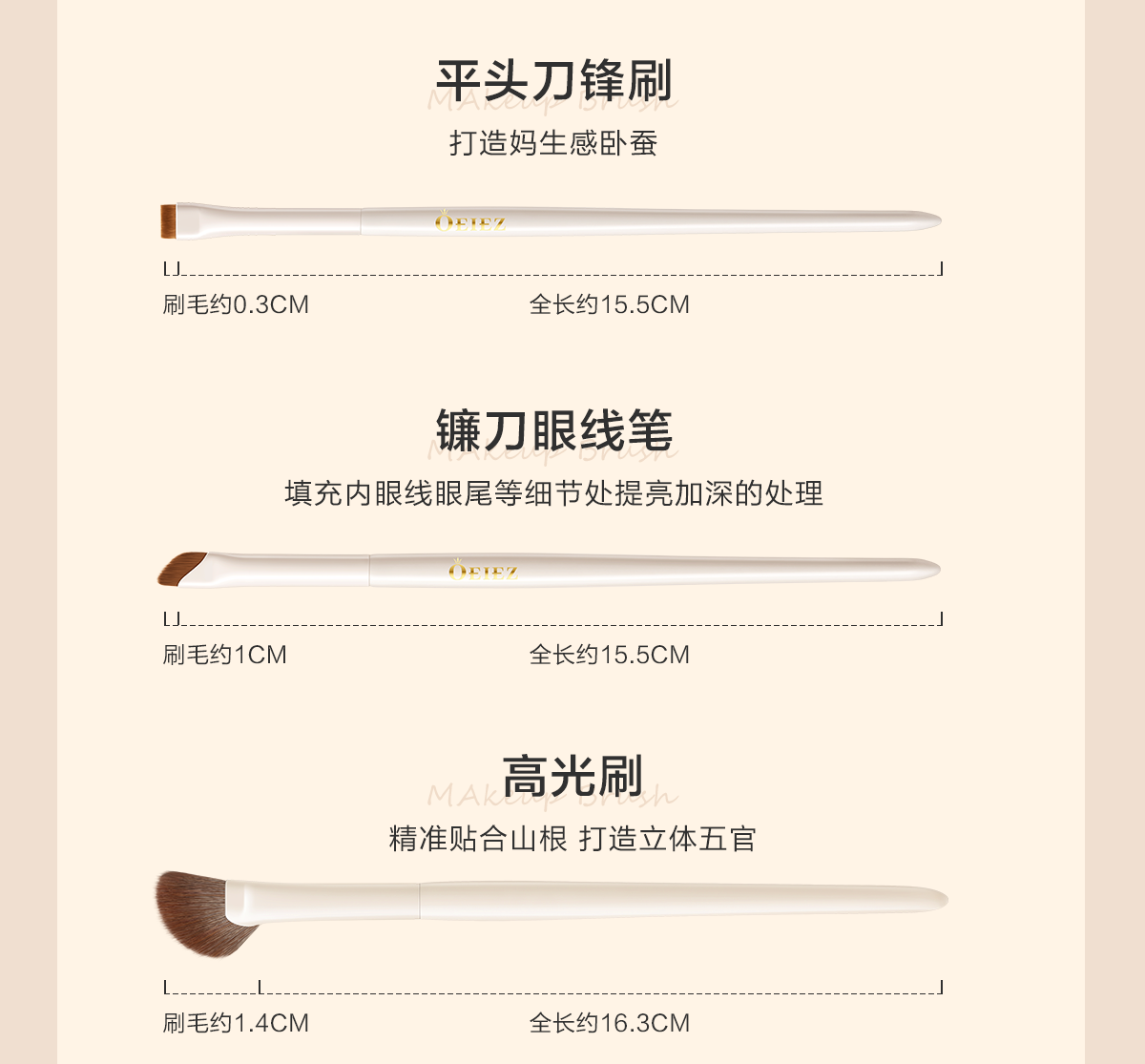 欧亿姿(oeiez)化妆刷套装眼影刀锋刷散粉腮红修容晕染鼻影刷全套刷子礼物送女友 【面部基础套刷】 5支