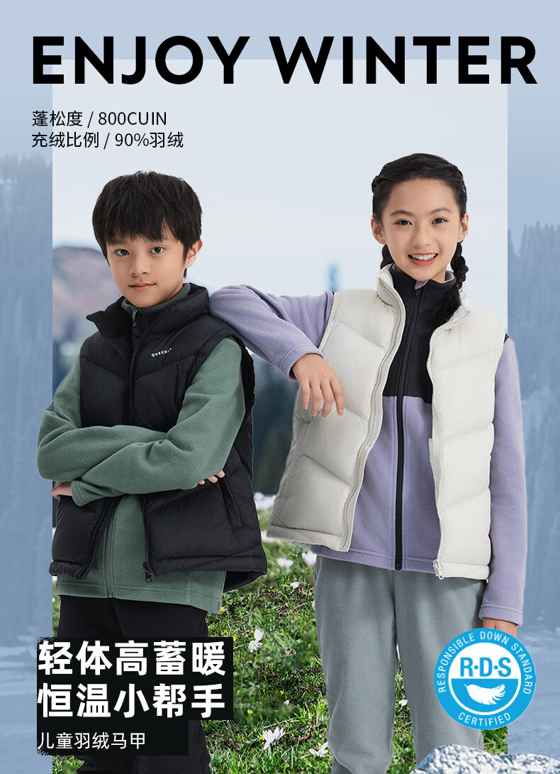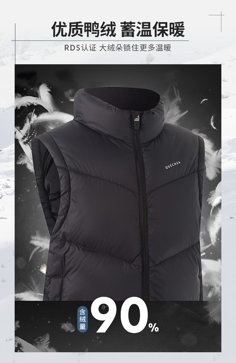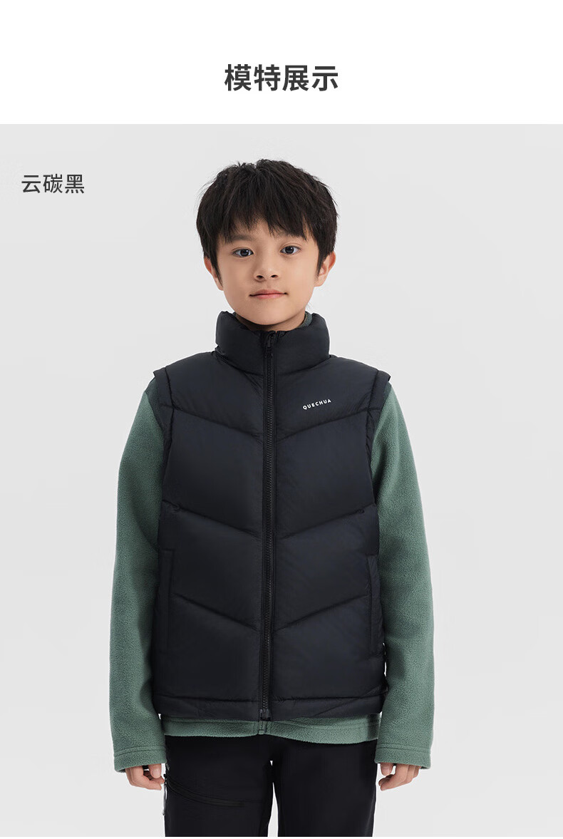 迪卡侬儿童羽绒马甲男女轻薄保暖背心春秋加绒外套161-172cm-4699183