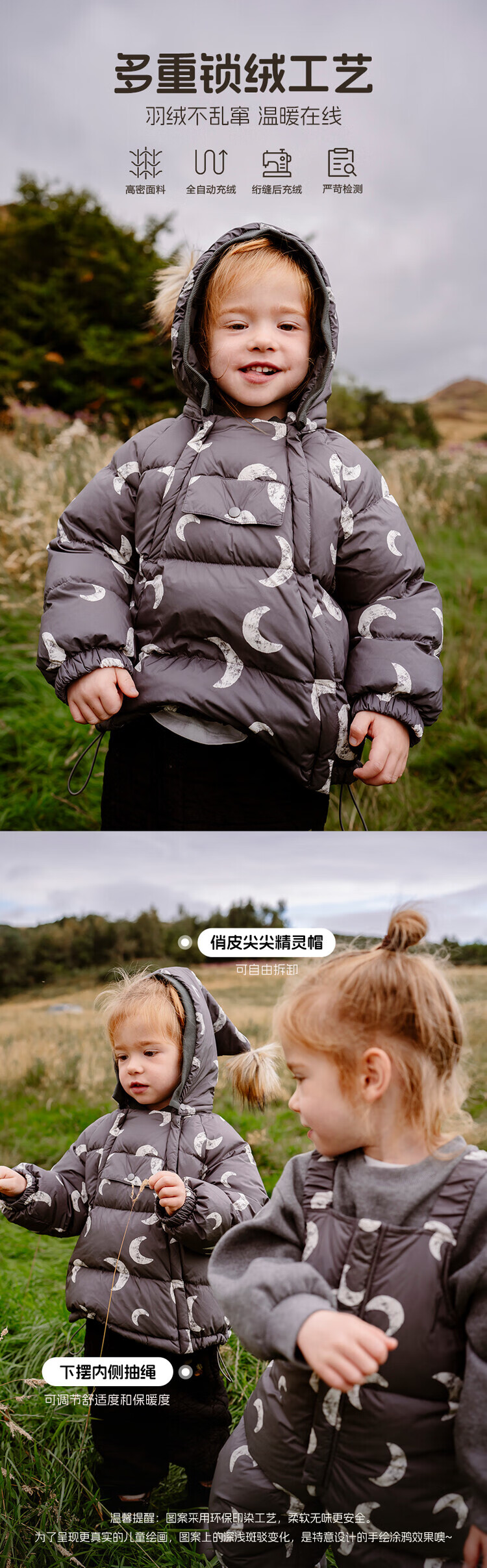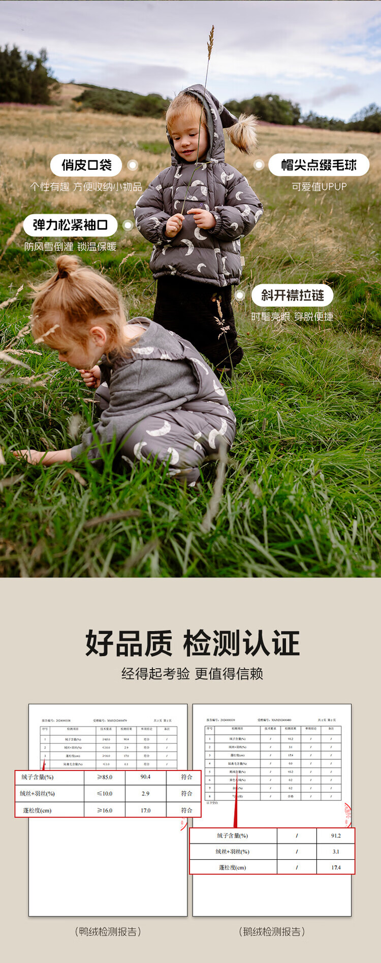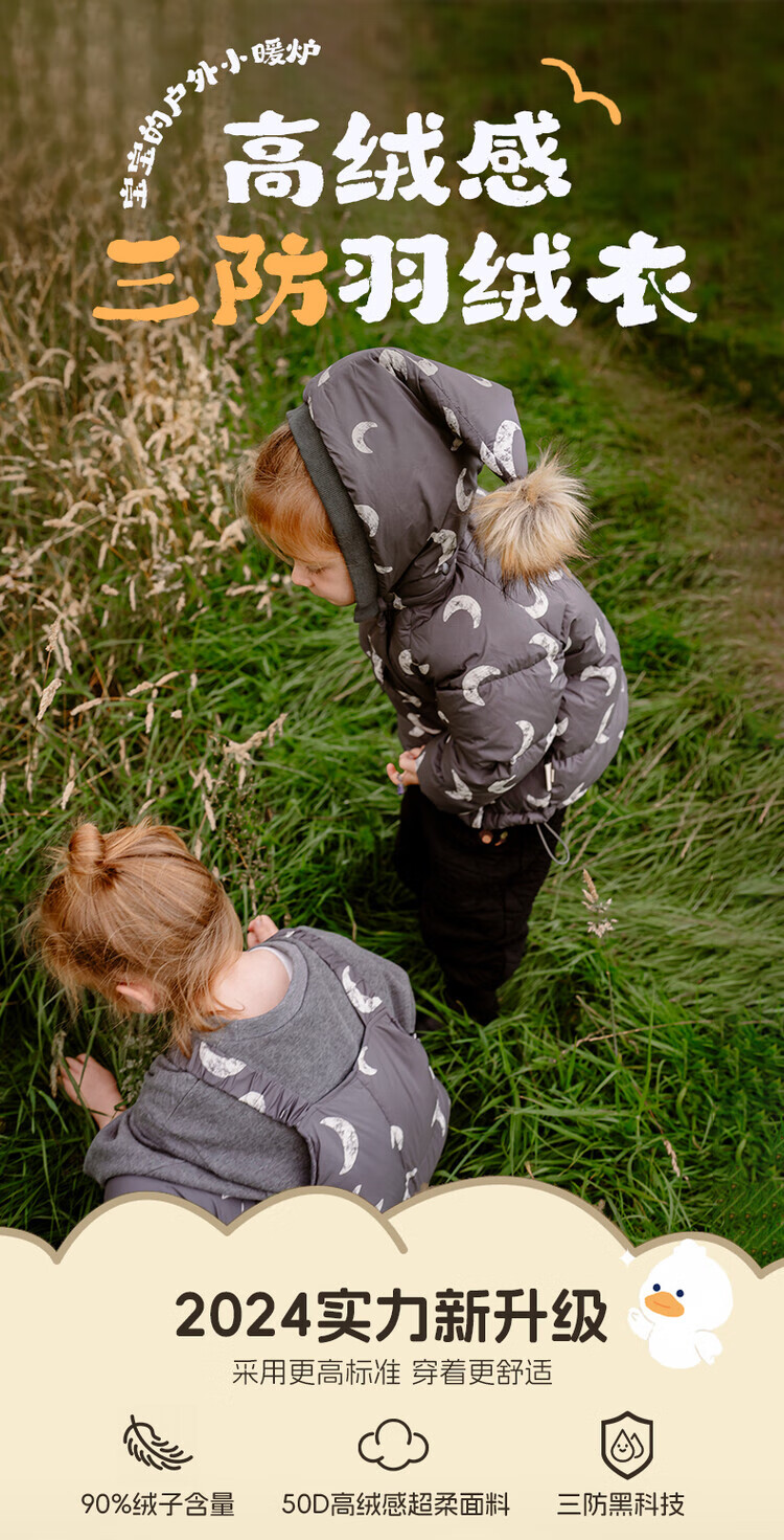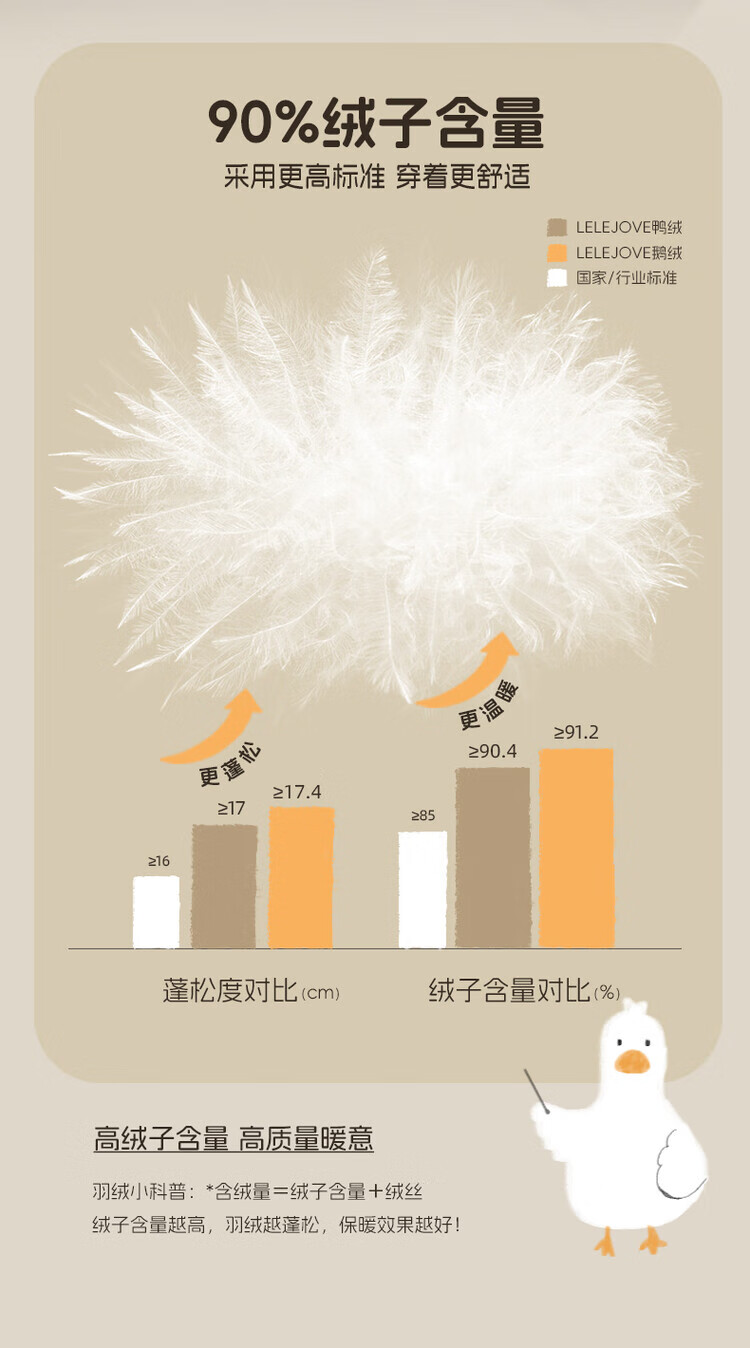 LELE JOVE【鸭绒三防】儿童精灵帽羽绒服冬季男女宝蓬松加厚保暖羽绒裤 杏色鸭绒-羽绒服 90 cm