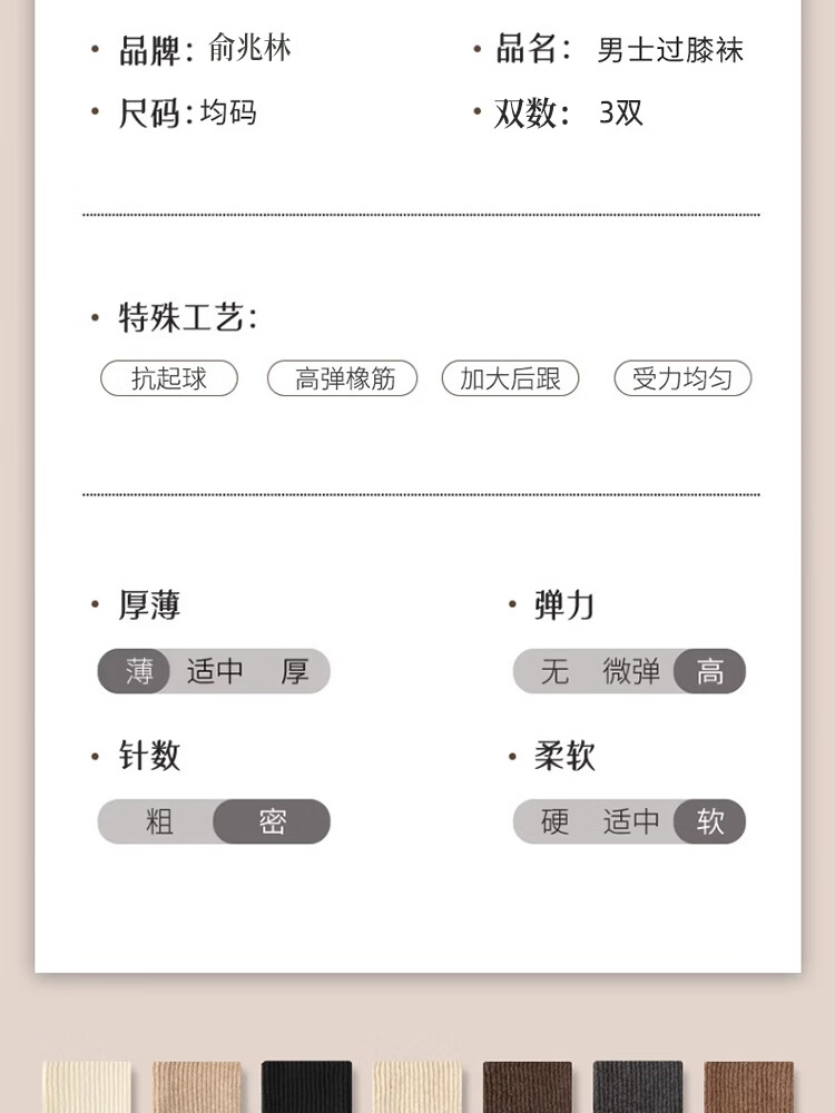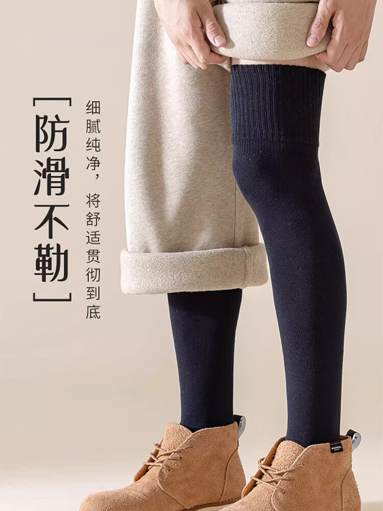 俞兆林3双袜子男款长筒袜套秋冬季加长过膝盖护膝盖保暖老寒腿男士护腿