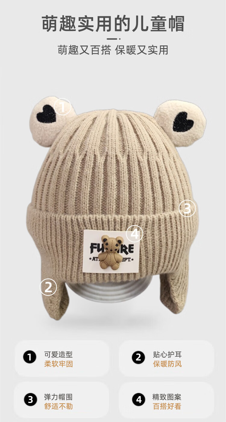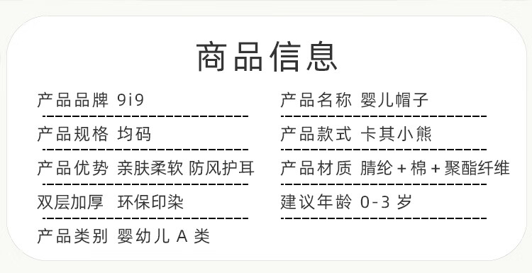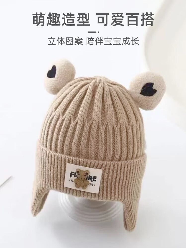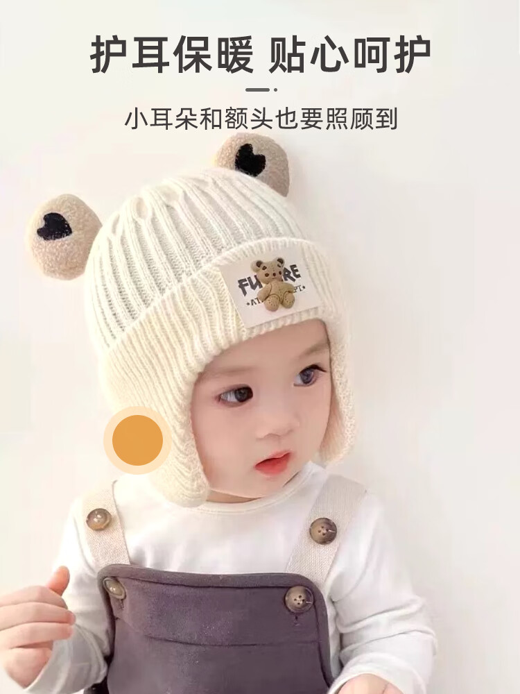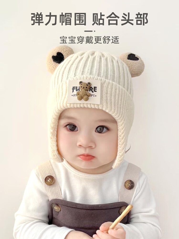 9i9婴儿帽子冬季加厚护耳帽宝宝帽子儿童保暖防风帽0-3岁小熊A165