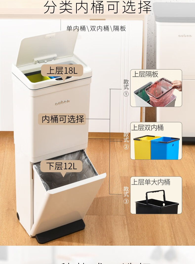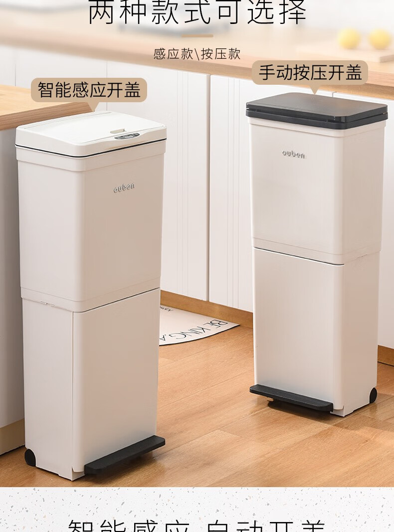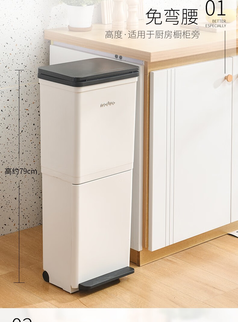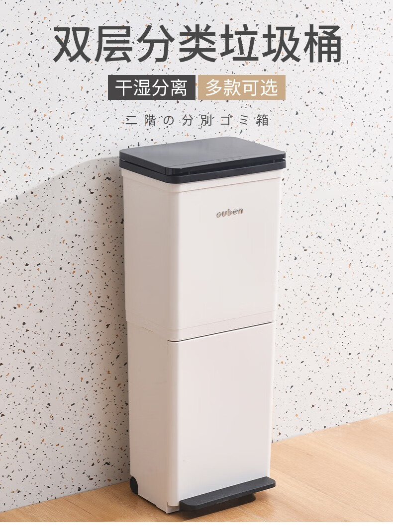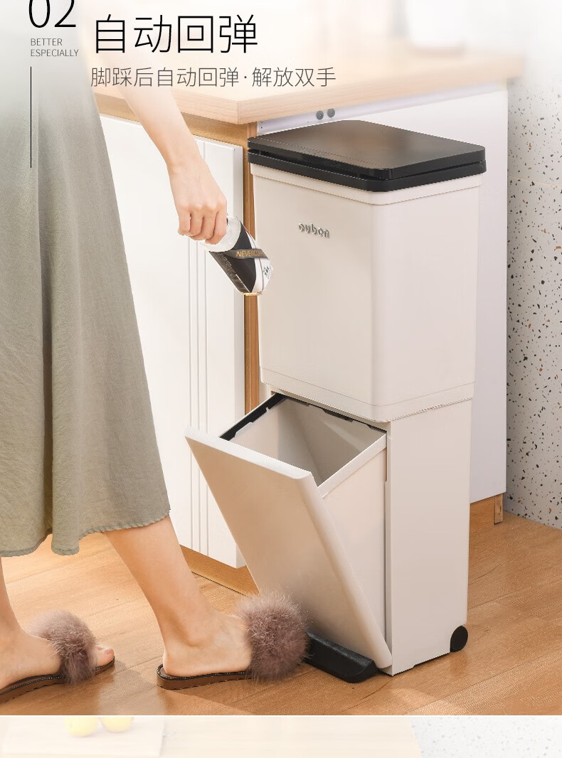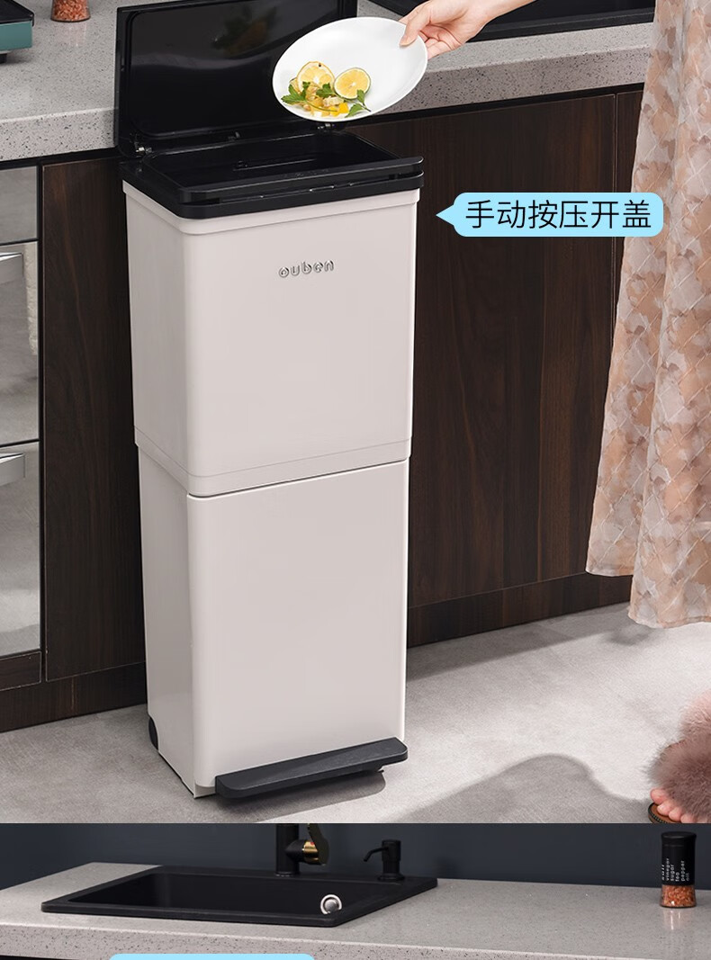 美易天欧本双层垃圾分类垃圾桶家用厨房垃圾桶带盖大号厨余脚踏塑料拉圾 按压式 竖款(带厨余小内筒) 42L