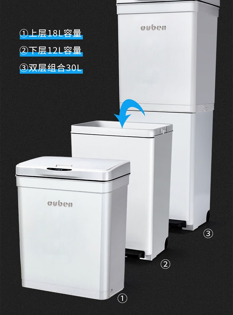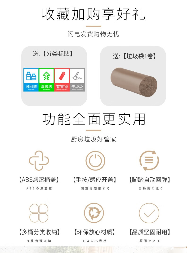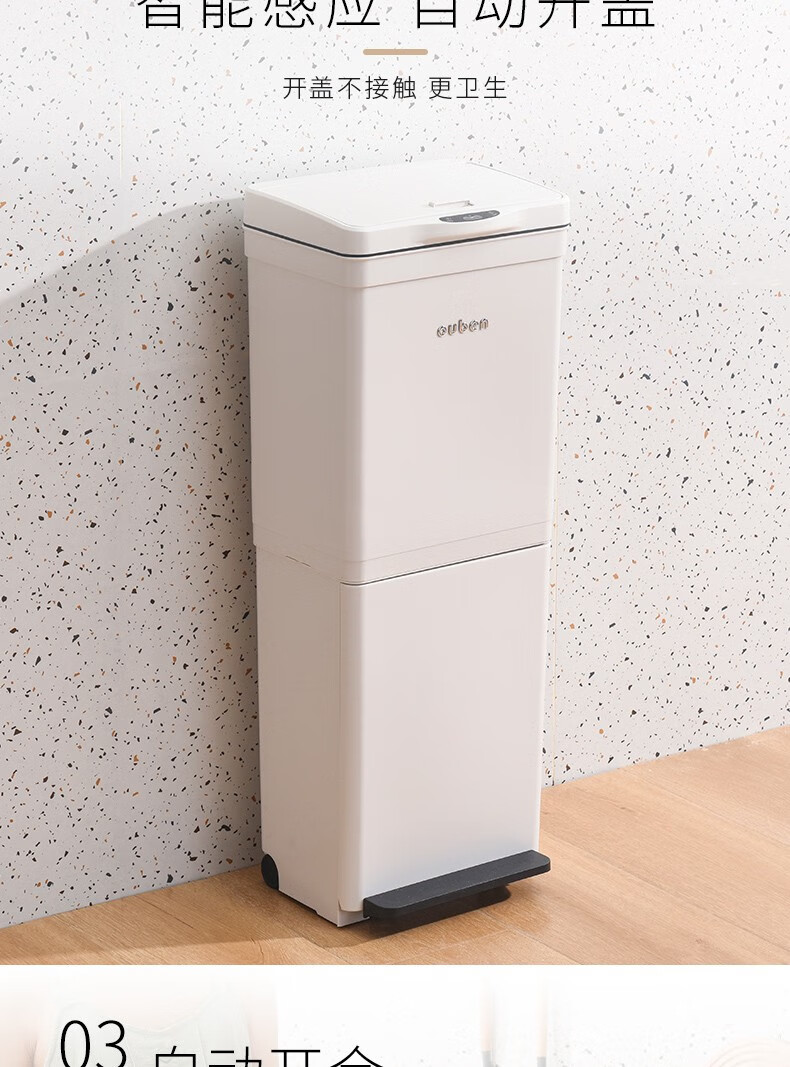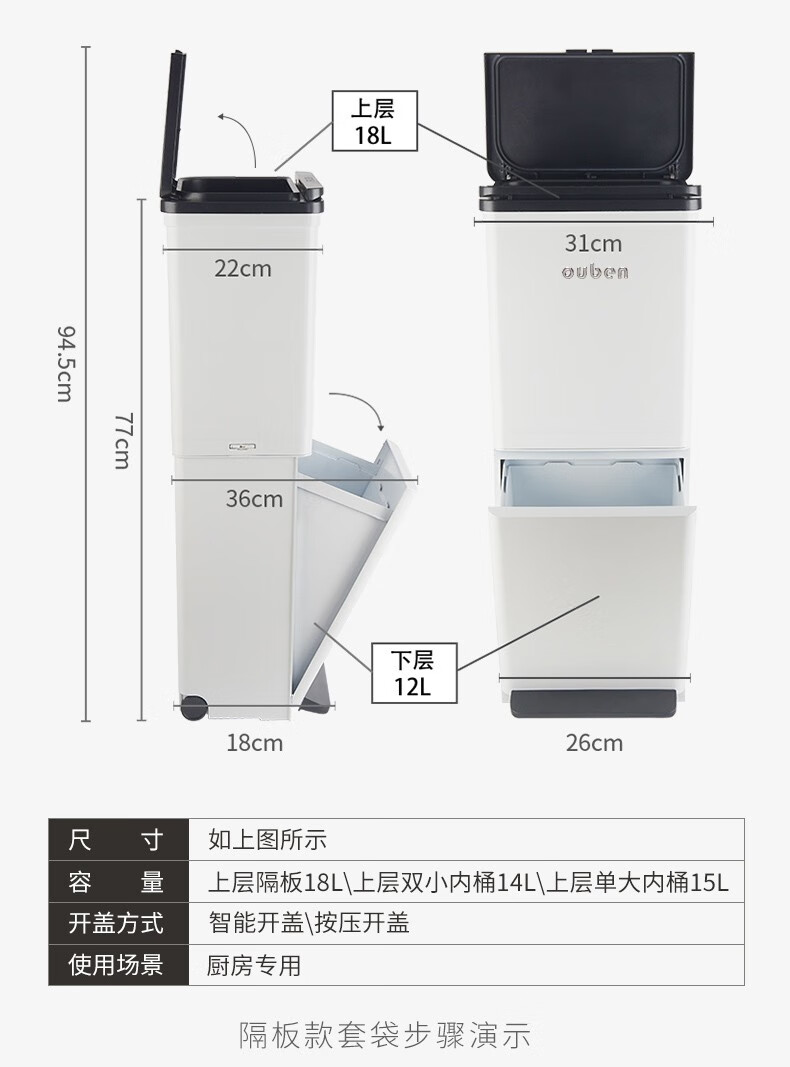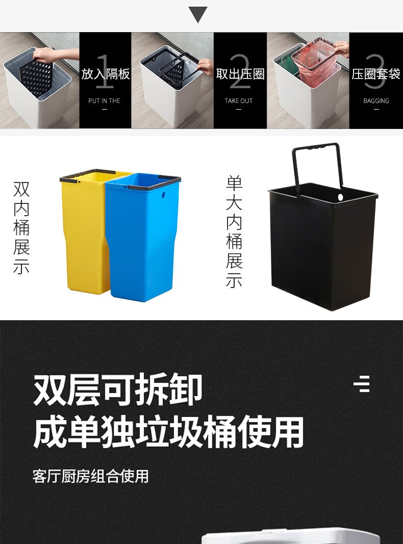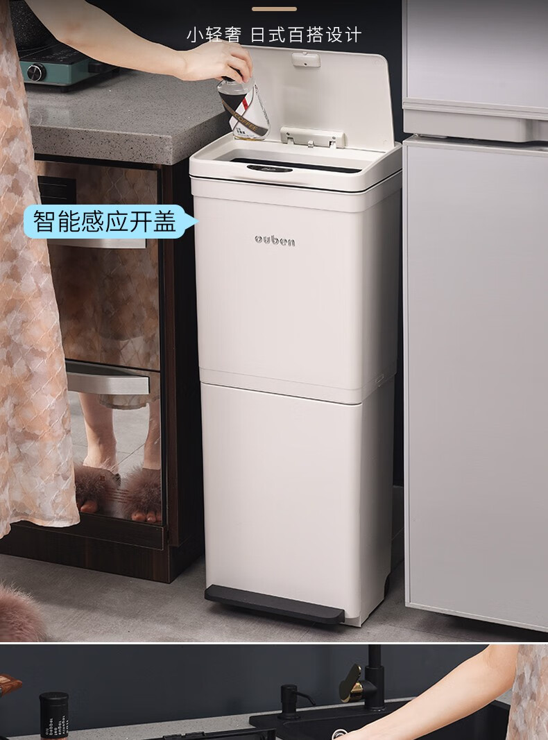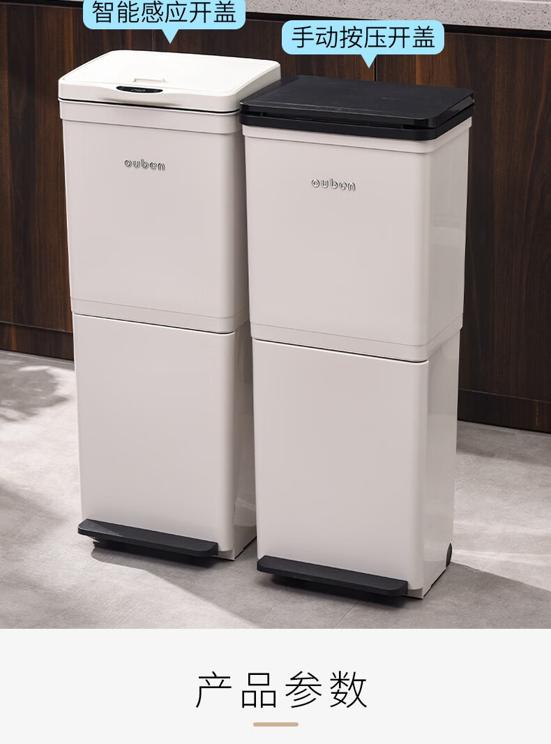 美易天欧本双层垃圾分类垃圾桶家用厨房垃圾桶带盖大号厨余脚踏塑料拉圾 按压式 竖款(带厨余小内筒) 42L