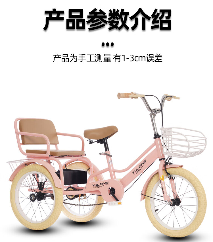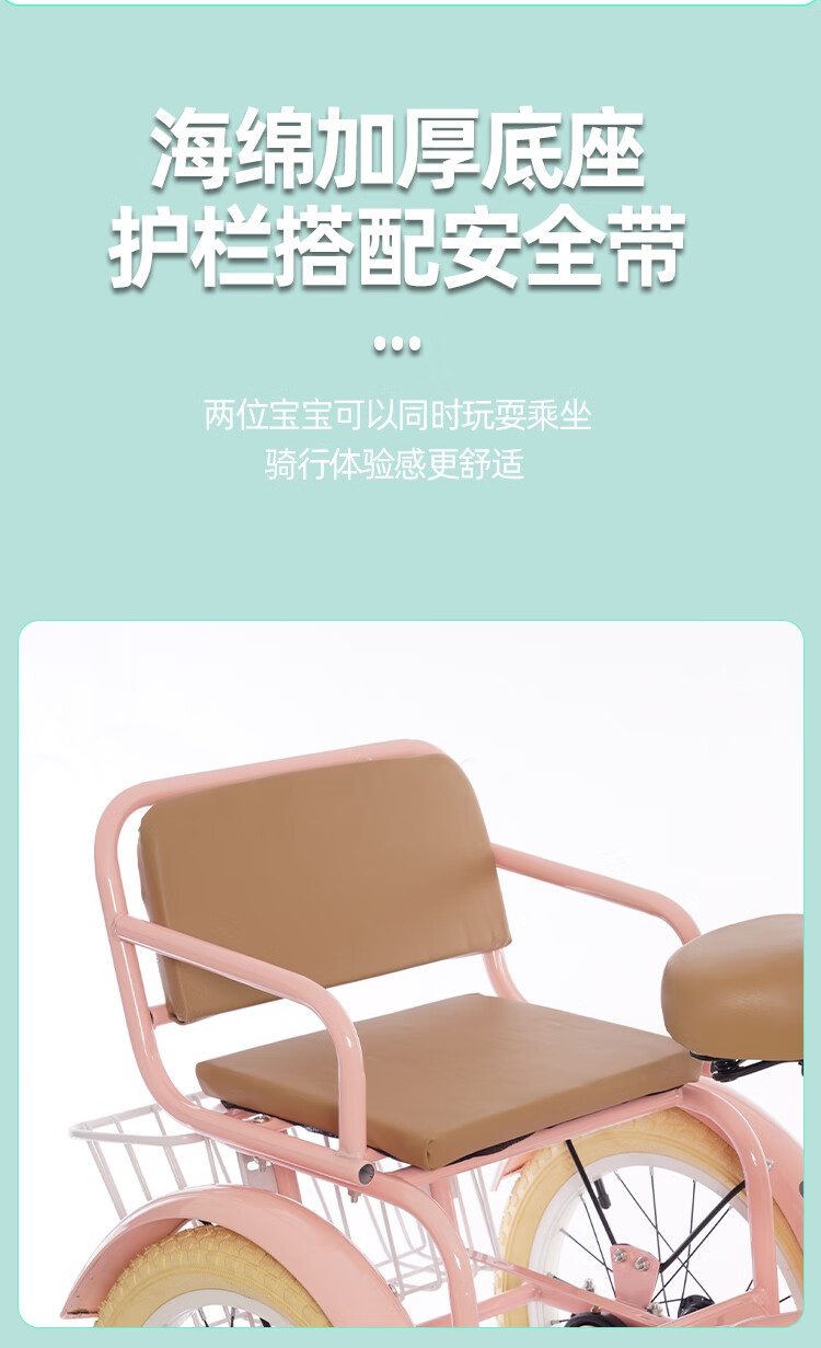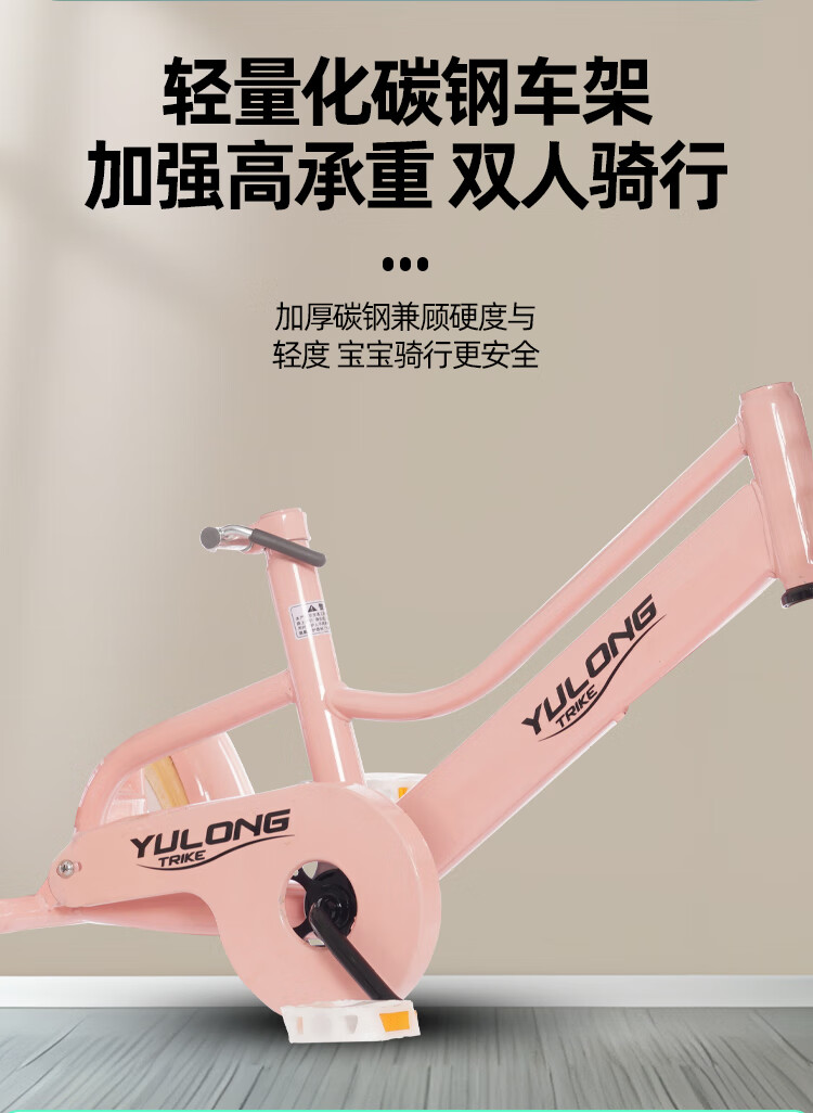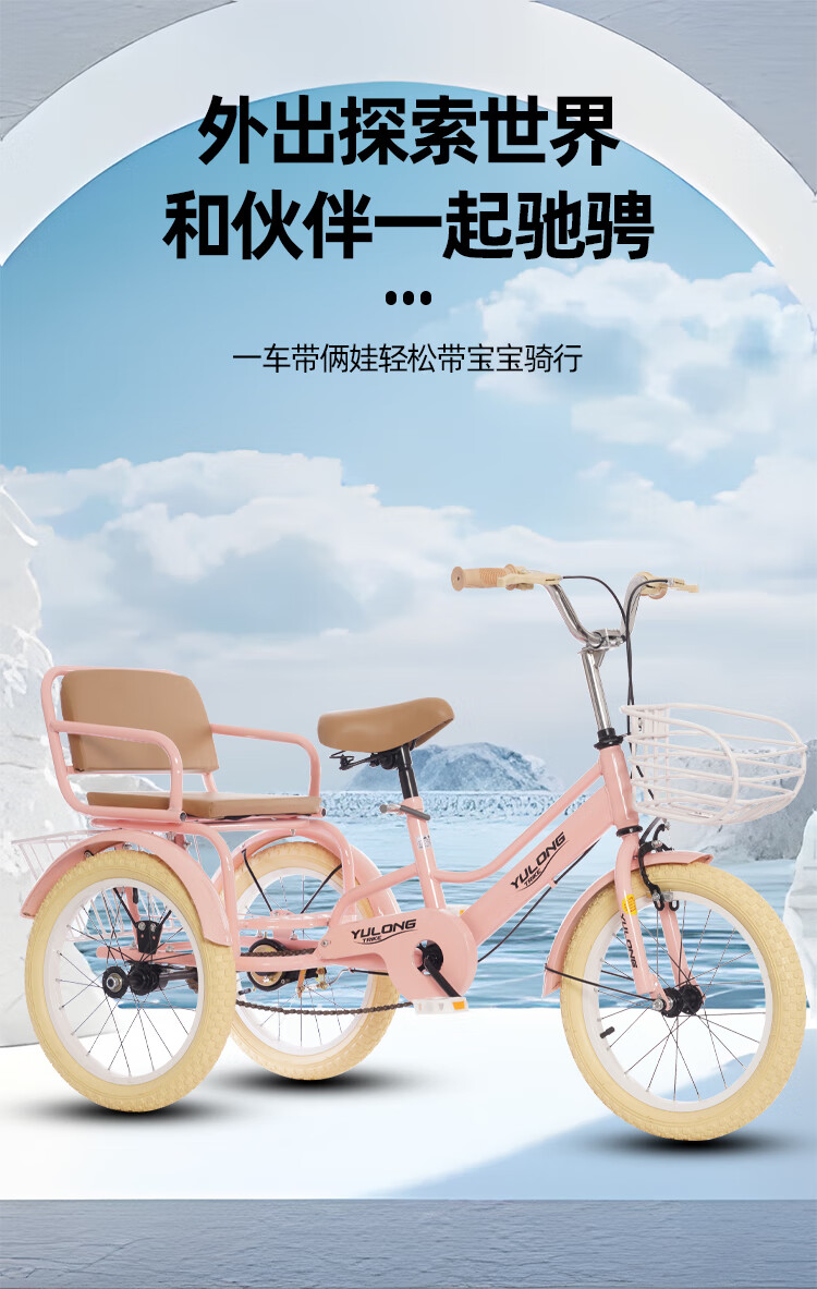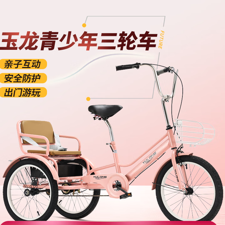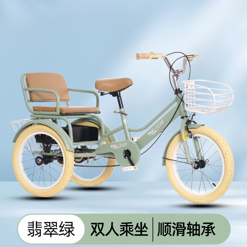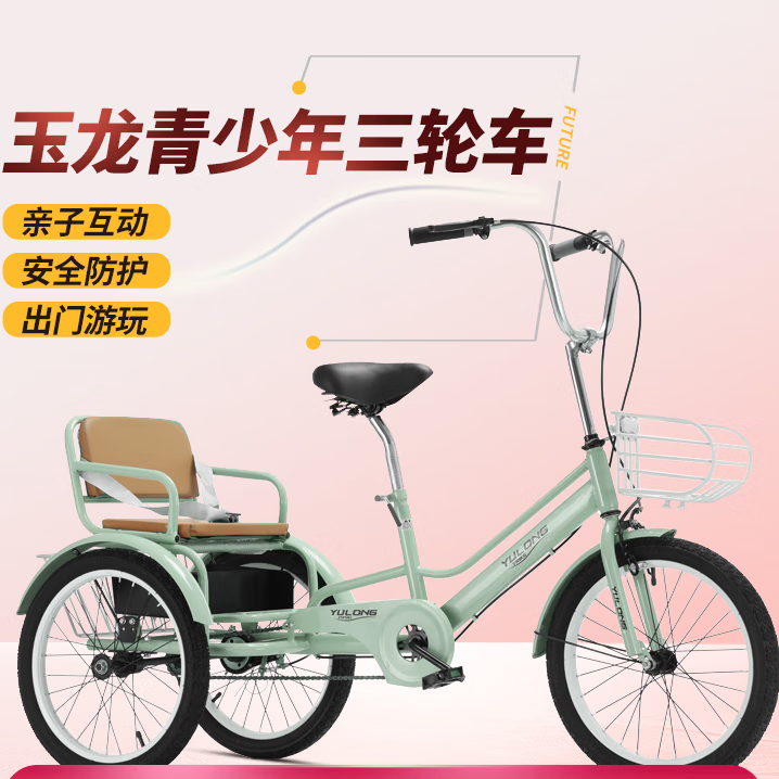 玉龙儿童三轮车亲子车3-11岁踏步车双人骑行安全双刹便载人自行车 浅绿色 单速 青少年18(150-165)