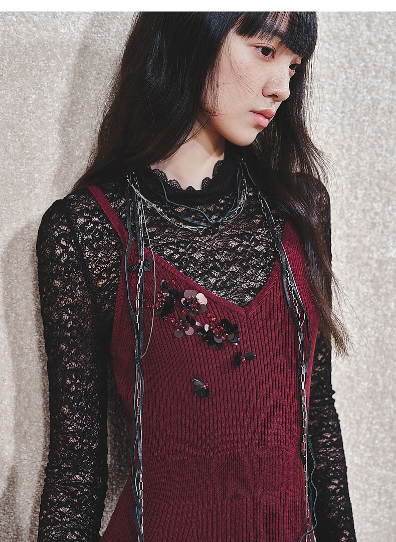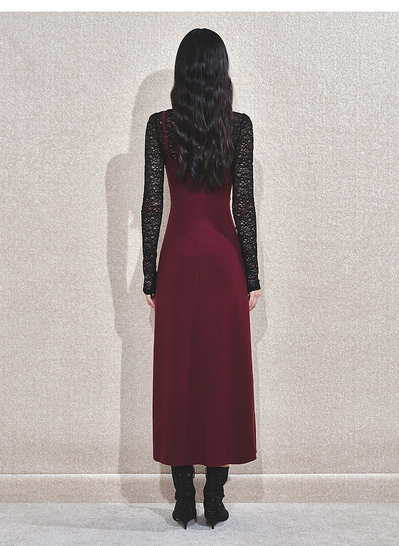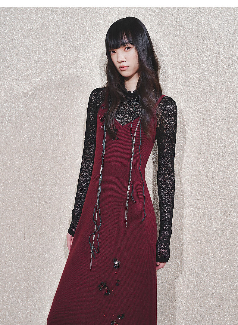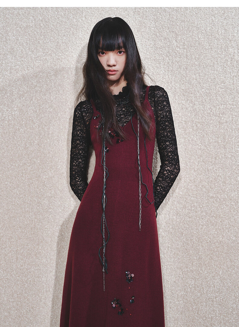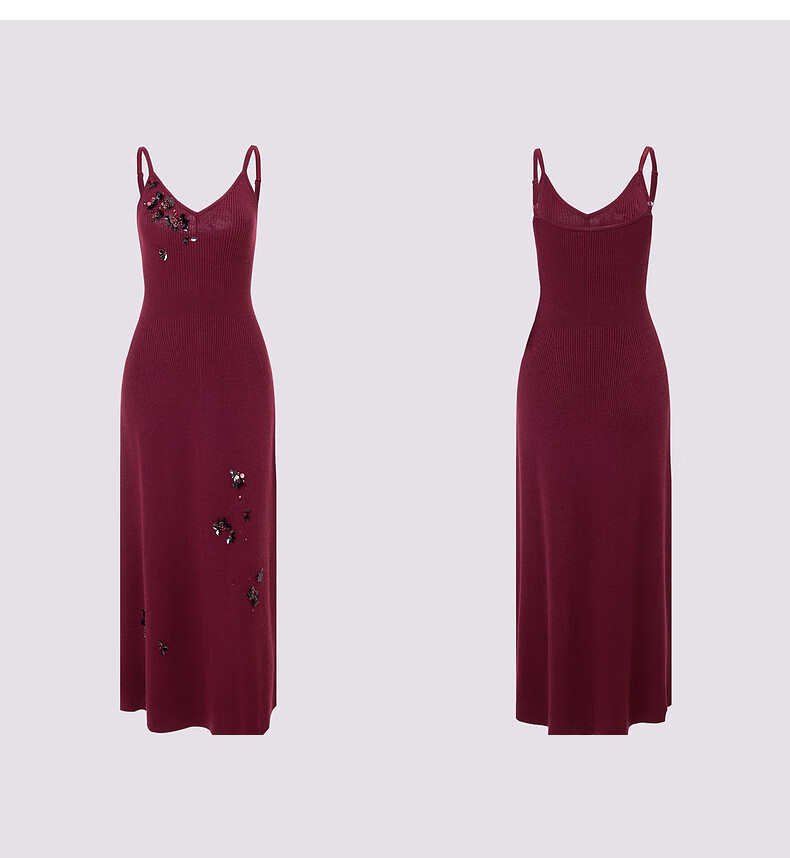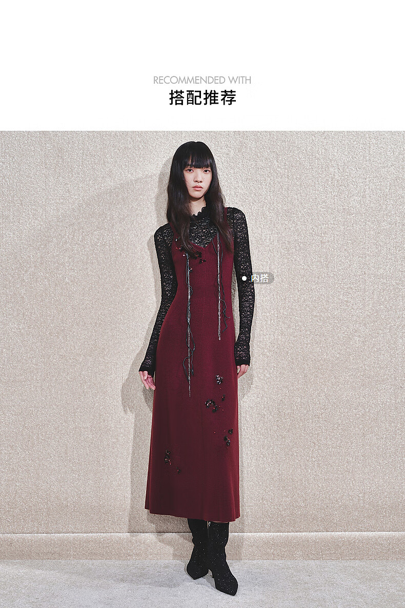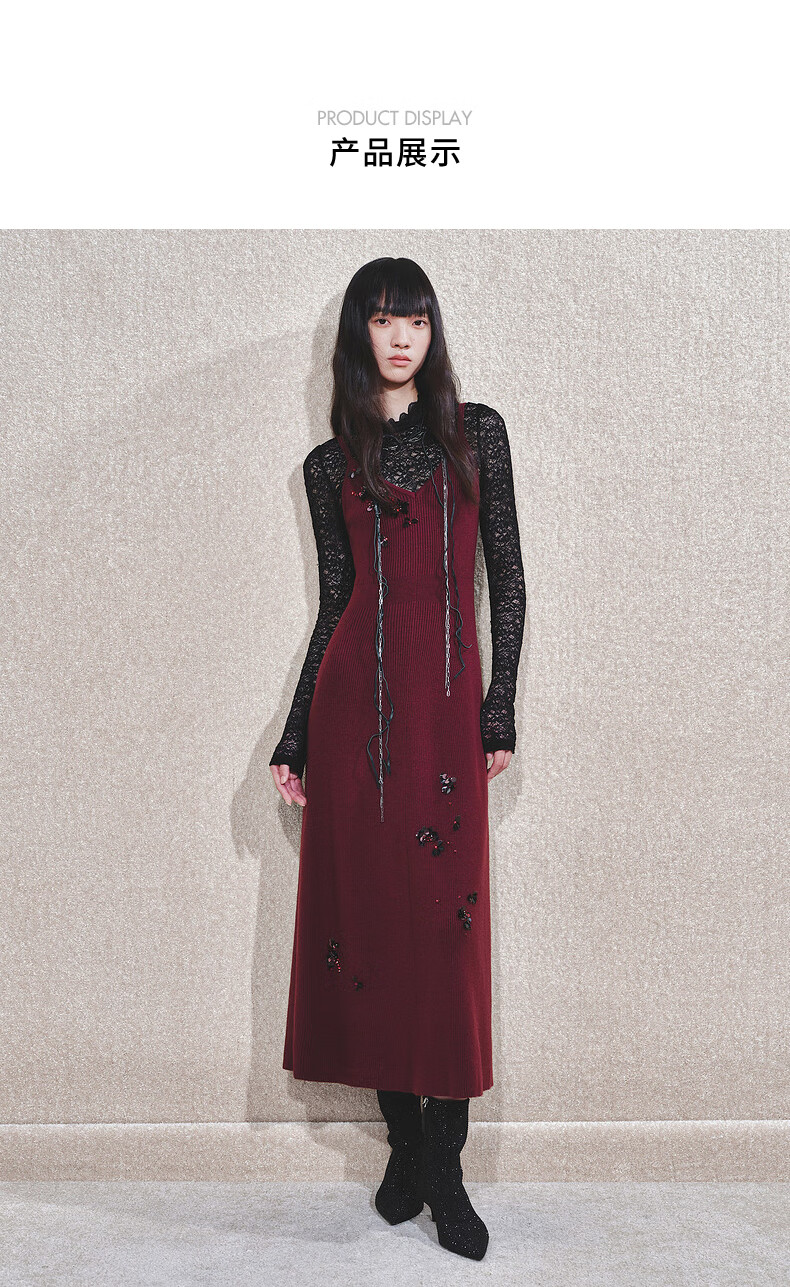 MAXRIENY【商场同款-节庆穿搭】骐骥红复古安哥拉红针织吊带连衣裙 暗红 L