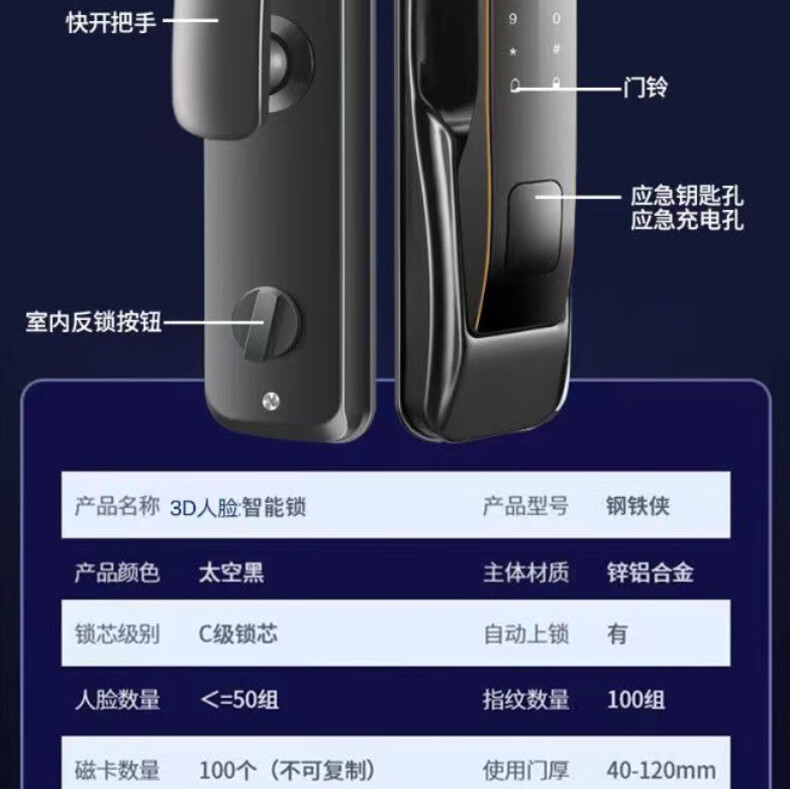耐久人脸识别可对讲智能锁入户门密码锁一体指纹锁电子锁商用防盗 GTX基础