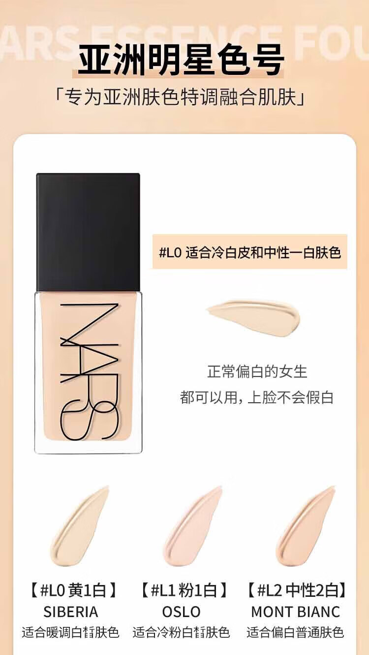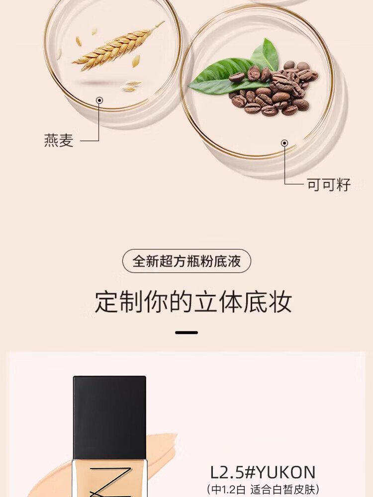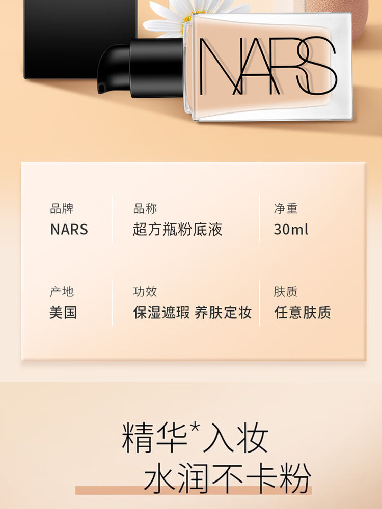NARS纳斯/娜斯超方瓶肌粉底液L2.5 30ml持妆不卡粉润贴生日新年礼物女