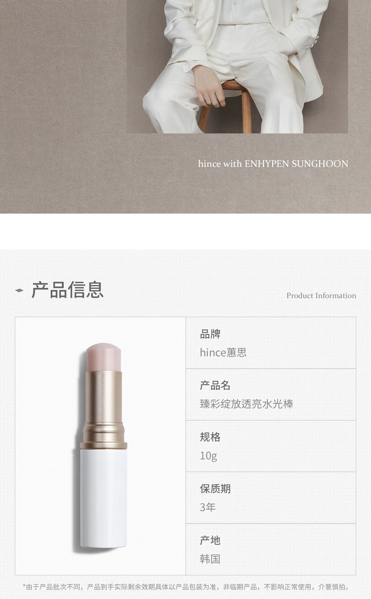 Hince水光棒臻彩绽放透亮高光棒韩国自然提亮脸部修容腮红正品LT001