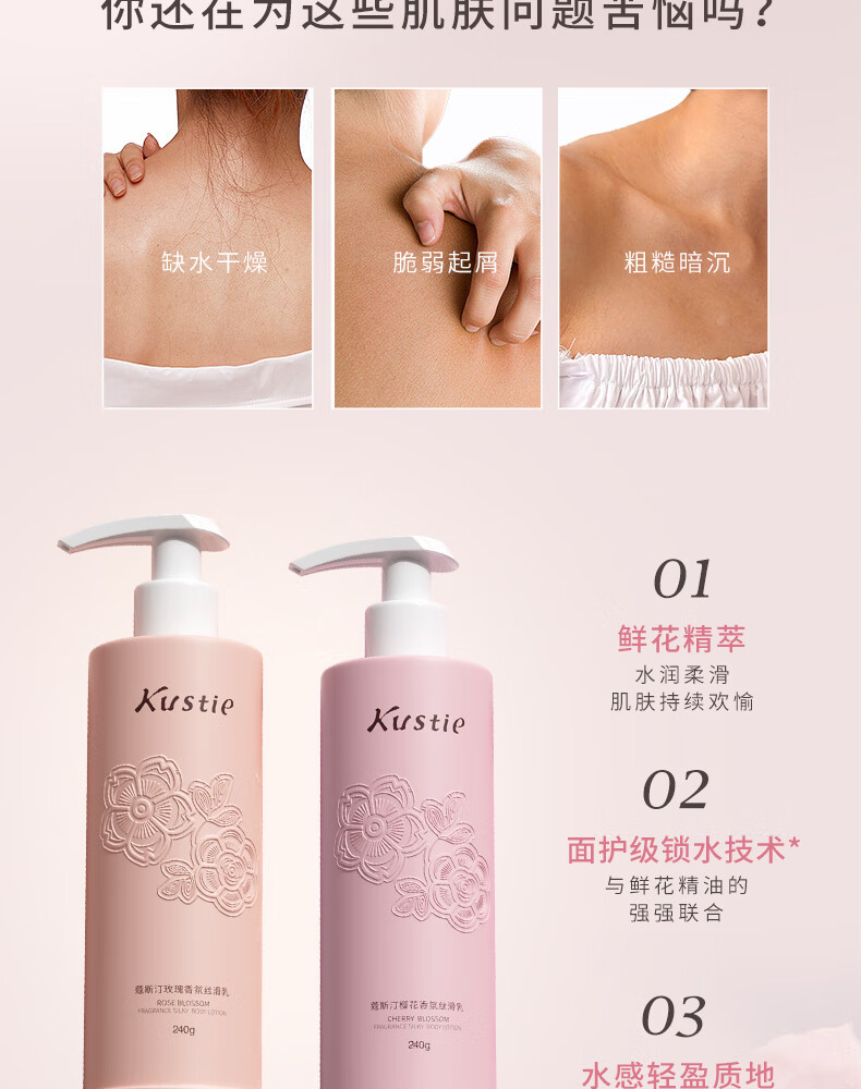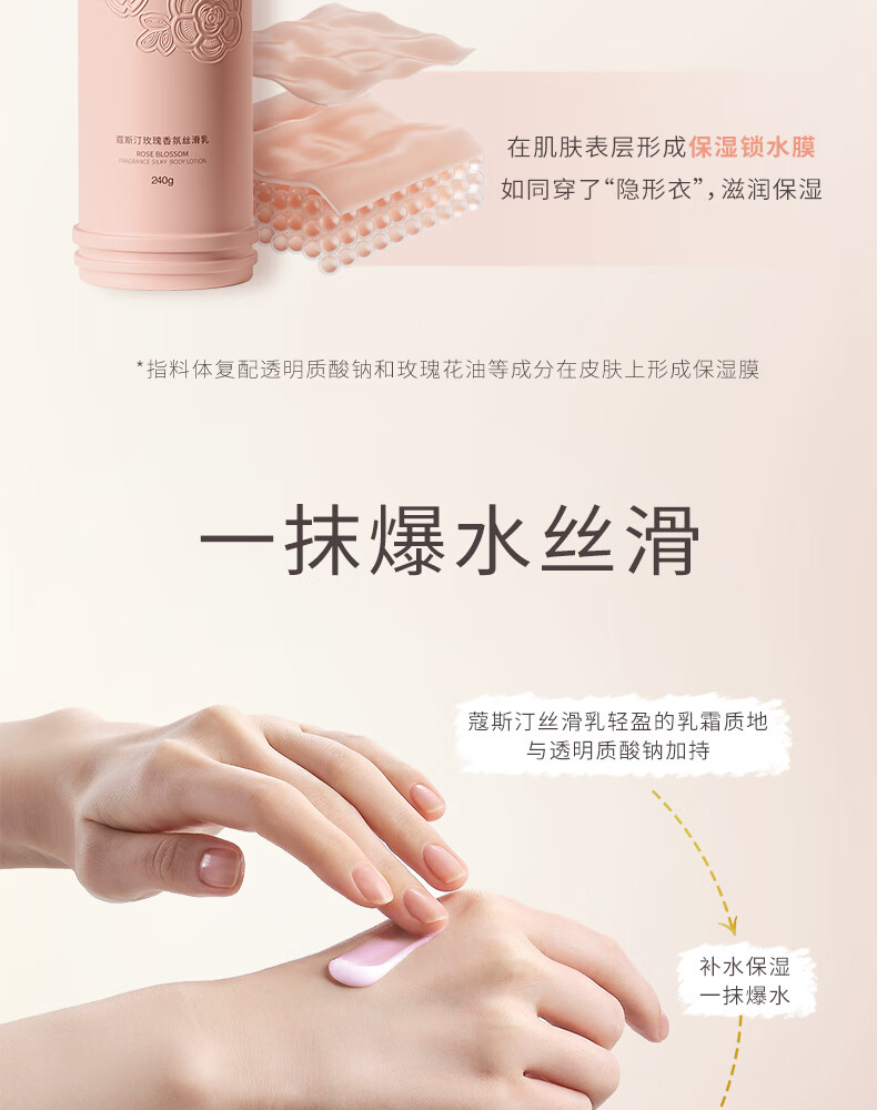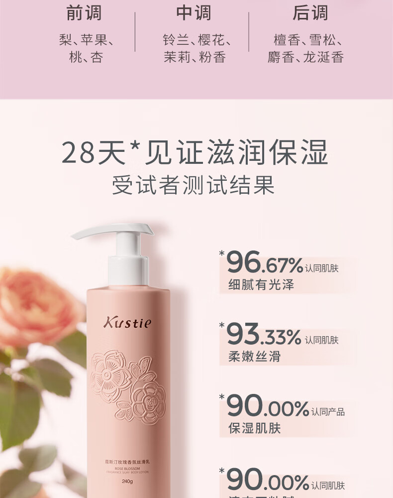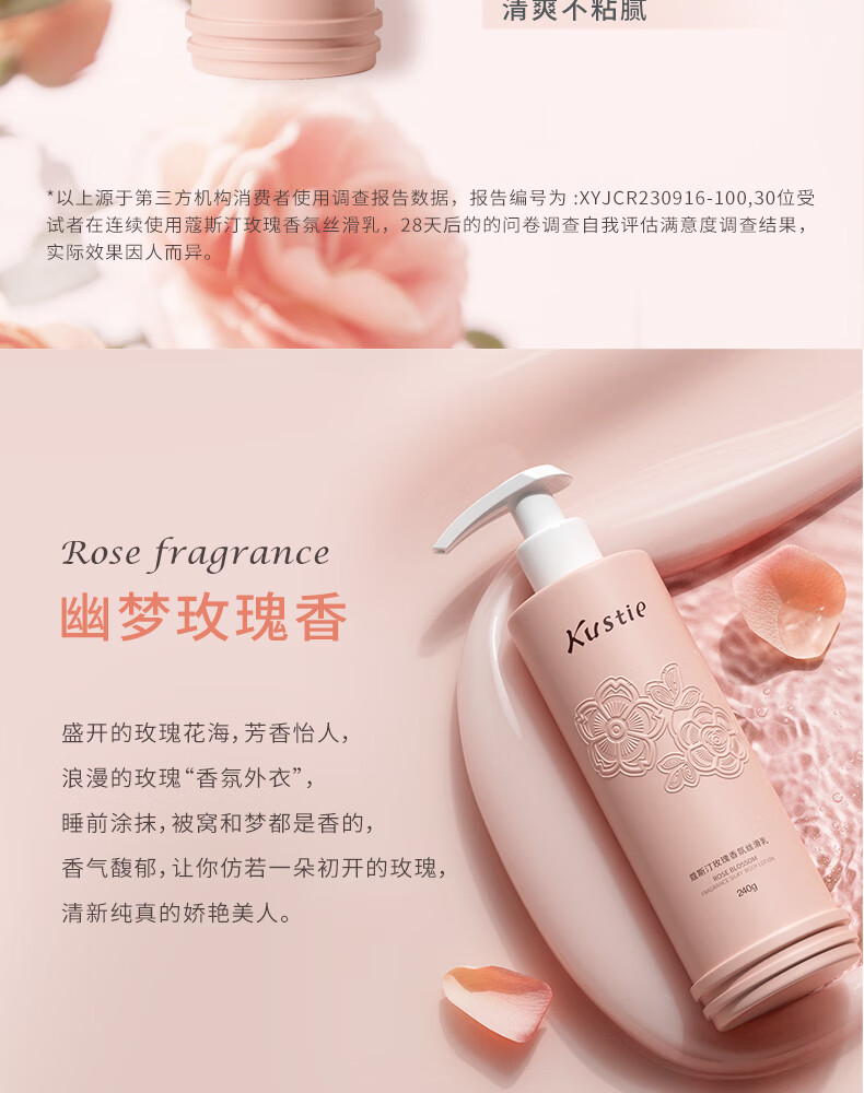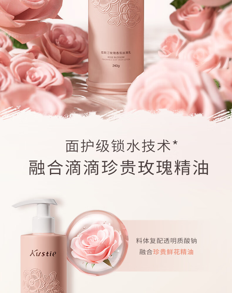 蔻斯汀(Kustie)玫瑰身体乳240g保湿不油腻滋润留香润肤乳女补水四季通用润肤露