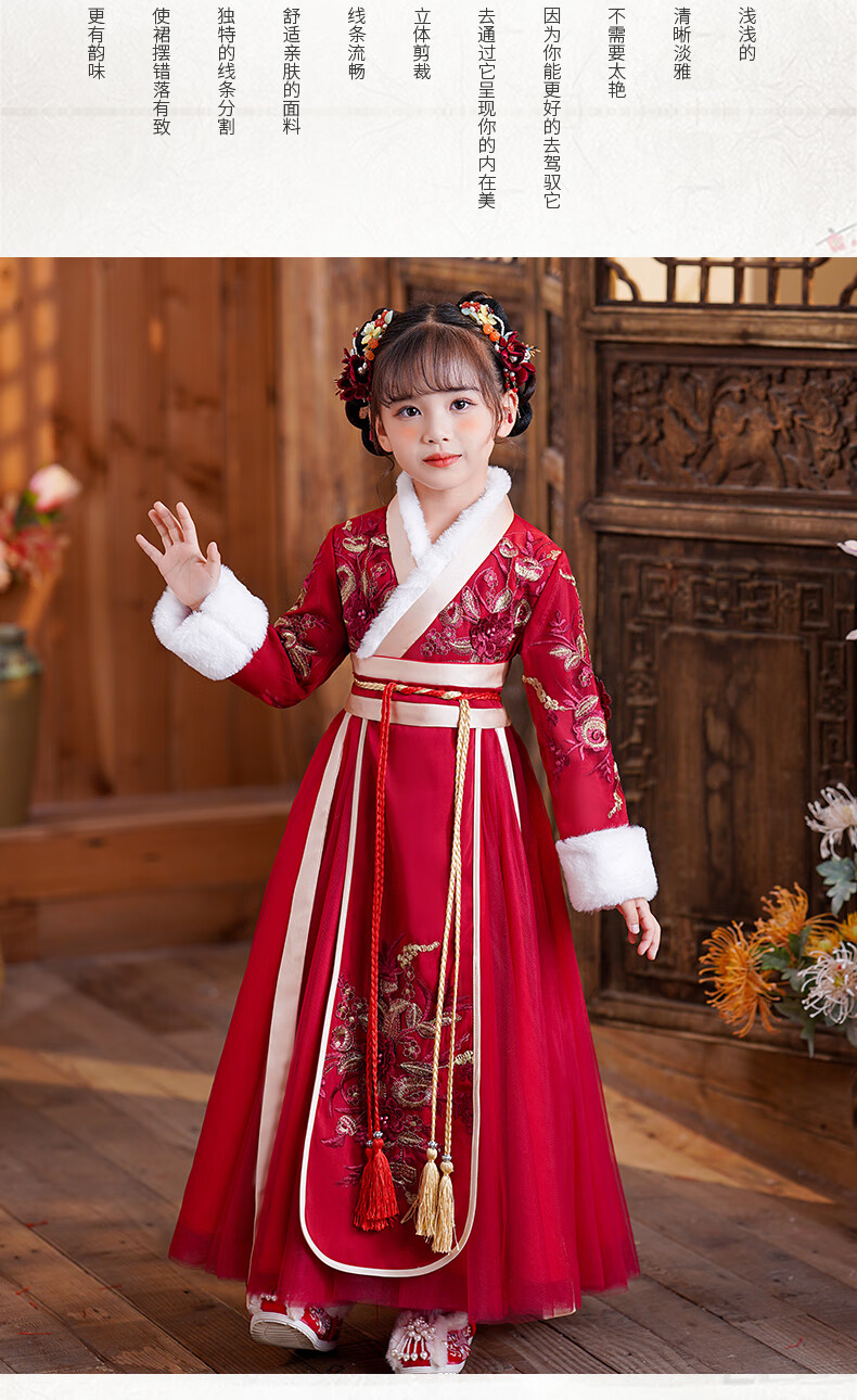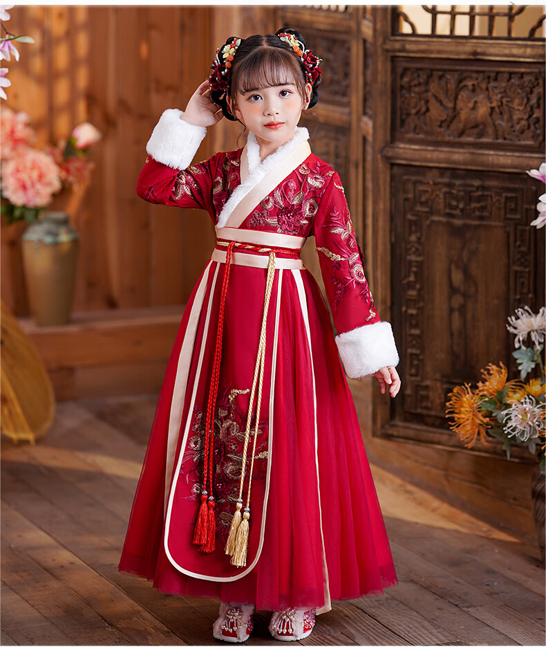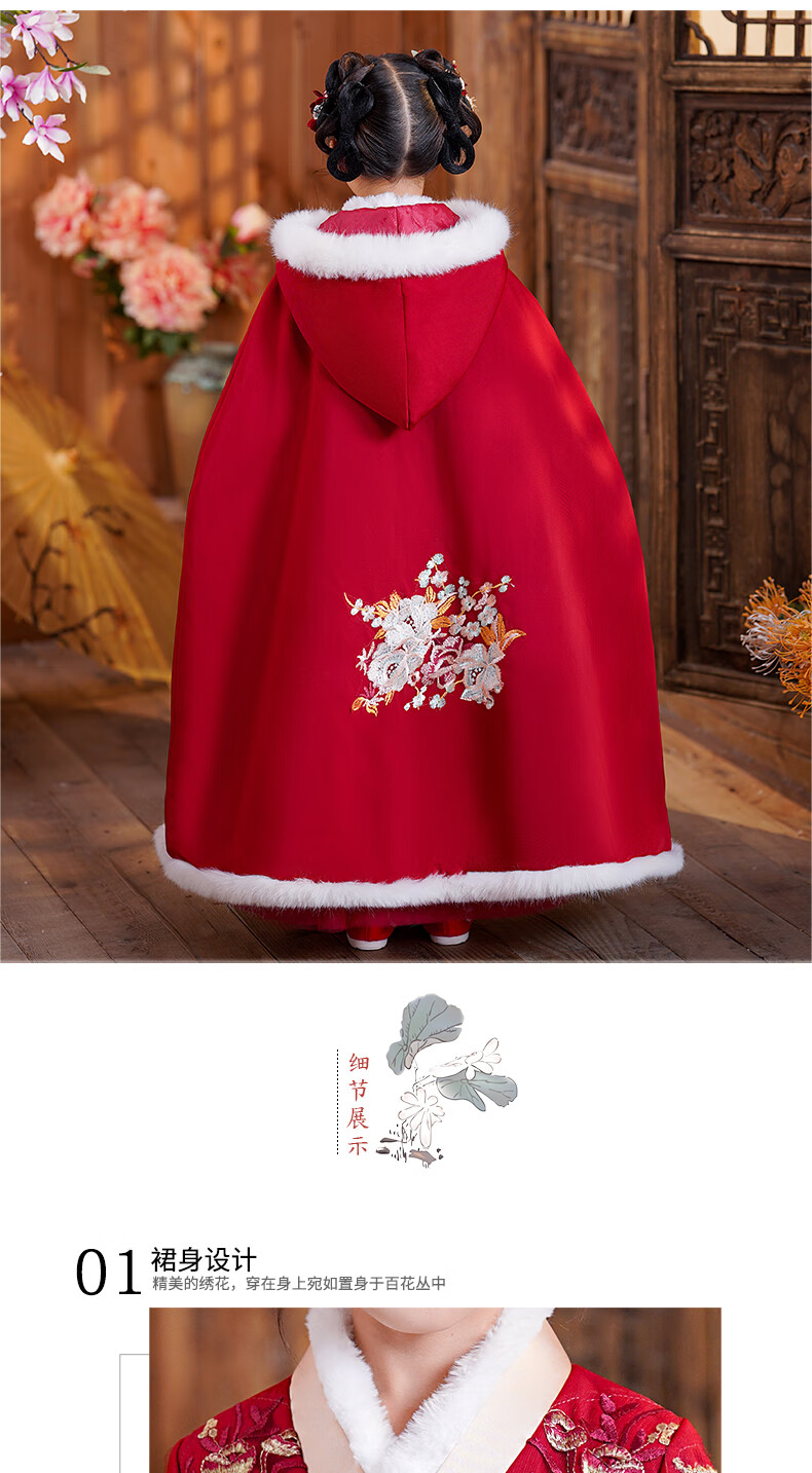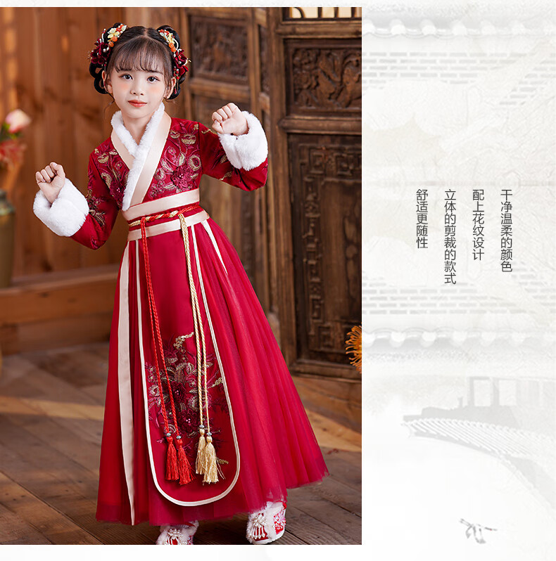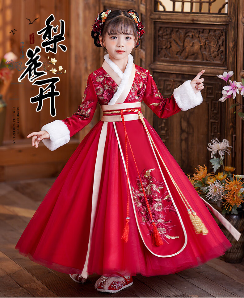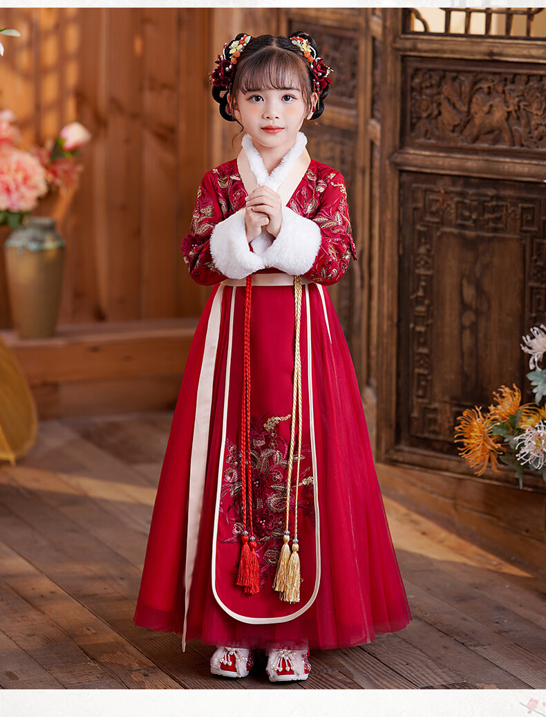 小猪班纳(PEPCO)汉服女童冬款新年儿童古装冬装过年冬季唐装国风拜年服 裙子 120