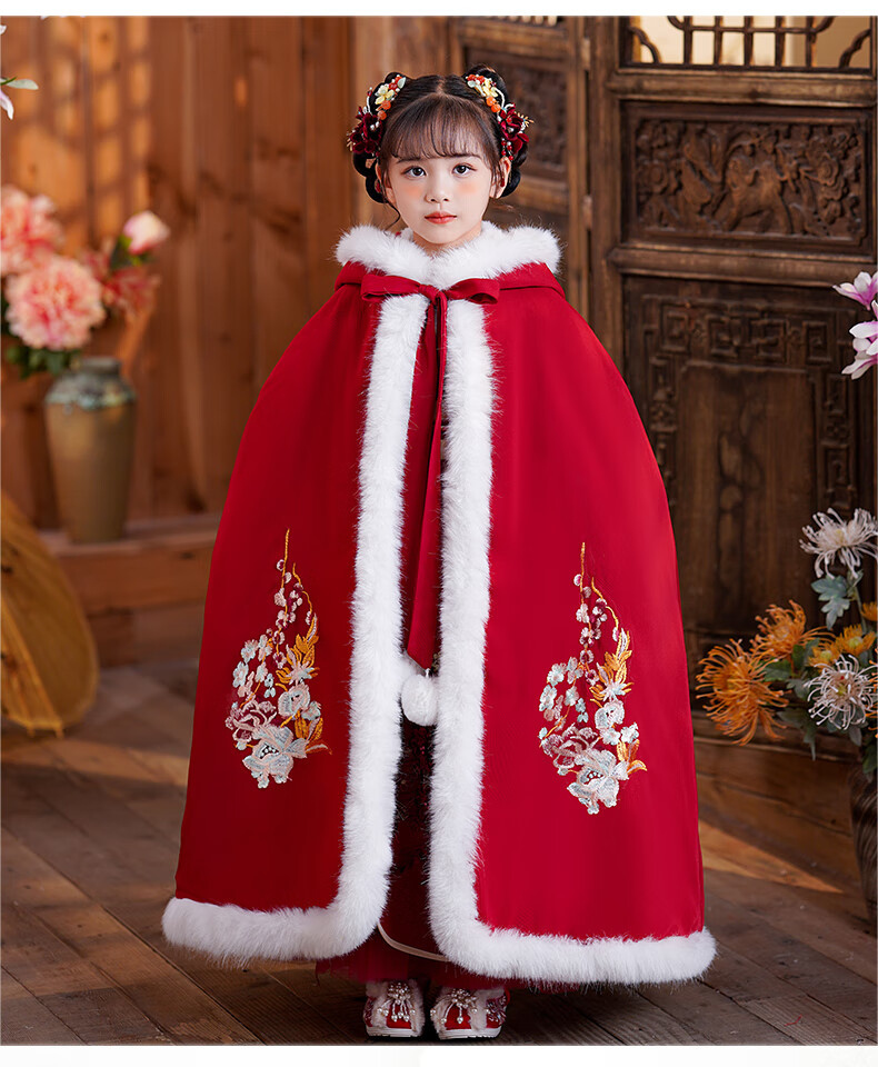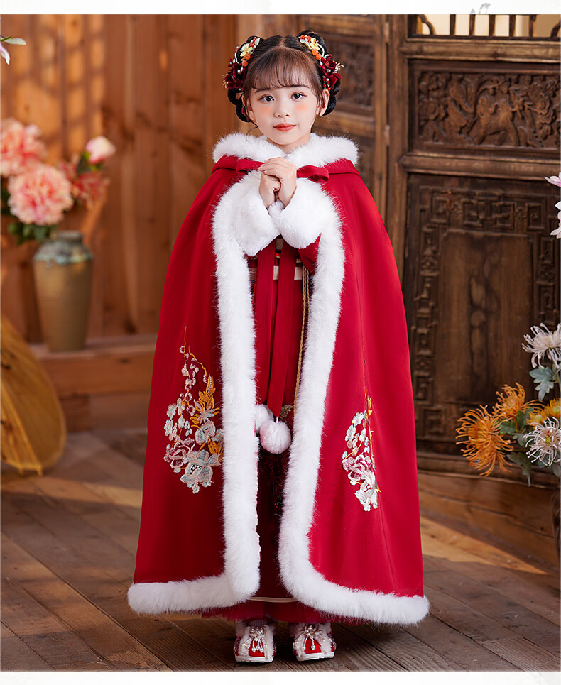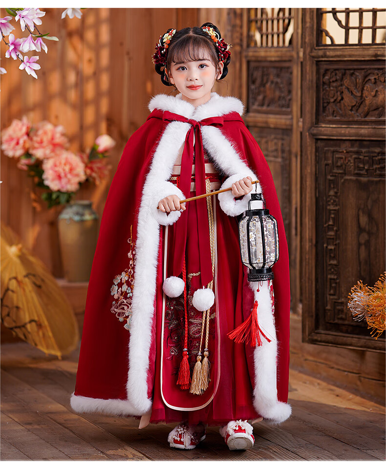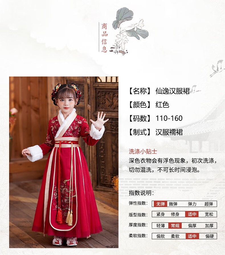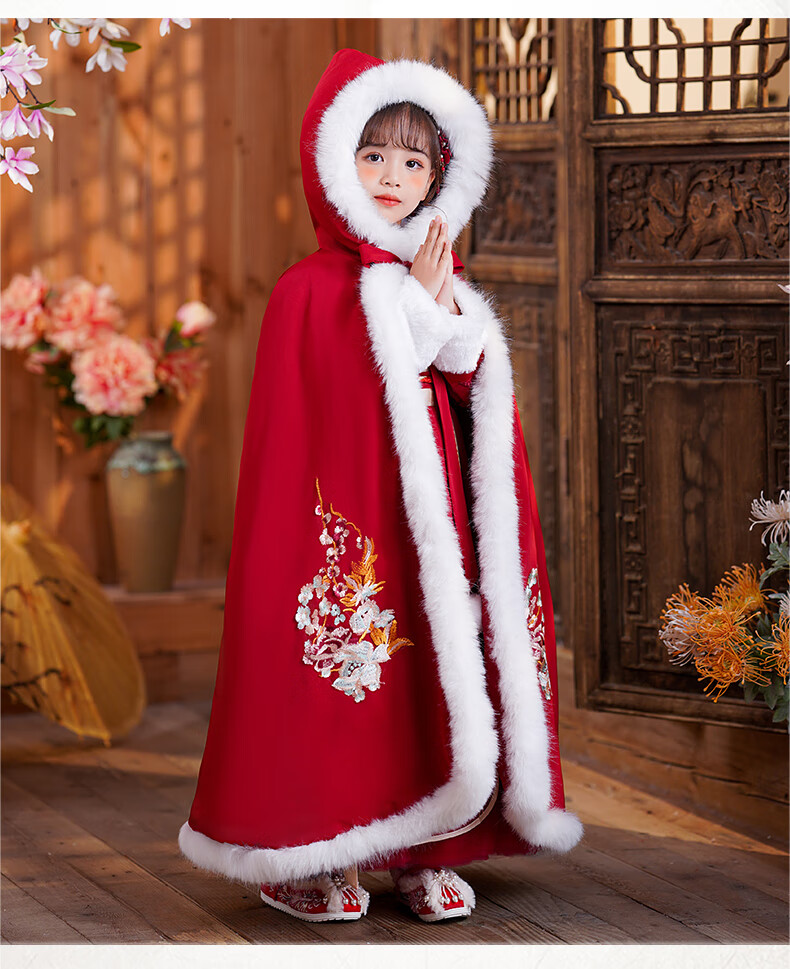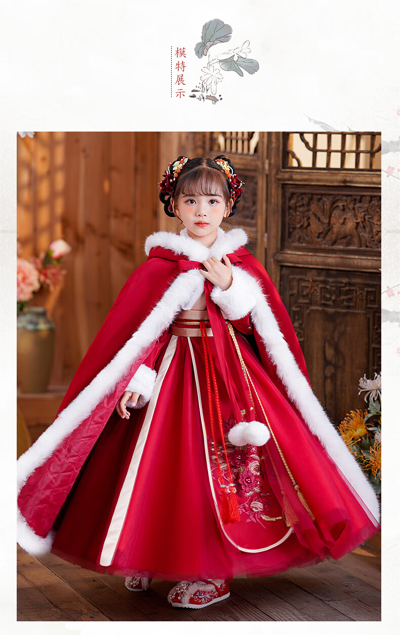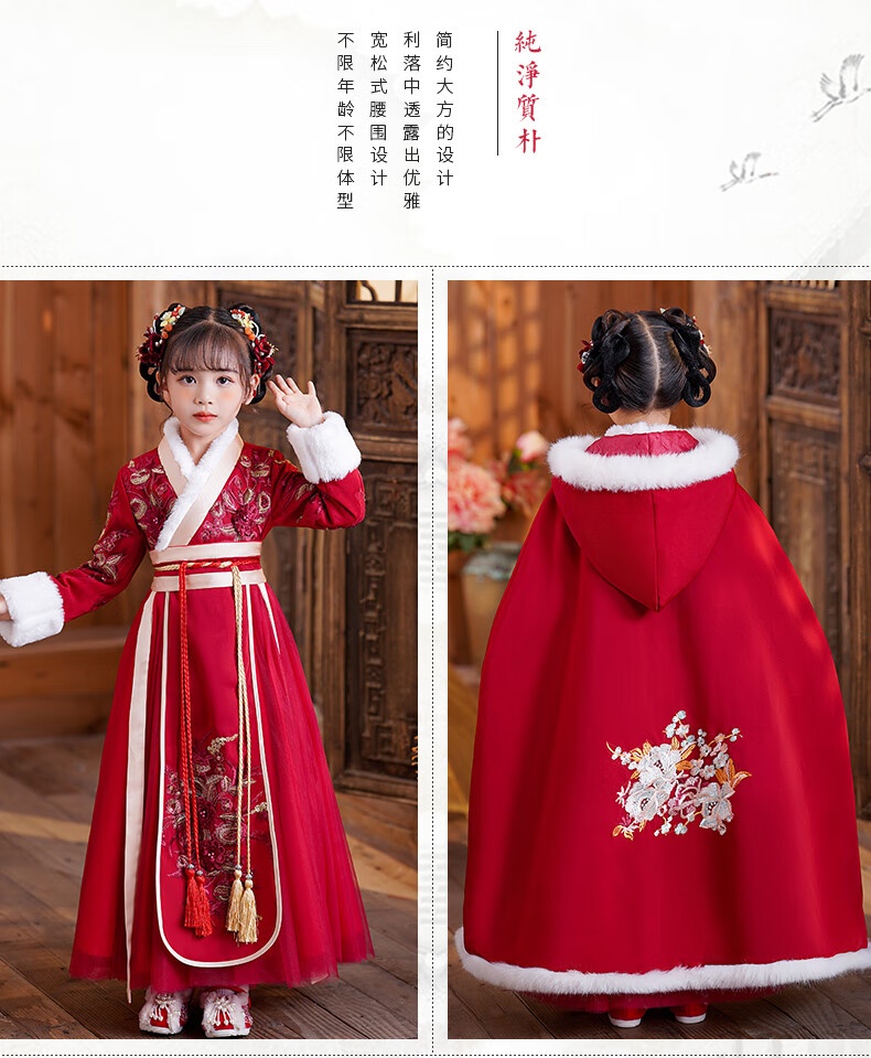 小猪班纳(PEPCO)汉服女童冬款新年儿童古装冬装过年冬季唐装国风拜年服 裙子 120