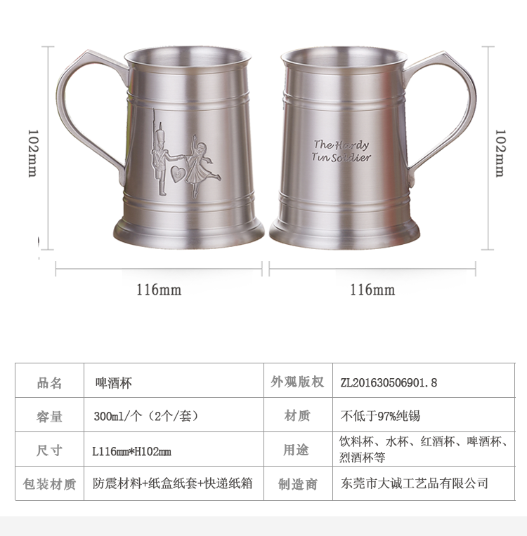 DCH.PT 情侣一对锡杯送男女朋友杯子照片锡婚实用生日礼品520情人节 一鹿有你锡杯一对装