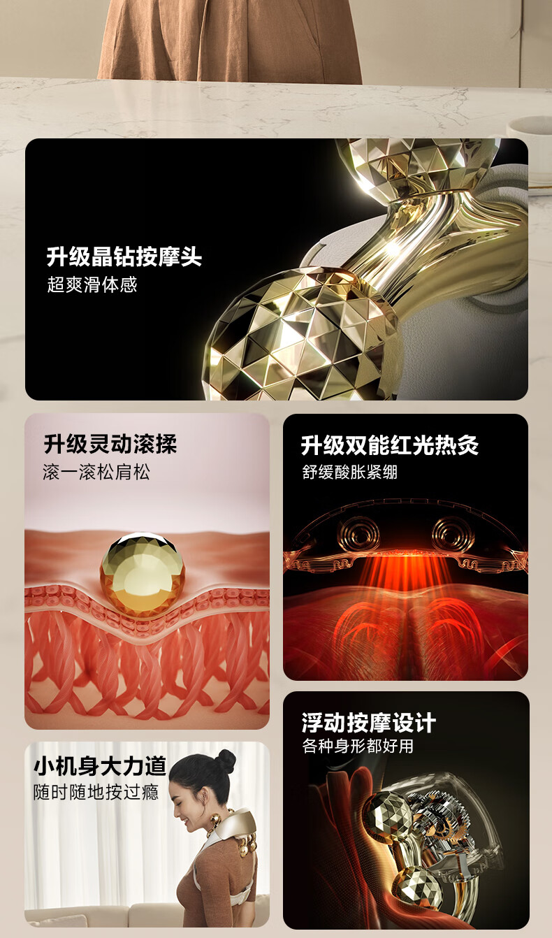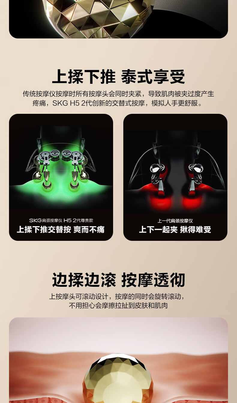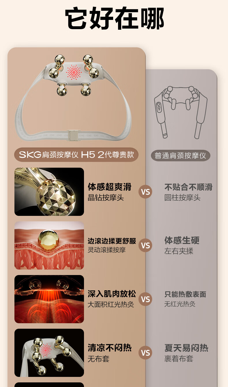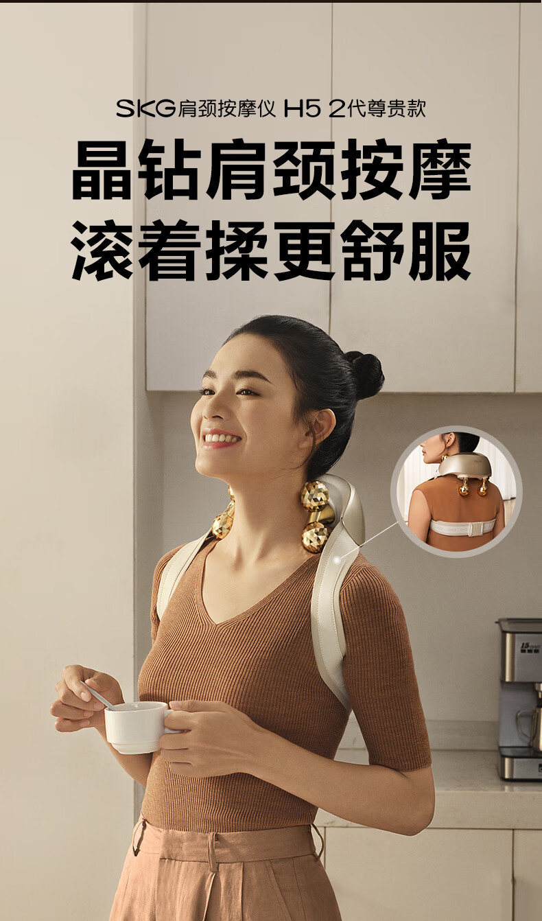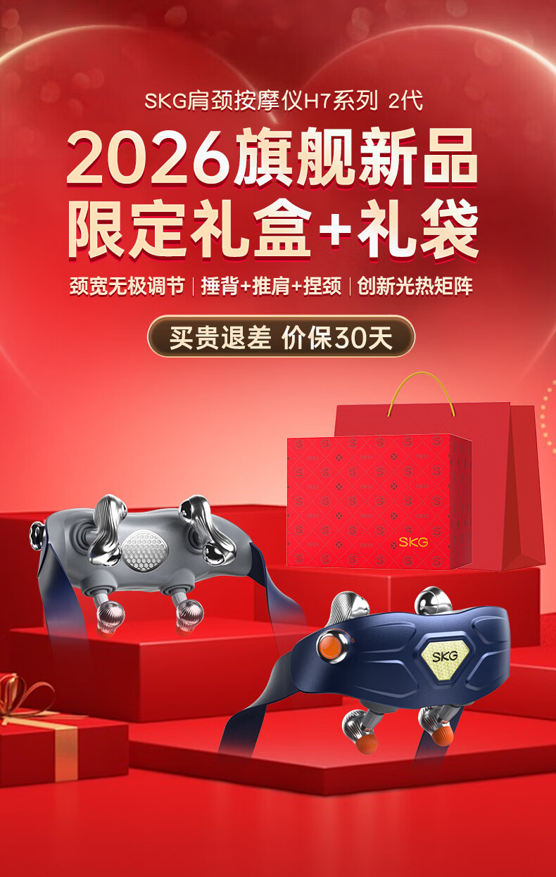 SKG颈椎按摩器旗舰高配物理揉捏热敷脖子肩颈一体披肩护颈仪高档生日礼品年货节新年礼物送男女友老婆 王一博同款-晶钻H5 2代尊贵款【红色礼盒包装】