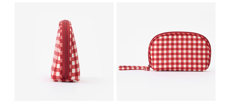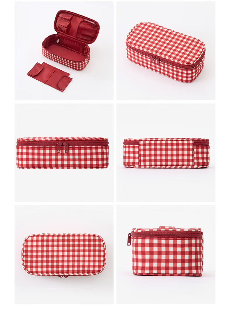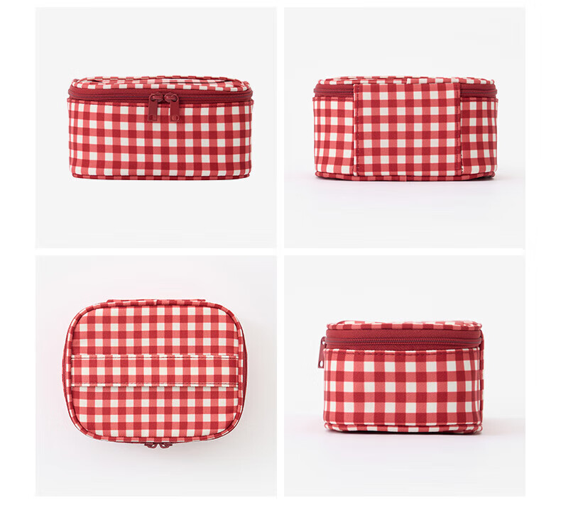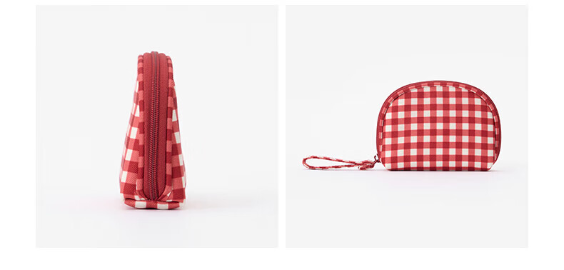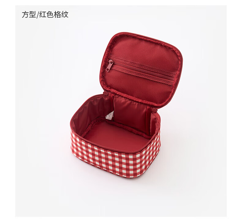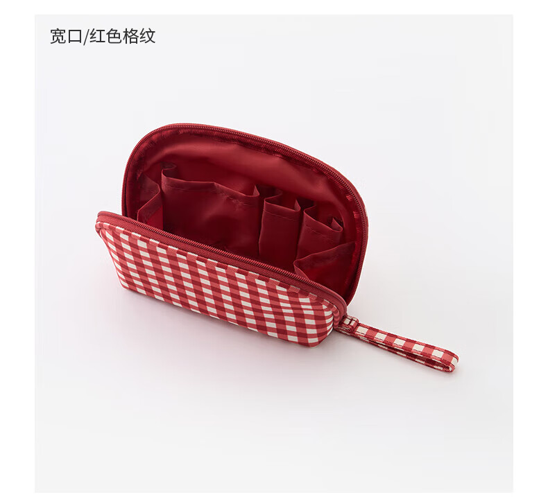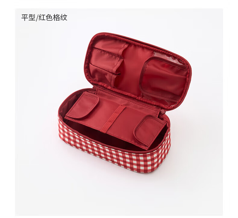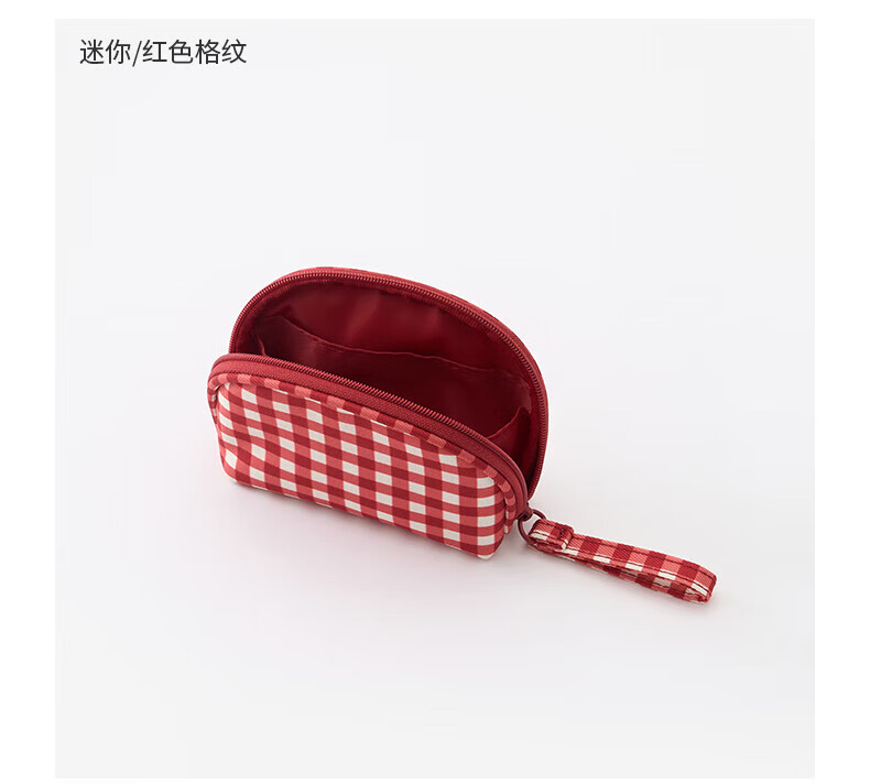 MUJI再生聚酯纤维化妆包 旅行收纳 新品 迷你 红色格纹