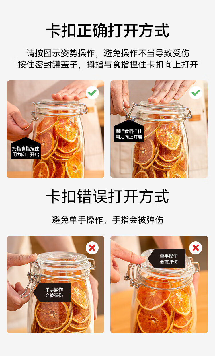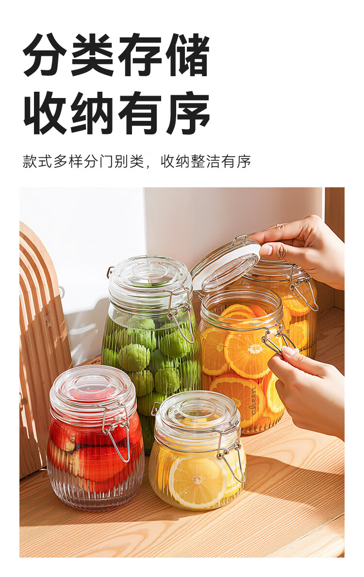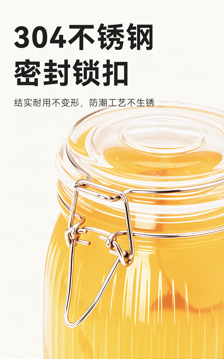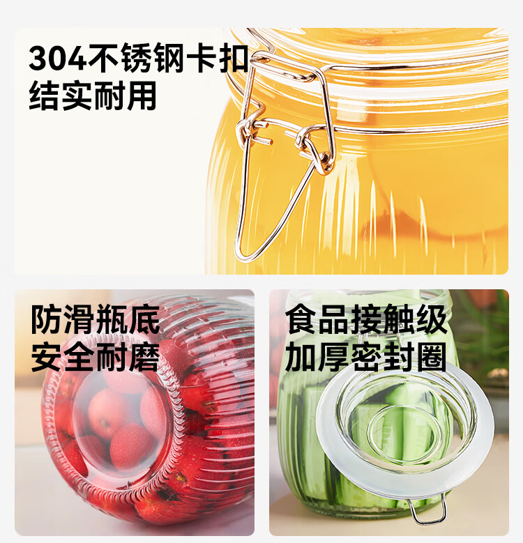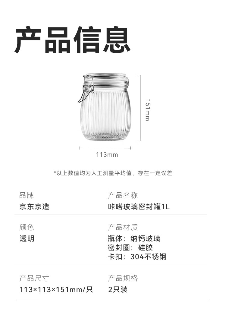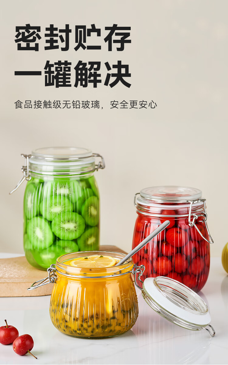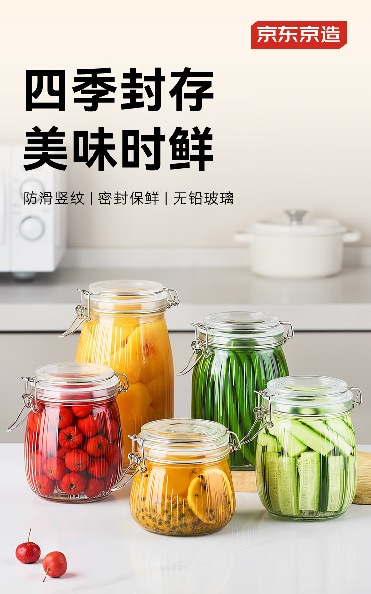 京东京造咔嗒玻璃密封罐储物罐家用玻璃瓶泡酒瓶泡菜瓶 1L 2只装