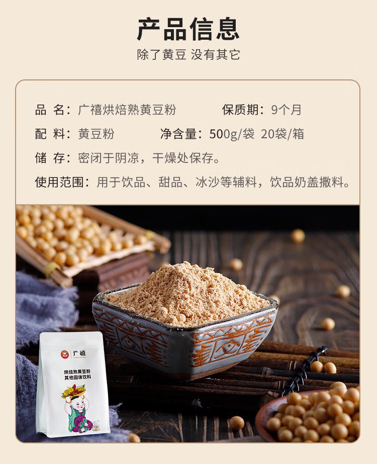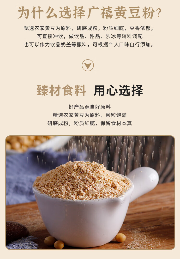 广禧优品烘焙熟黄豆粉500g 豆乳盒子即食豆面驴打滚糍粑家用烘焙面粉