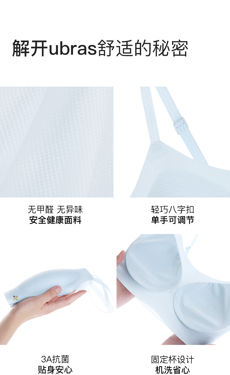 ubras无尺码软糯华夫格女士内衣女文胸罩 背心-薄荷奶糖