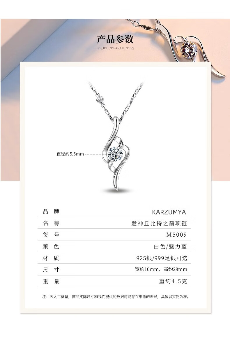 KARZUMYA丘比特项链女款999足银吊坠配饰夏季高级感情人节礼物送女友实用 丘比特项链