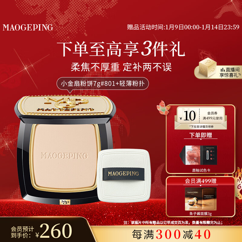 毛戈平光感柔纱凝颜小金扇粉饼801白皙色7g粉饼定妆补妆修容新年礼物女