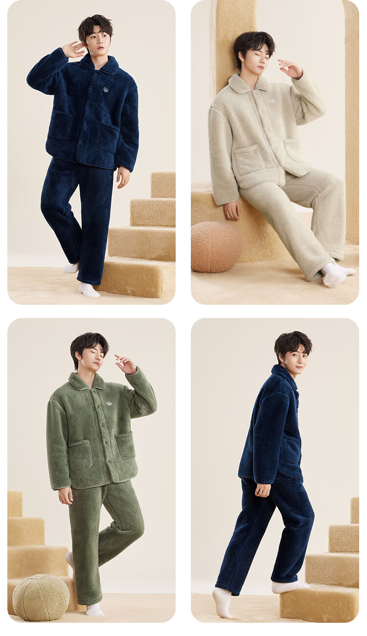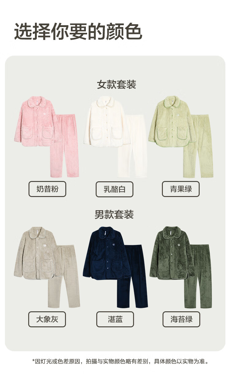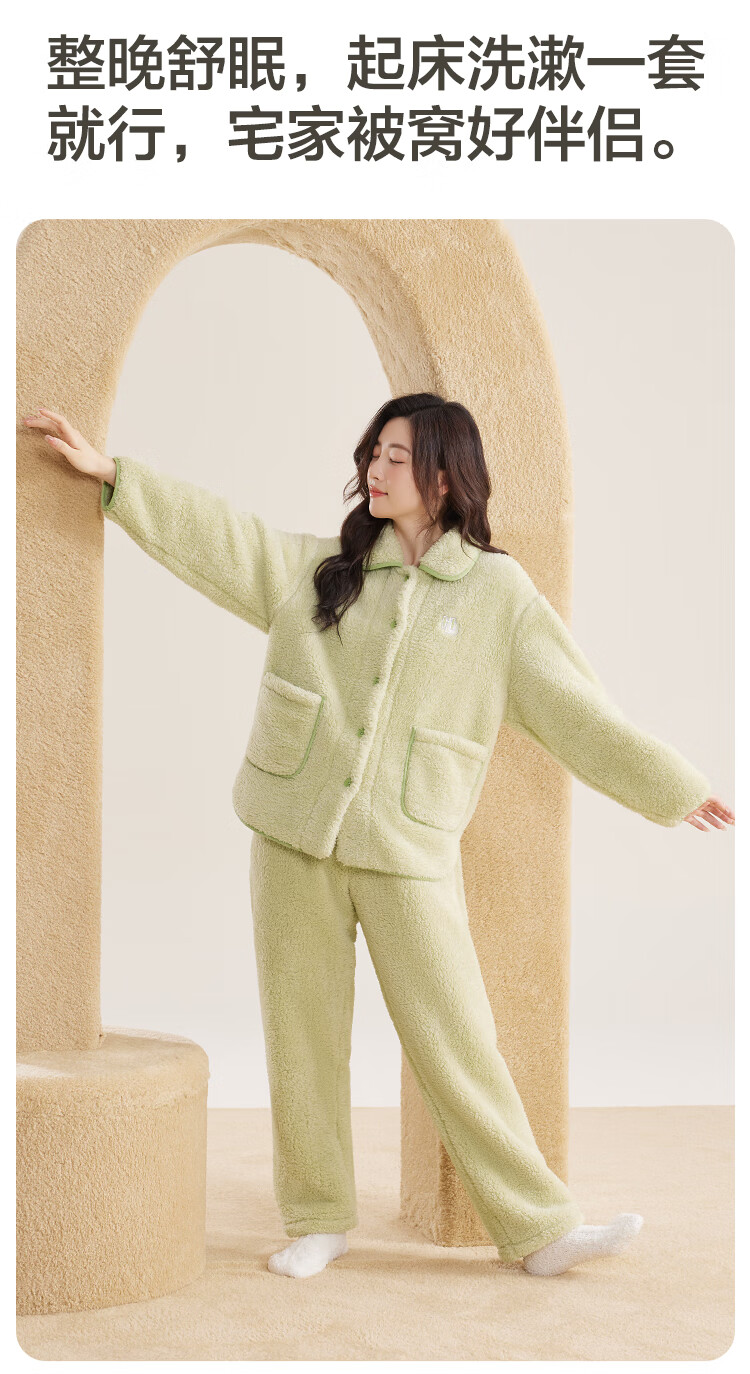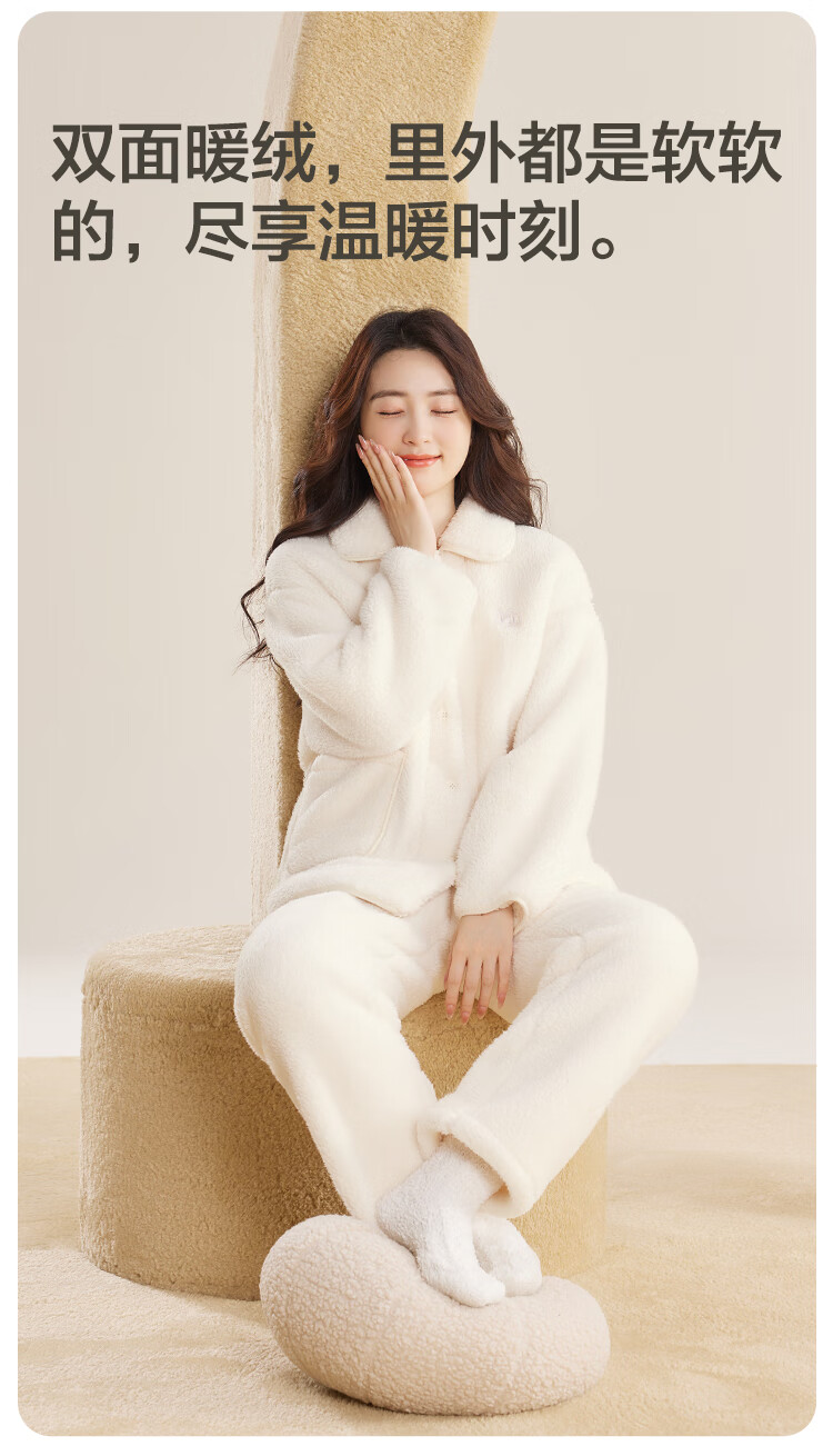 红豆居家女士加绒加厚秋冬睡衣女可外穿保暖家居服 奶昔粉 L 170/92A