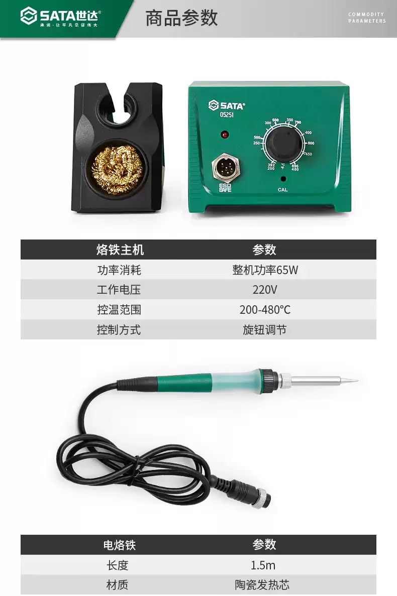 世达世达65W恒温无铅可调焊台200-480快速升温陶瓷内热电烙铁05251 0.6mm500g一卷友邦焊锡丝
