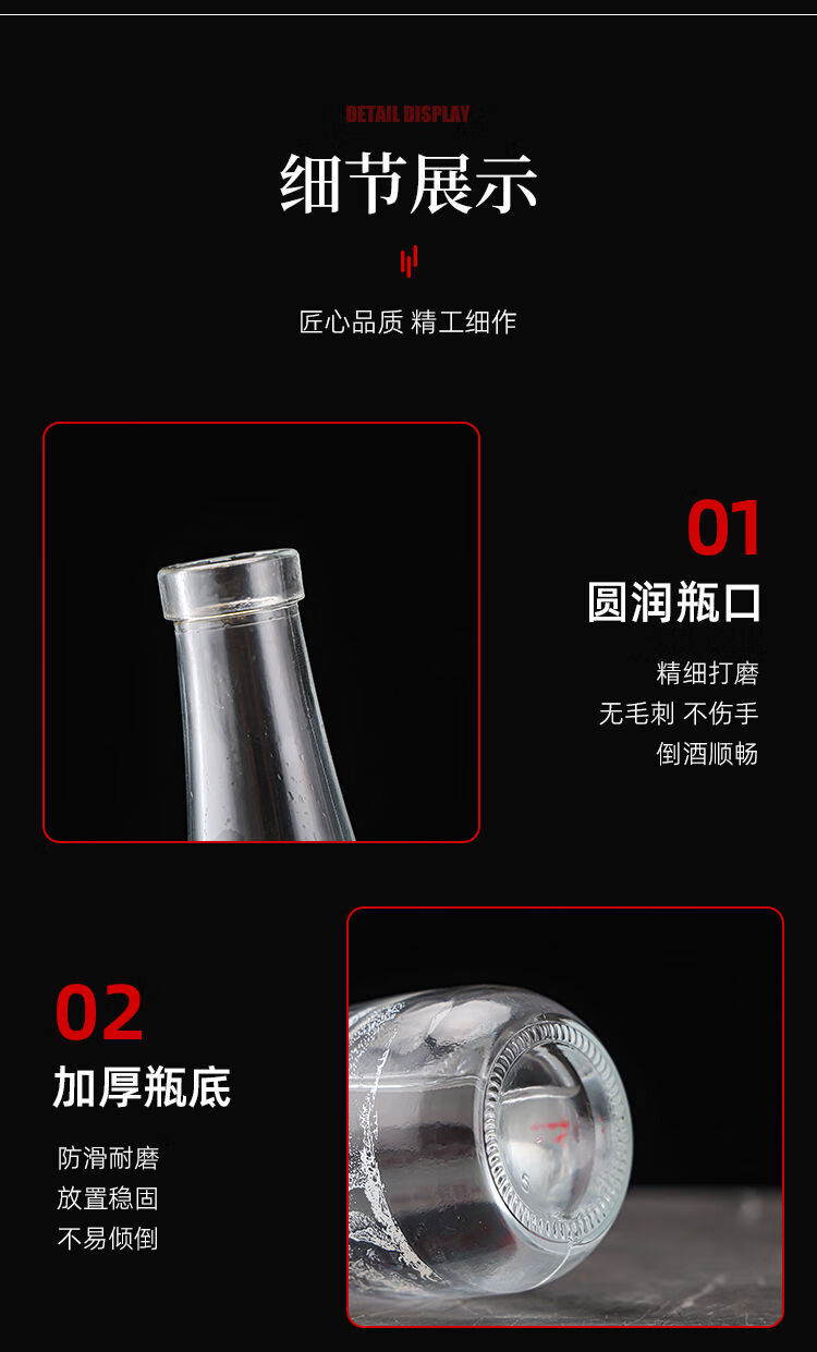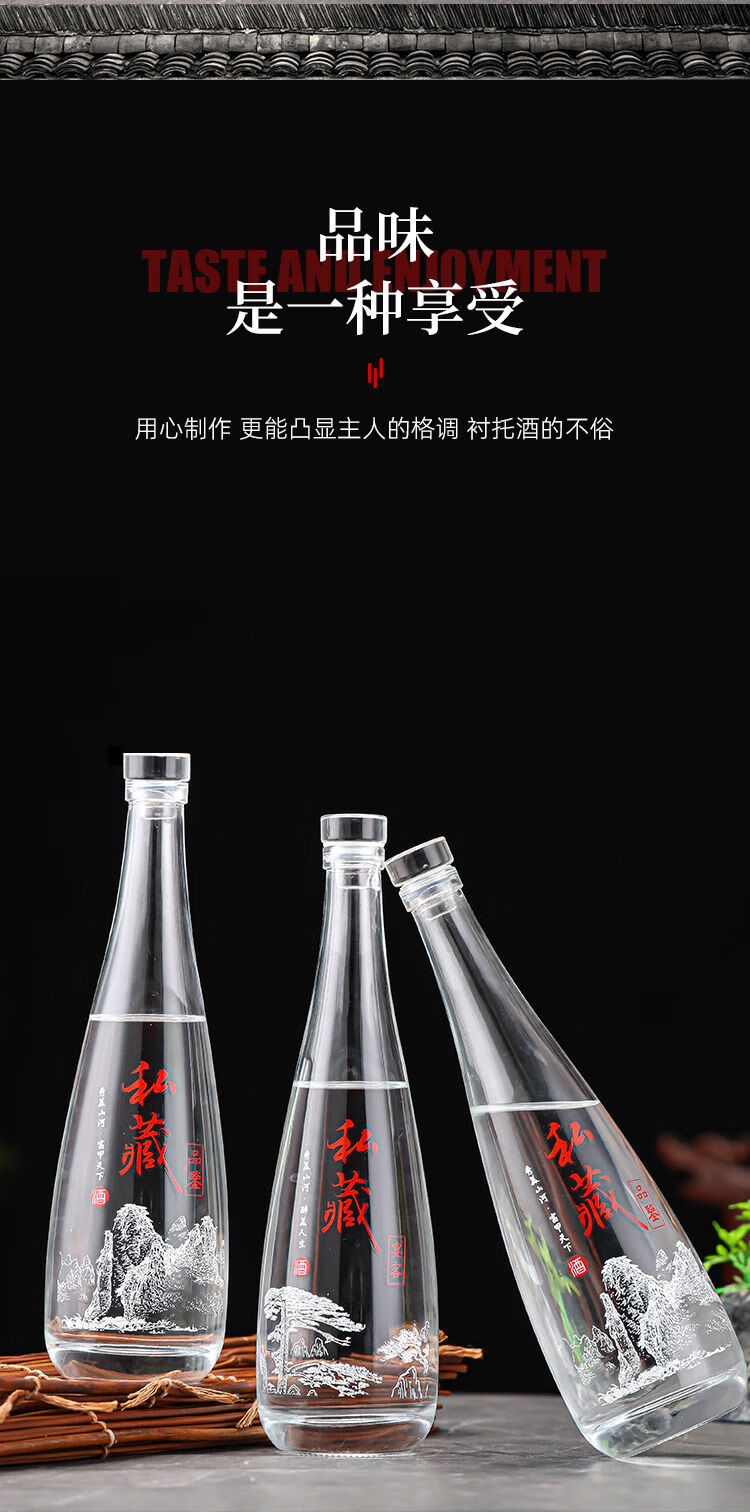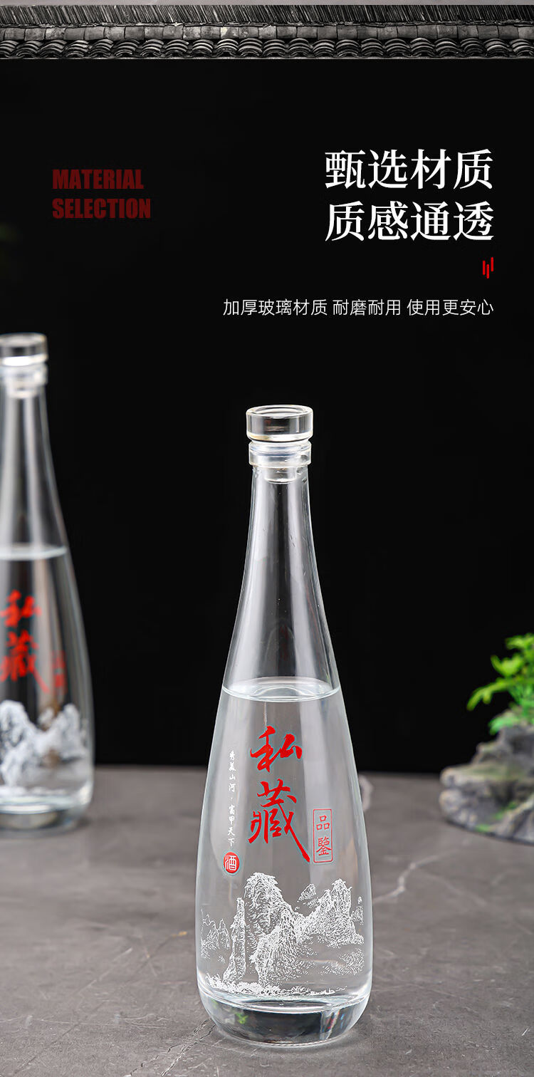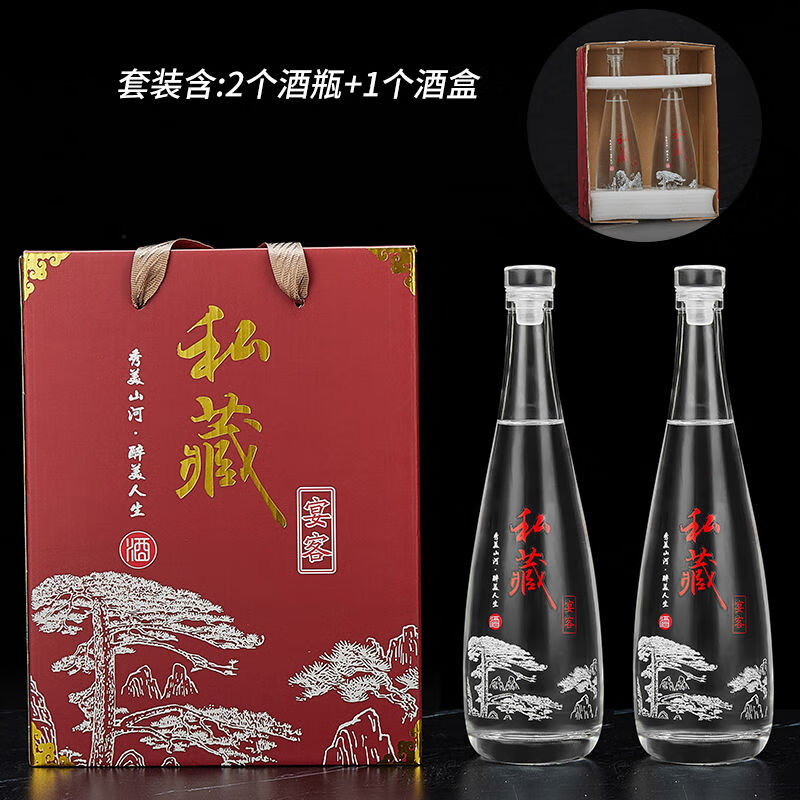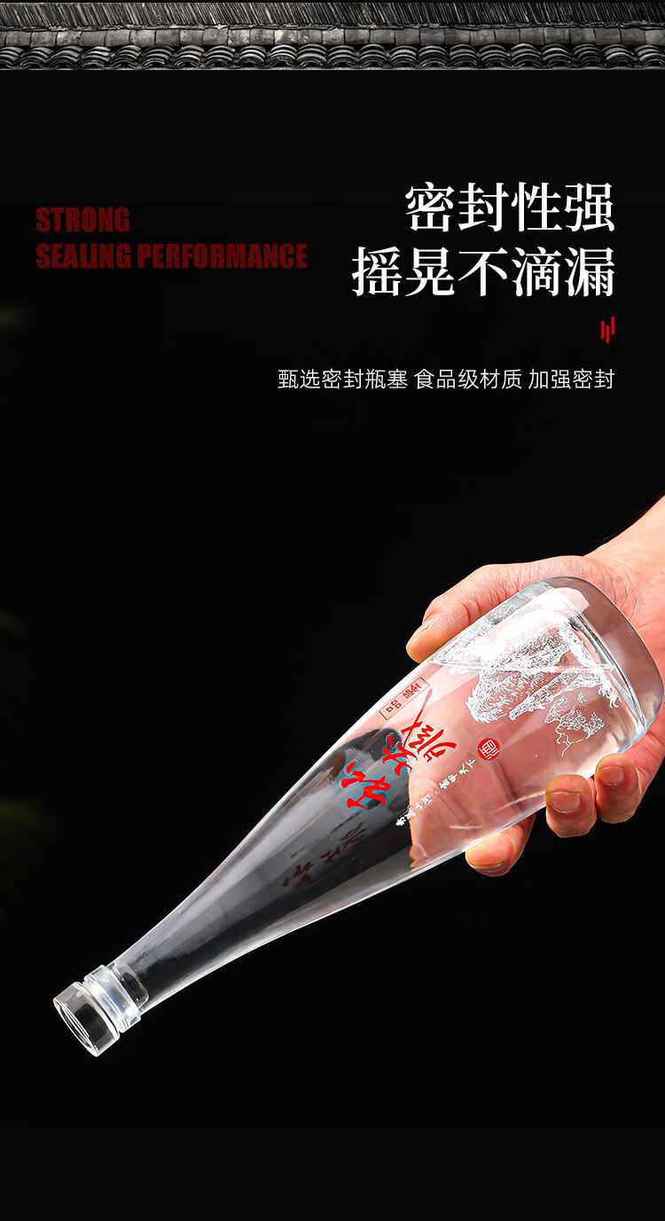 接运猫一斤装白酒瓶透明自酿果酒瓶专家用级密封分装玻璃泡酒空瓶子 无字光瓶送热缩膜+漏斗
