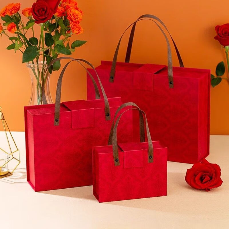 批发 手提空盒礼盒感伴手礼礼盒可定制logo 红色印花礼盒丨【空盒】 小号【18*13*6.5】可装口红香水